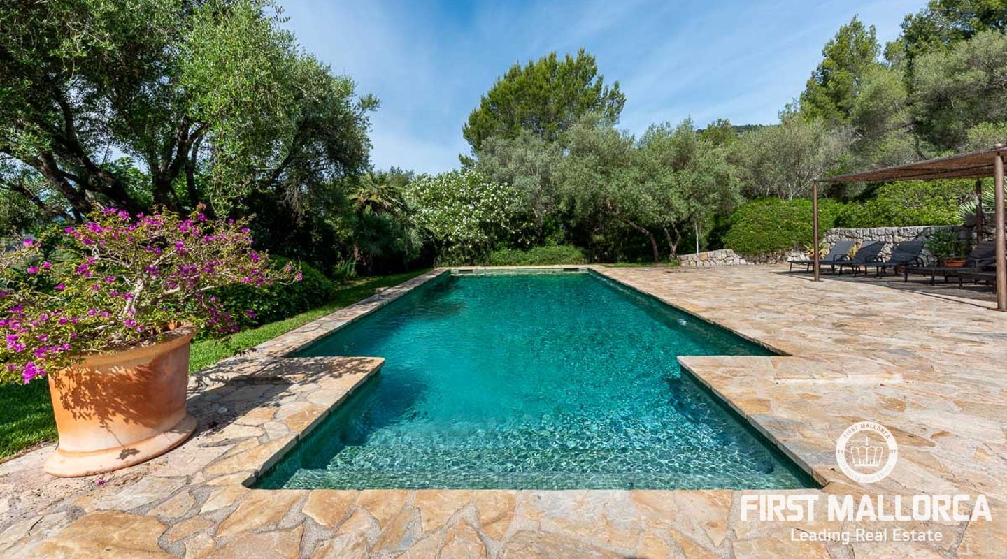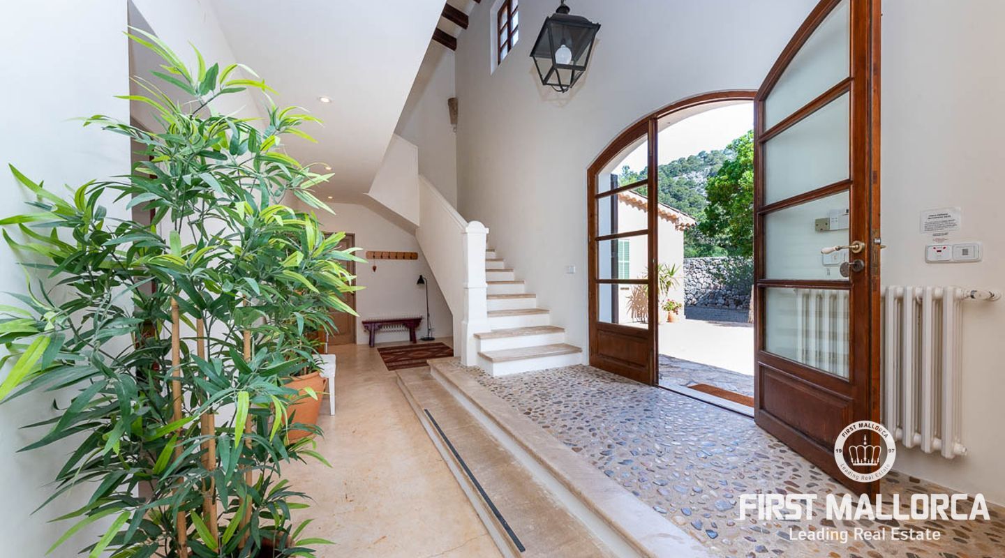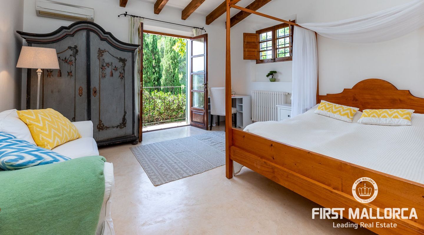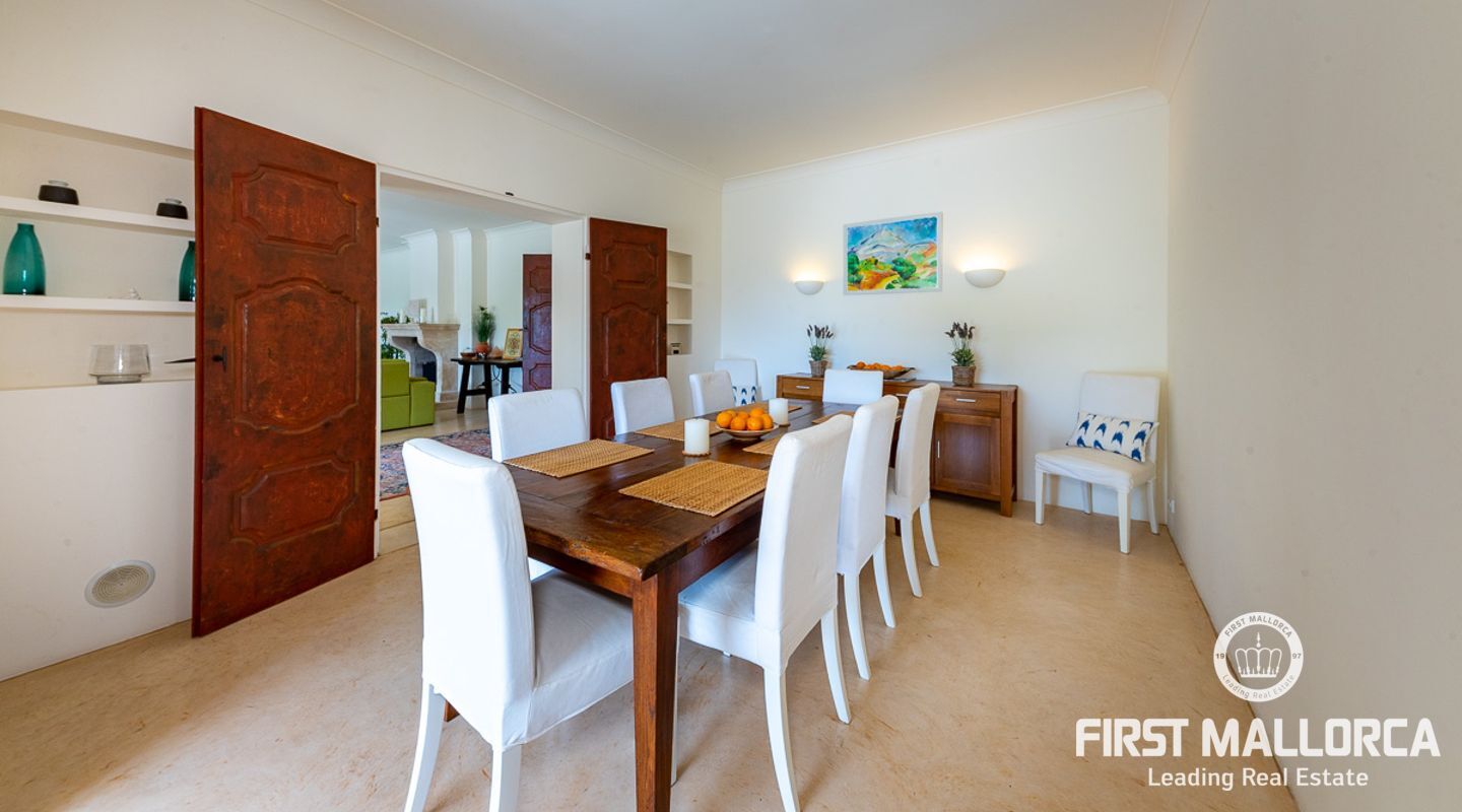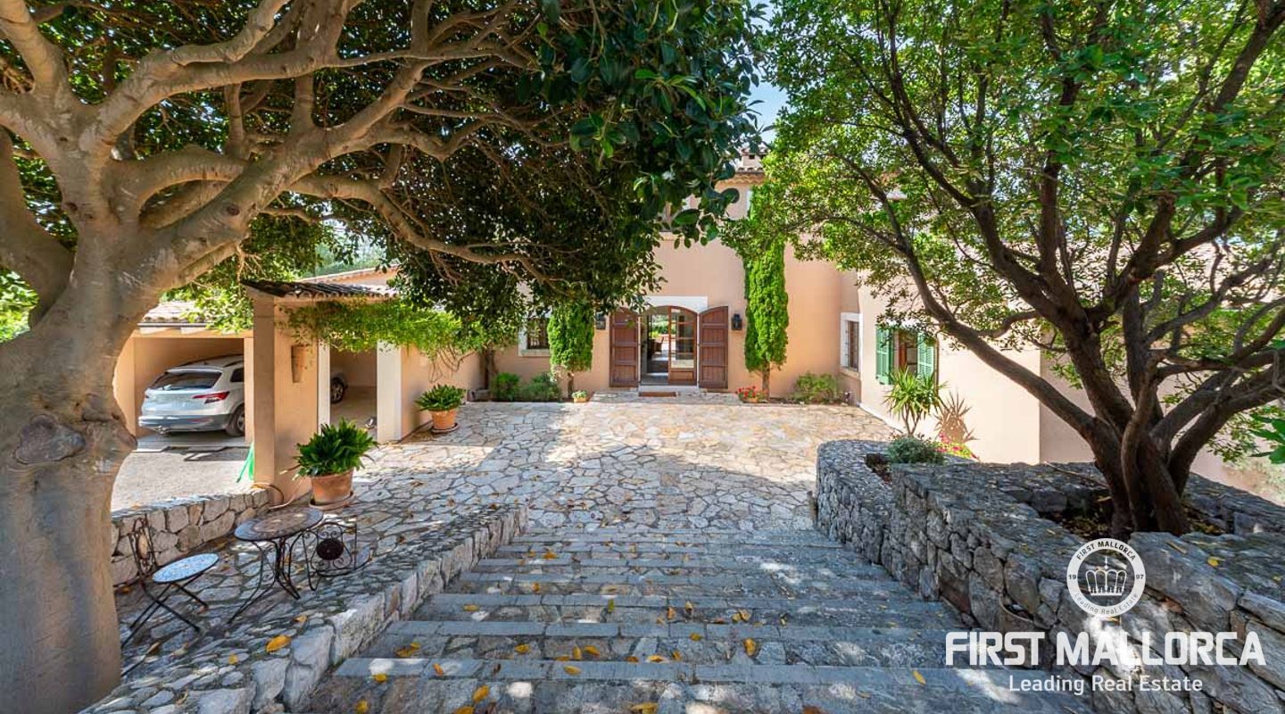 Magnificent luxury finca in one of the most sought after areas of Pollensa, built in 2003, with 53.600m2 and 540m2 built approximately. The main house has 1 bedroom on the ground floor, living room with fireplace, separate dining room, large kitchen with pantry and utility room, all overlooking the garden, access to the garage where you can park 2 large cars. On the same ground floor we have a guest flat with fitted kitchen, living room, 2 bedrooms and 2 bathrooms (both en suite) with wardrobes and access to a terrace and the garden. On the first floor we have 3 double bedrooms with wardrobes and 2 bathrooms (master bedroom with large bathroom en suite), the master bedroom has a large terrace with panoramic views. The property has a large swimming pool of 11x5, 2 wells of vein (the main one at 200 metres deep), cistern, solar water heating system, heating in all the house with gasoil (two tanks of 1000 litres each one), air conditioning hot/cold, wooden beams, wooden windows and shutters, barbecue area, covered dining room in the garden, south facing. Do not hesitate to contact our FIRST MALLORCA team for further information and an appointment to view the property.