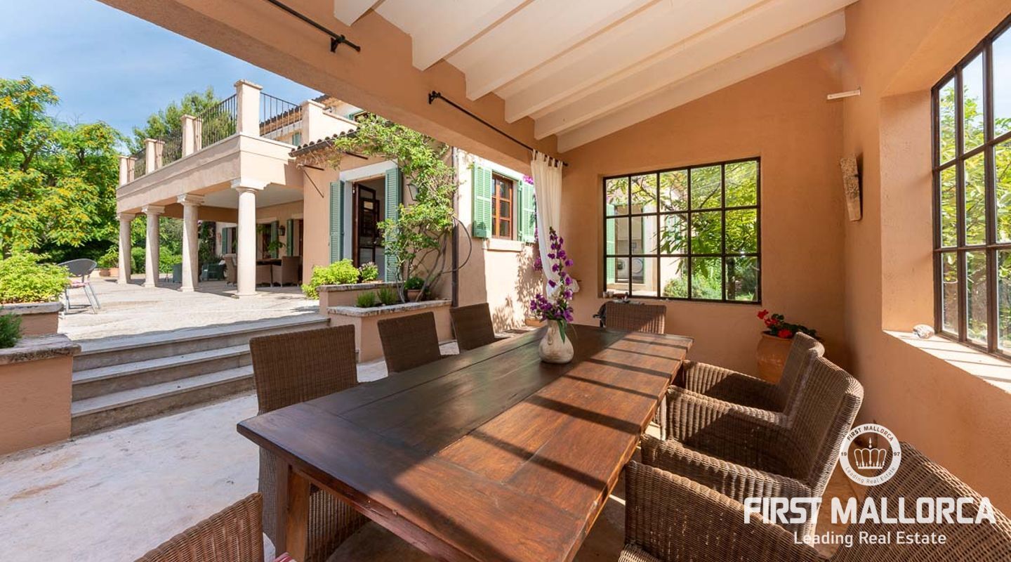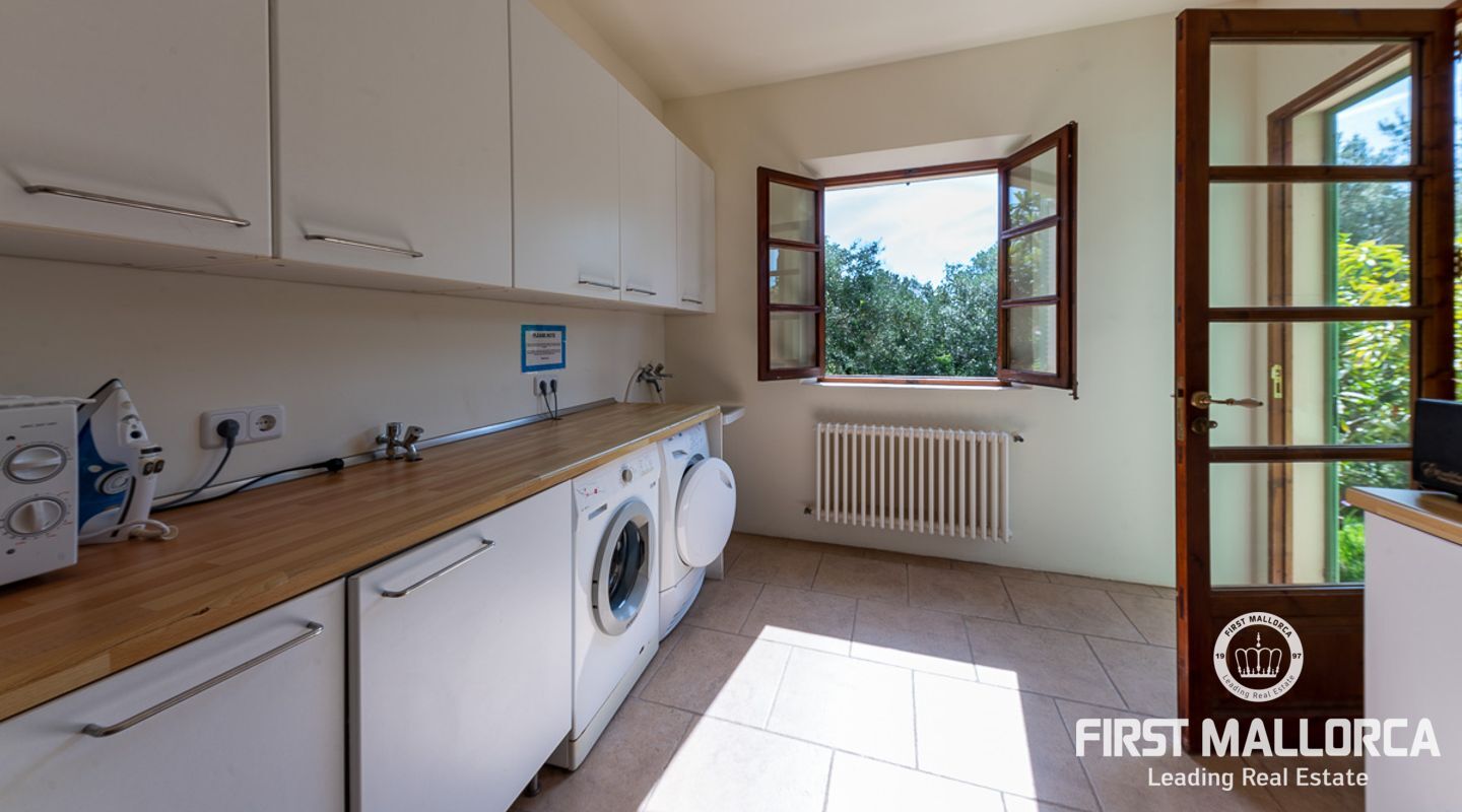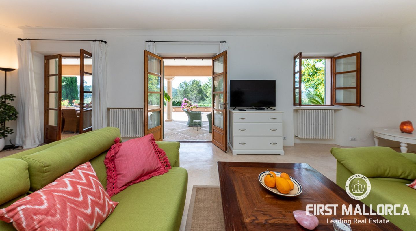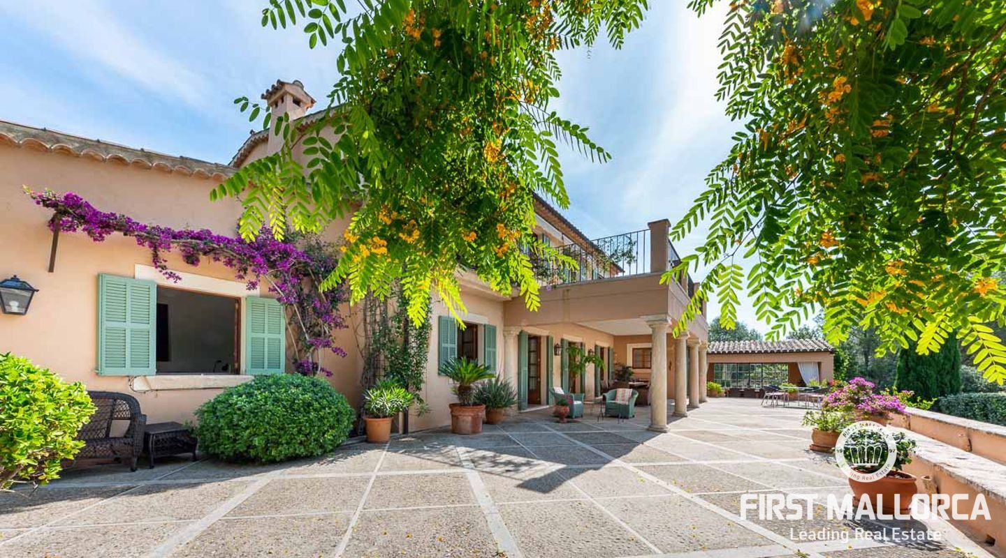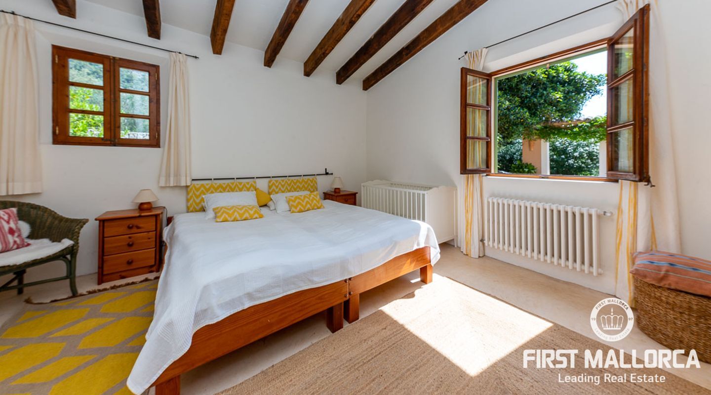 Magnificent luxury finca in one of the most sought after areas of Pollensa, built in 2003, with 53.600m2 and 540m2 built approximately. The main house has 1 bedroom on the ground floor, living room with fireplace, separate dining room, large kitchen with pantry and utility room, all overlooking the garden, access to the garage where you can park 2 large cars. On the same ground floor we have a guest flat with fitted kitchen, living room, 2 bedrooms and 2 bathrooms (both en suite) with wardrobes and access to a terrace and the garden. On the first floor we have 3 double bedrooms with wardrobes and 2 bathrooms (master bedroom with large bathroom en suite), the master bedroom has a large terrace with panoramic views. The property has a large swimming pool of 11x5, 2 wells of vein (the main one at 200 metres deep), cistern, solar water heating system, heating in all the house with gasoil (two tanks of 1000 litres each one), air conditioning hot/cold, wooden beams, wooden windows and shutters, barbecue area, covered dining room in the garden, south facing. Do not hesitate to contact our FIRST MALLORCA team for further information and an appointment to view the property.