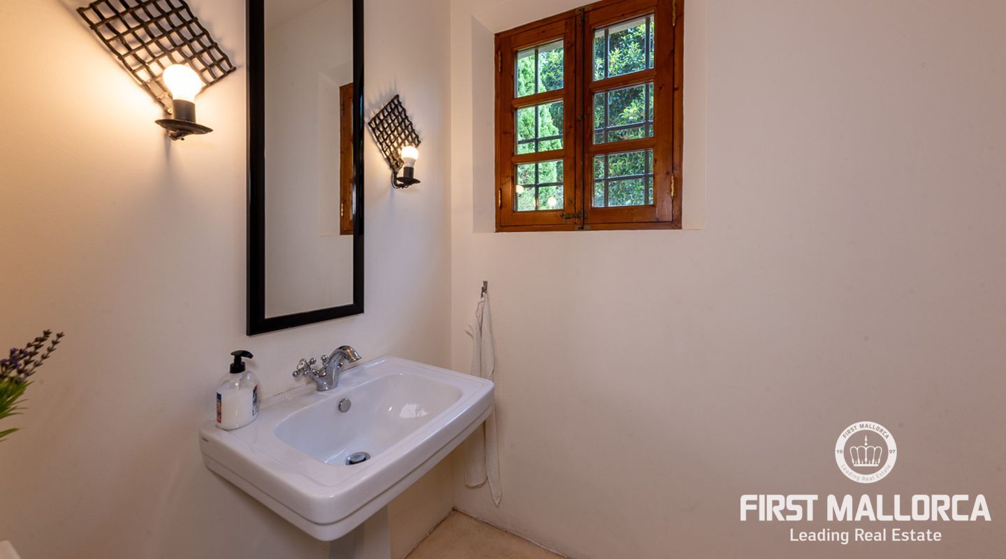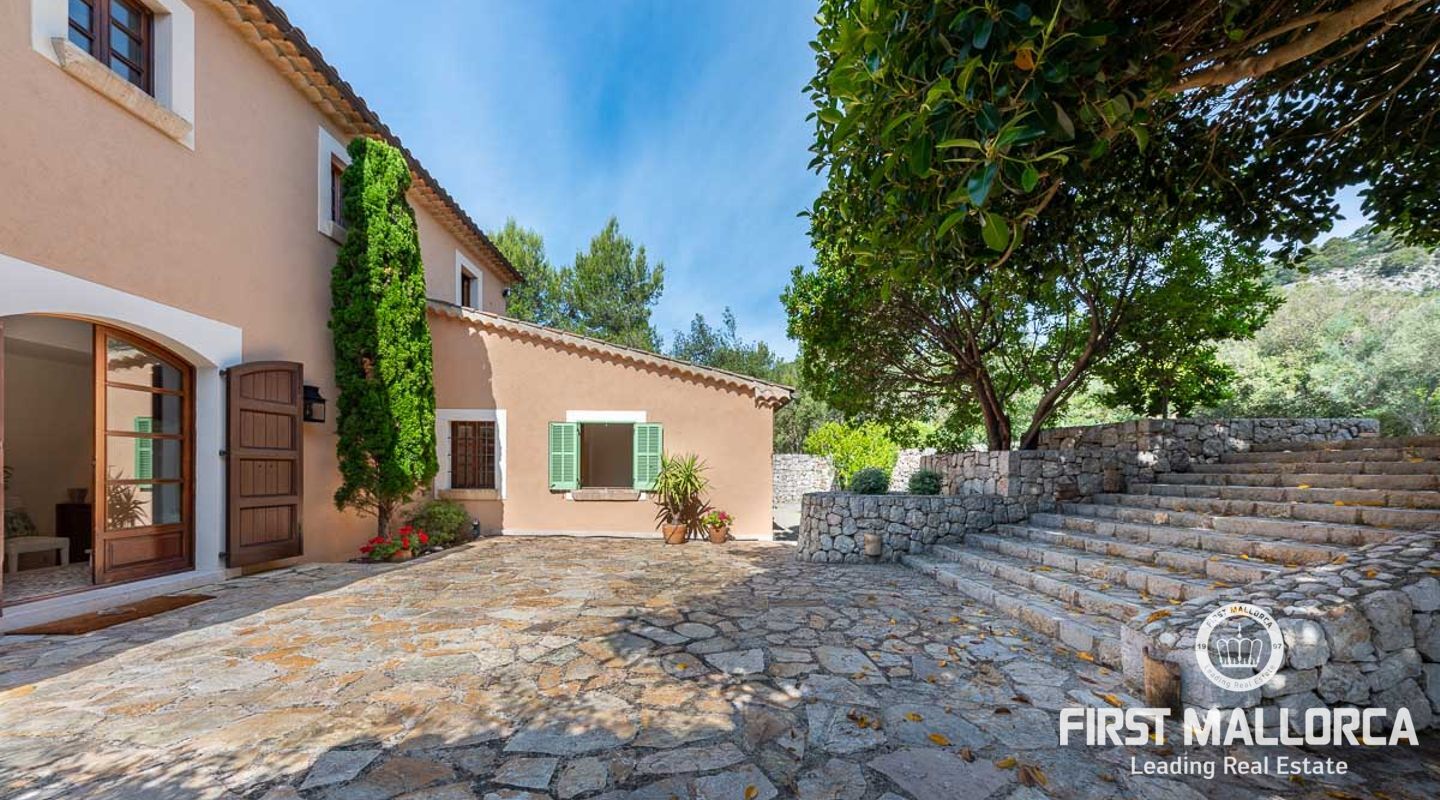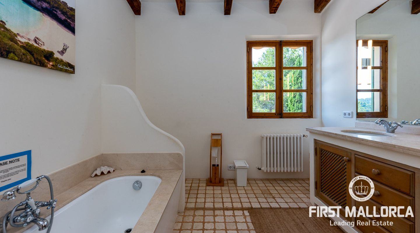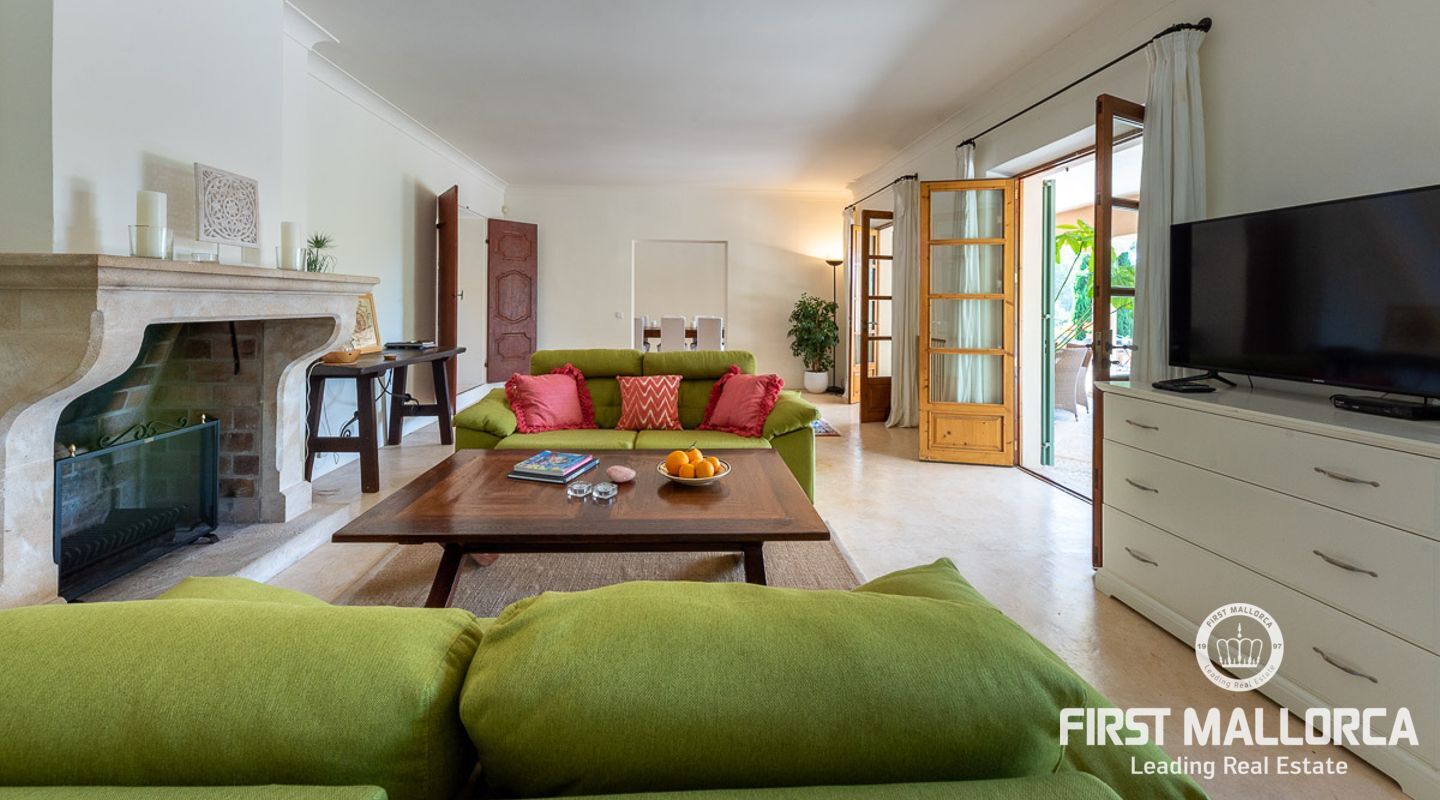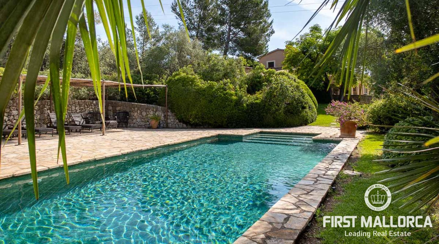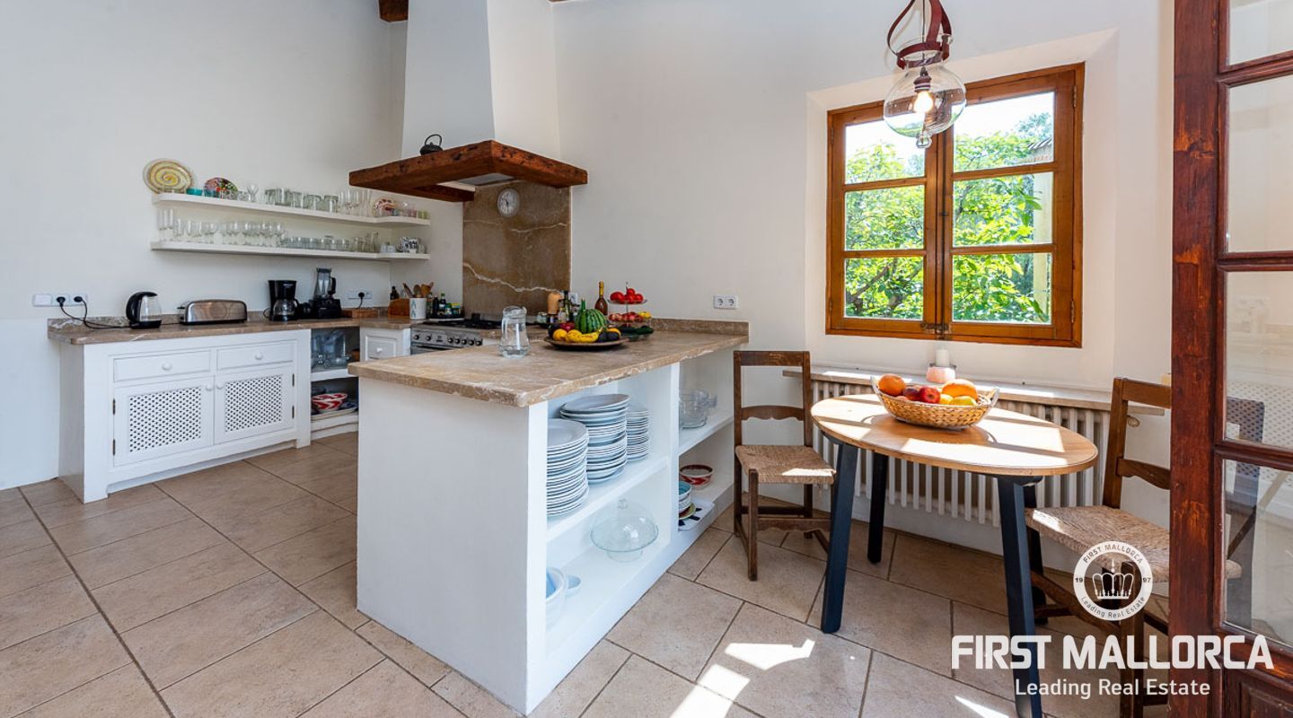 Magnificent luxury finca in one of the most sought after areas of Pollensa, built in 2003, with 53.600m2 and 540m2 built approximately. The main house has 1 bedroom on the ground floor, living room with fireplace, separate dining room, large kitchen with pantry and utility room, all overlooking the garden, access to the garage where you can park 2 large cars. On the same ground floor we have a guest flat with fitted kitchen, living room, 2 bedrooms and 2 bathrooms (both en suite) with wardrobes and access to a terrace and the garden. On the first floor we have 3 double bedrooms with wardrobes and 2 bathrooms (master bedroom with large bathroom en suite), the master bedroom has a large terrace with panoramic views. The property has a large swimming pool of 11x5, 2 wells of vein (the main one at 200 metres deep), cistern, solar water heating system, heating in all the house with gasoil (two tanks of 1000 litres each one), air conditioning hot/cold, wooden beams, wooden windows and shutters, barbecue area, covered dining room in the garden, south facing. Do not hesitate to contact our FIRST MALLORCA team for further information and an appointment to view the property.