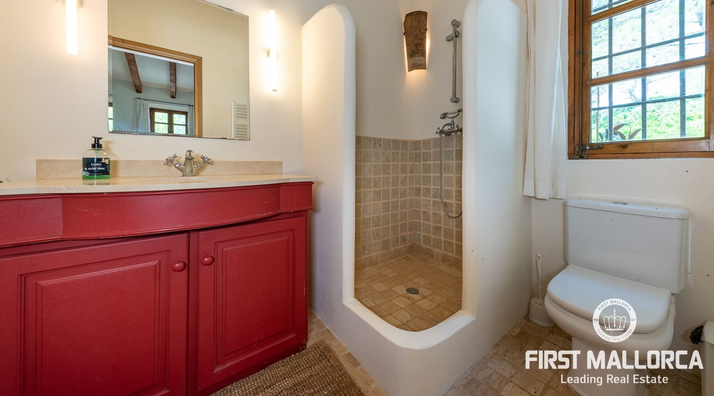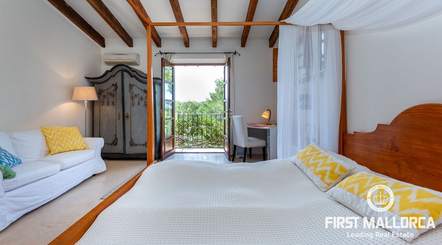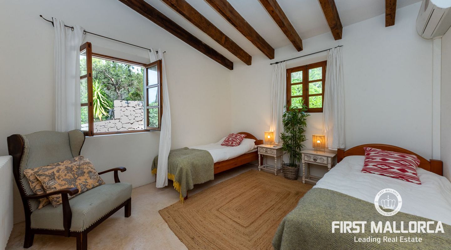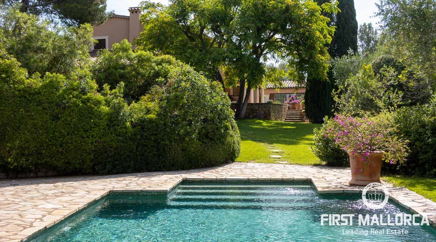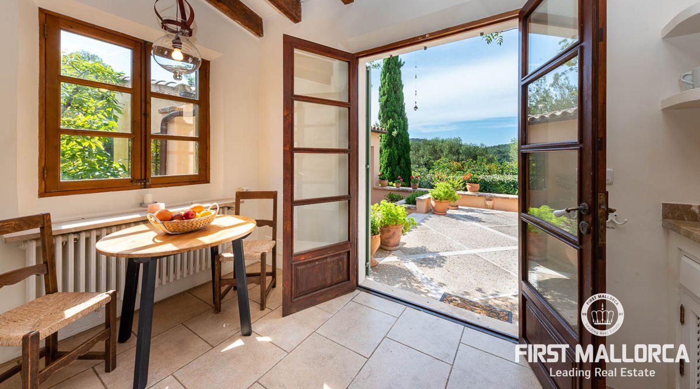 Magnificent luxury finca in one of the most sought after areas of Pollensa, built in 2003, with 53.600m2 and 540m2 built approximately. The main house has 1 bedroom on the ground floor, living room with fireplace, separate dining room, large kitchen with pantry and utility room, all overlooking the garden, access to the garage where you can park 2 large cars. On the same ground floor we have a guest flat with fitted kitchen, living room, 2 bedrooms and 2 bathrooms (both en suite) with wardrobes and access to a terrace and the garden. On the first floor we have 3 double bedrooms with wardrobes and 2 bathrooms (master bedroom with large bathroom en suite), the master bedroom has a large terrace with panoramic views. The property has a large swimming pool of 11x5, 2 wells of vein (the main one at 200 metres deep), cistern, solar water heating system, heating in all the house with gasoil (two tanks of 1000 litres each one), air conditioning hot/cold, wooden beams, wooden windows and shutters, barbecue area, covered dining room in the garden, south facing. Do not hesitate to contact our FIRST MALLORCA team for further information and an appointment to view the property.