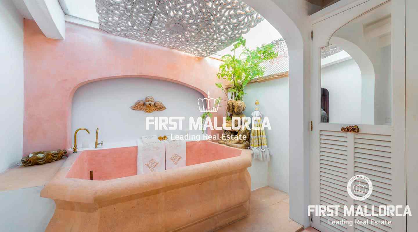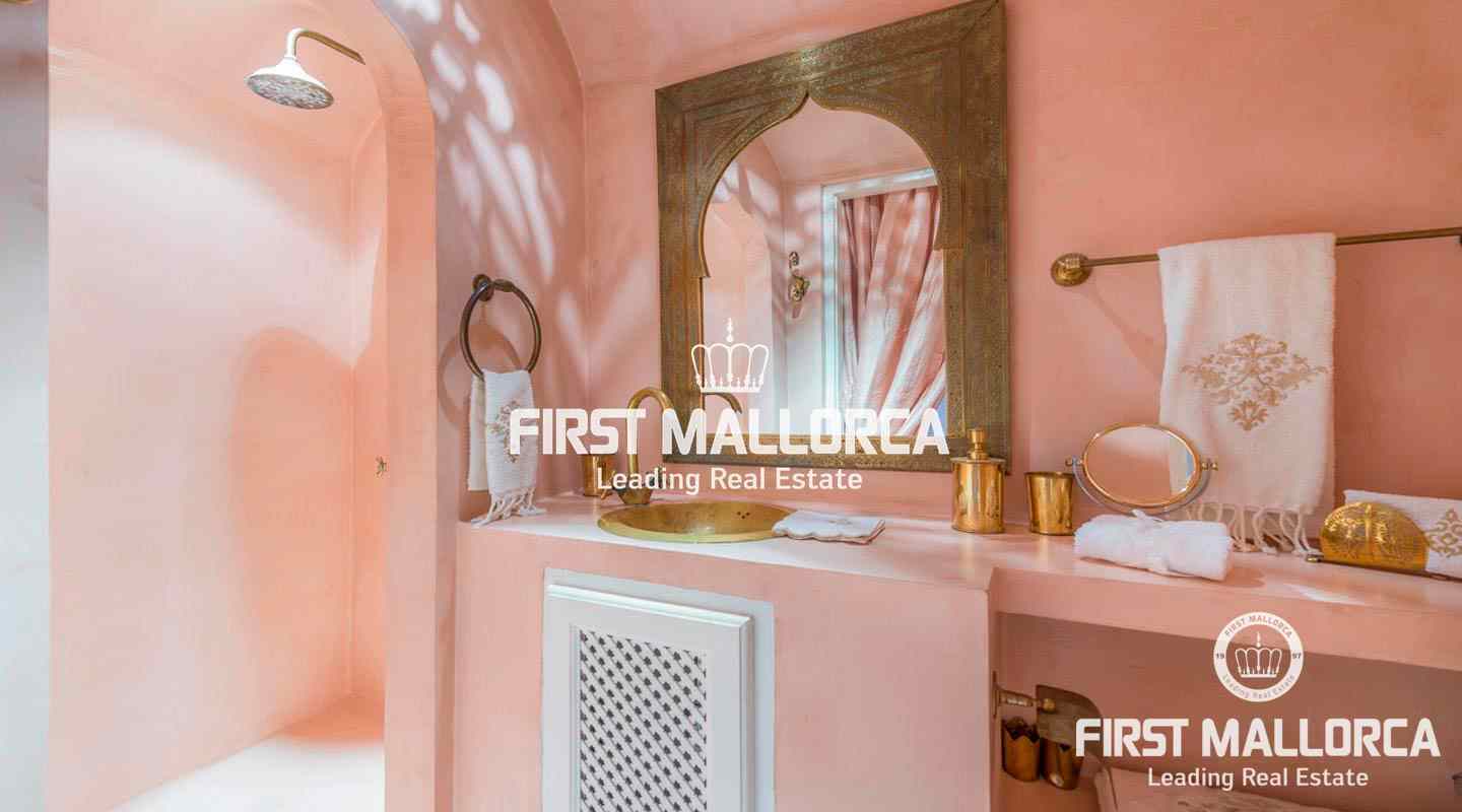 The penthouse is distributed over 3 levels and has been designed combining an extraordinary and special Moroccan style with traditional Majorcan elements. In the entrance level we have a welcoming lobby leading into the special living room with a fireplace and a terrace, kitchen and dining area and one bedroom with an en suite bathroom. The first level has a bedroom suite with a large Jacuzzi and the third level has a second living room and a large en suite bedroom with a private sunny terrace.