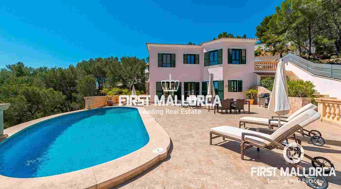 Spacious and private family home for sale in Camp de Mar. Very well kept with high ceilings and light flooding. The villa, which is located in a green zone near Cala Blanca, enjoys views over the surrounding area and is only 5 minutes drive from Port Andratx