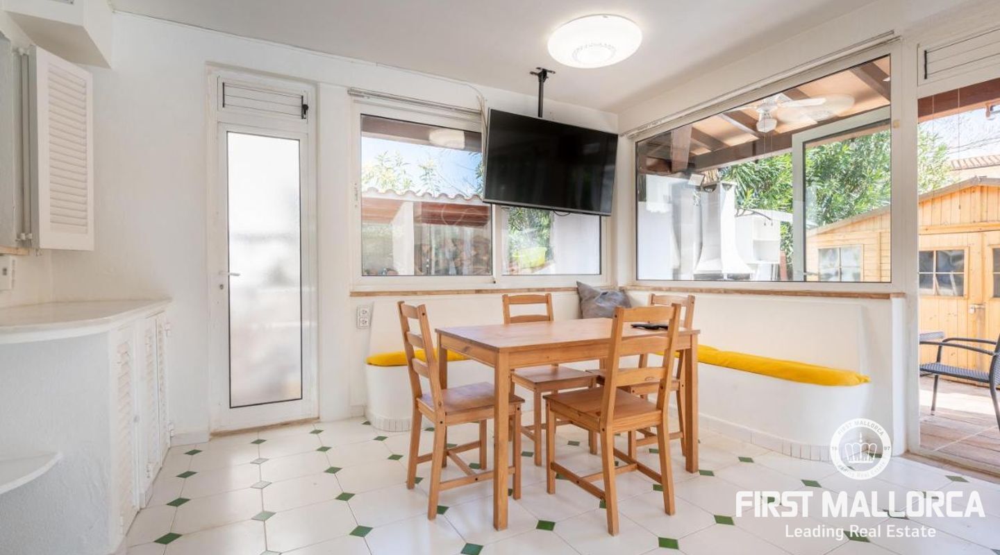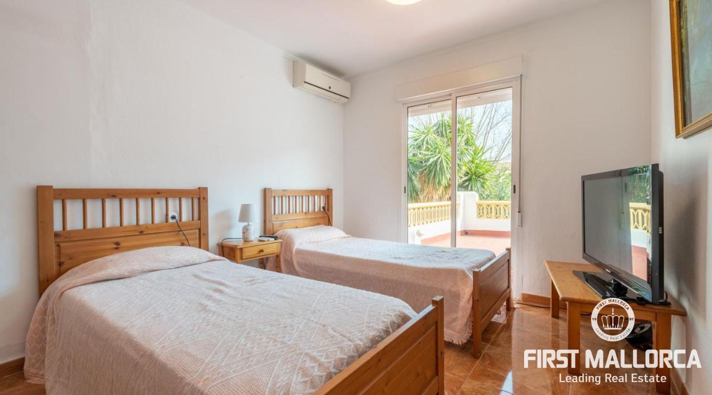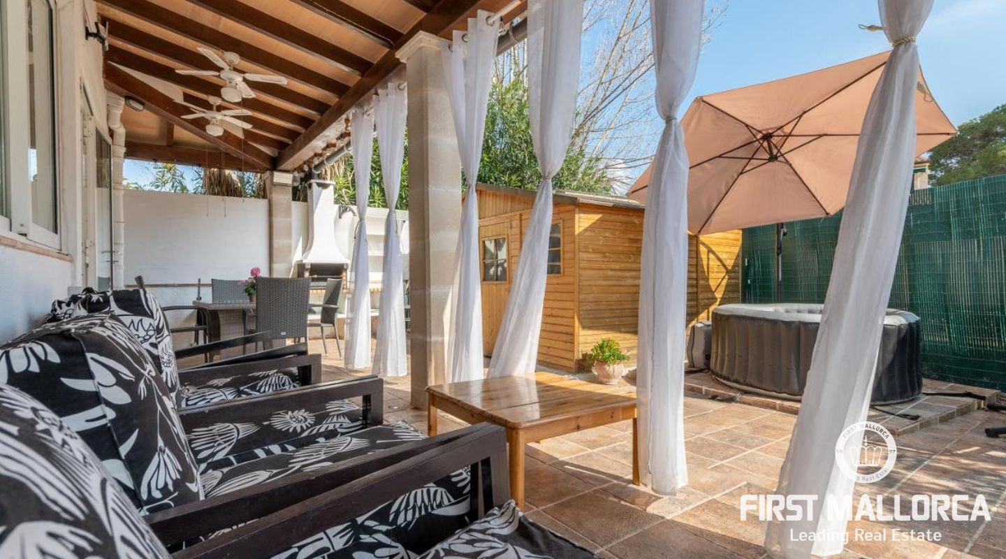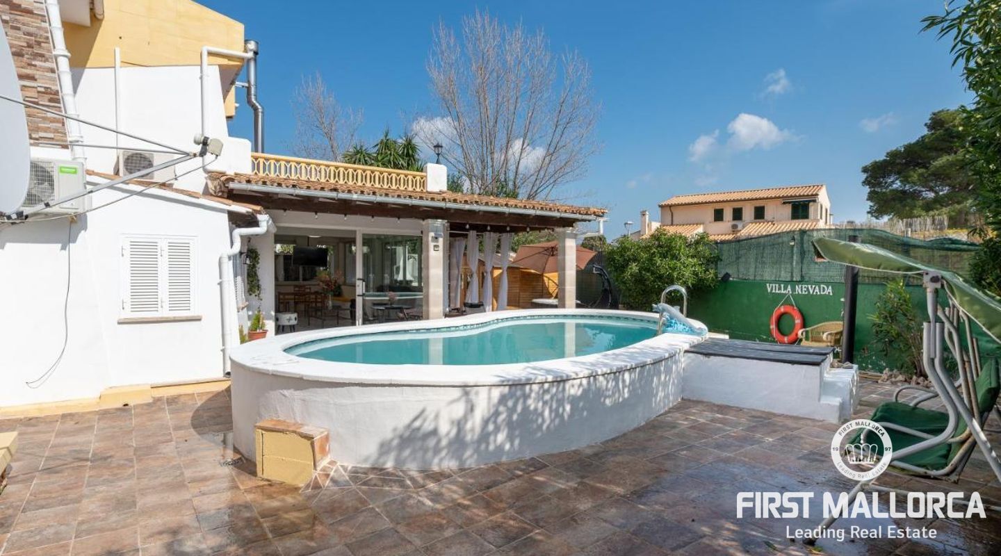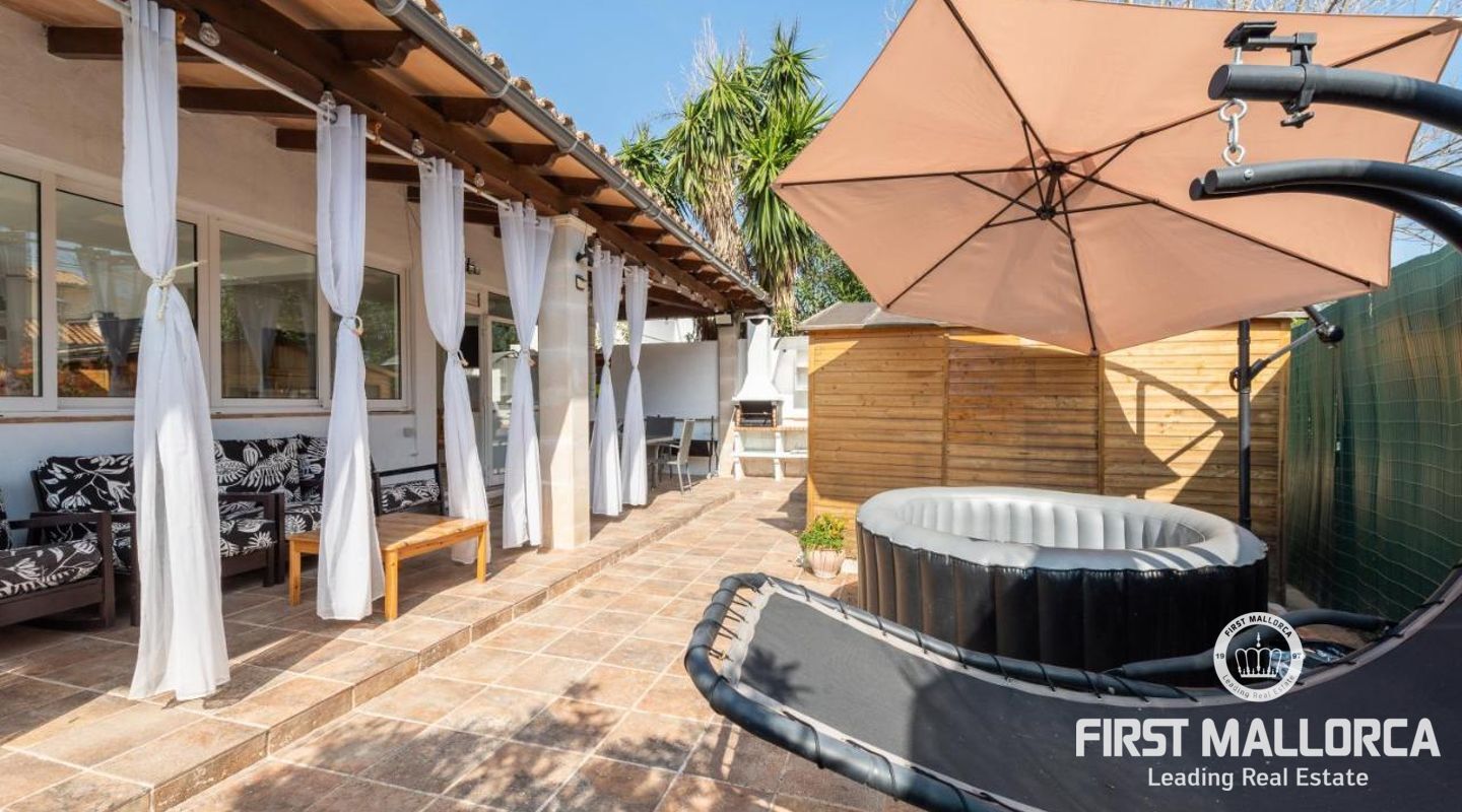 Diese Villa mit Ferienvermietungslizenz in Puerto Pollensa verfügt über 3 Doppelschlafzimmern und vier Bädern, Wohn-/Esszimmer, Kamin, Unterhaltungsraum (könnte in ein Schlafzimmer umgewandelt werden), voll ausgestattete Küche, Garage und Terrassen im ersten Stock mit herrlichem Bergblick. Das Haus verfügt über Klimaanlage warm/kalt, doppelt verglaste Fenster, Außen-Whirlpool, Werkzeugschuppen oder Abstellraum und einen Grill. Es erzielt sehr gute Rentabilität als Ferienvermietungsobjekt. Der Höhepunkt dieser Villa ist der Garten mit seiner überdachten Veranda und Pool. Die Villa befindet sich in der Nähe des Meeres in einer sehr ruhigen Lage und in der Nähe von allen Dienstleistungen. Zögern Sie nicht, unser FIRST MALLORCA Team für weitere Informationen und einen Termin zur Besichtigung der Immobilie zu kontaktieren.