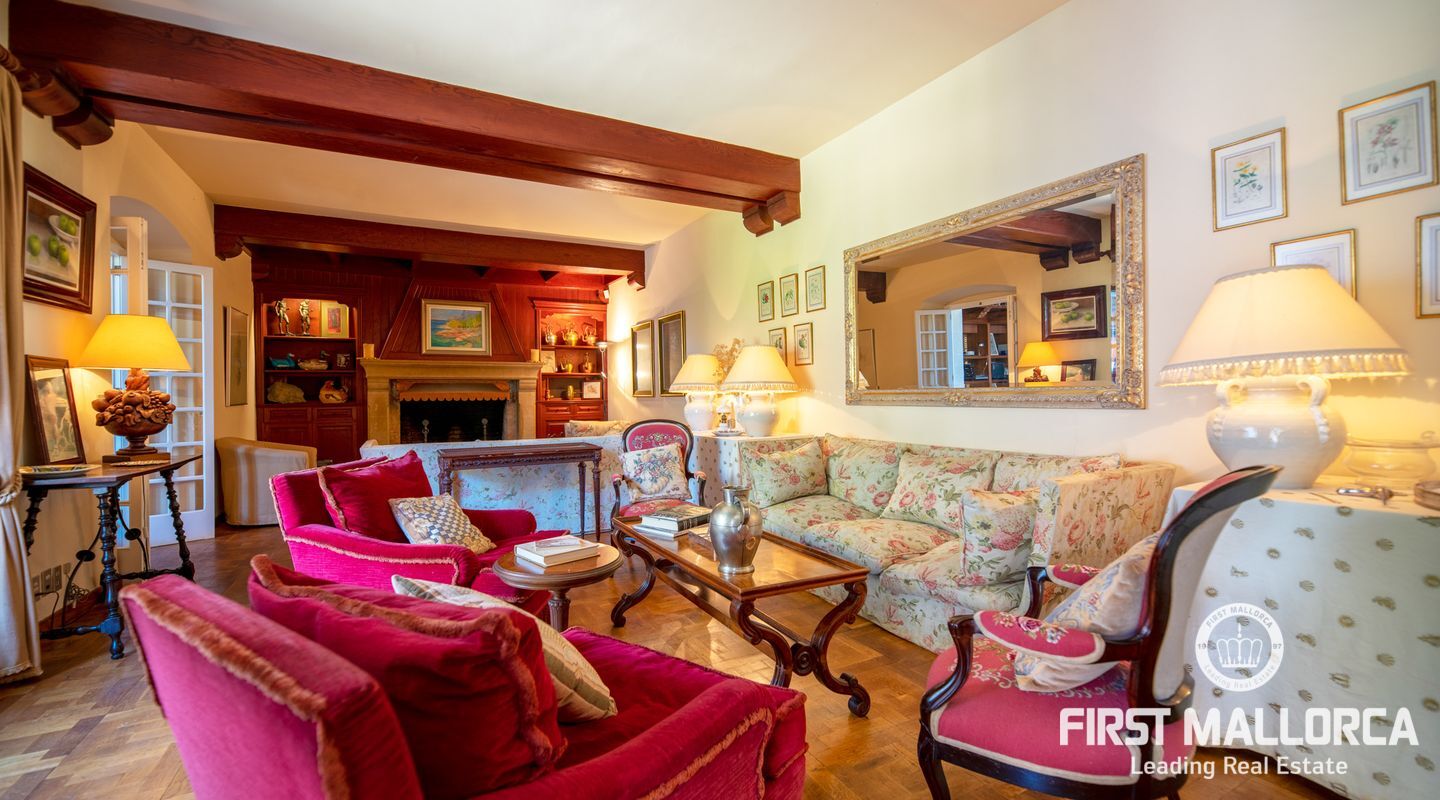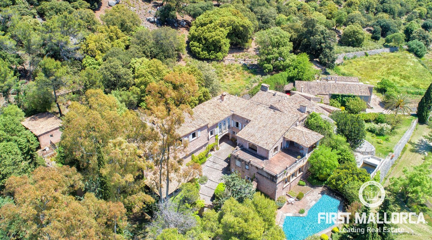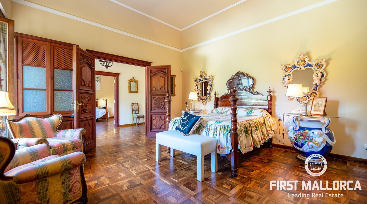 Die historische Finca hat eine bebaute Fläche von insgesamt 1.522 m² und besteht aus einem Haupthaus, 2 Gästehäusern und weiteren Nebengebäuden wie einem Gewächshaus und Garagen. Das Haupthaus verfügt über 5 Schlafzimmer, alle mit Badezimmer en Suite, ein Esszimmer, einen übergroßen Salon, ein großzügiges Wohnzimmer und eine beeindruckende Bibliothek. Weitere 7 Schlafzimmer und 5 Badezimmer verteilen sich auf die anderen Gebäude der Immobilie. Darüber hinaus gibt es verschiedene Terrassen, einen etwa 80 m² großen Pool, einen Tennisplatz und einen Weinkeller.