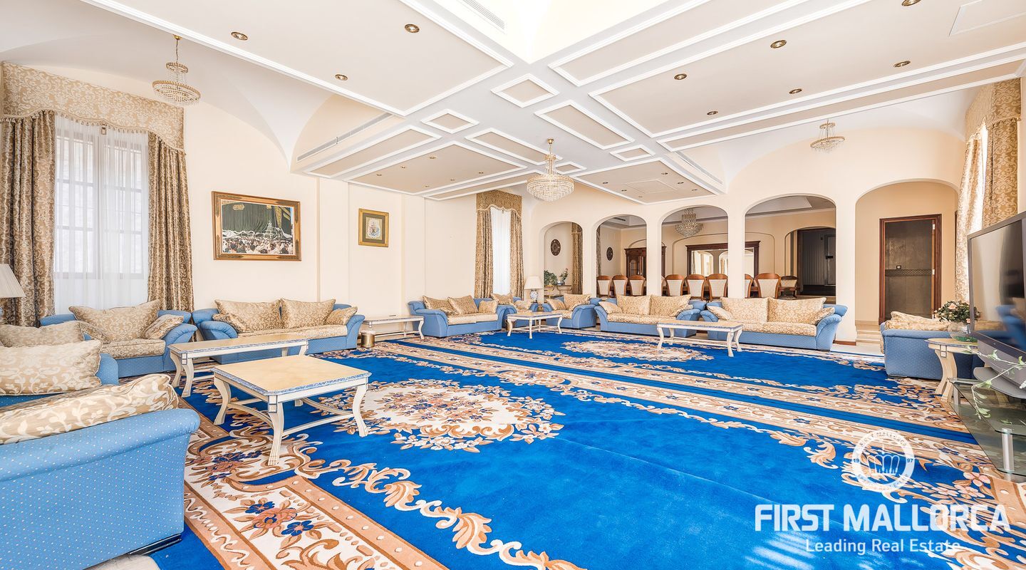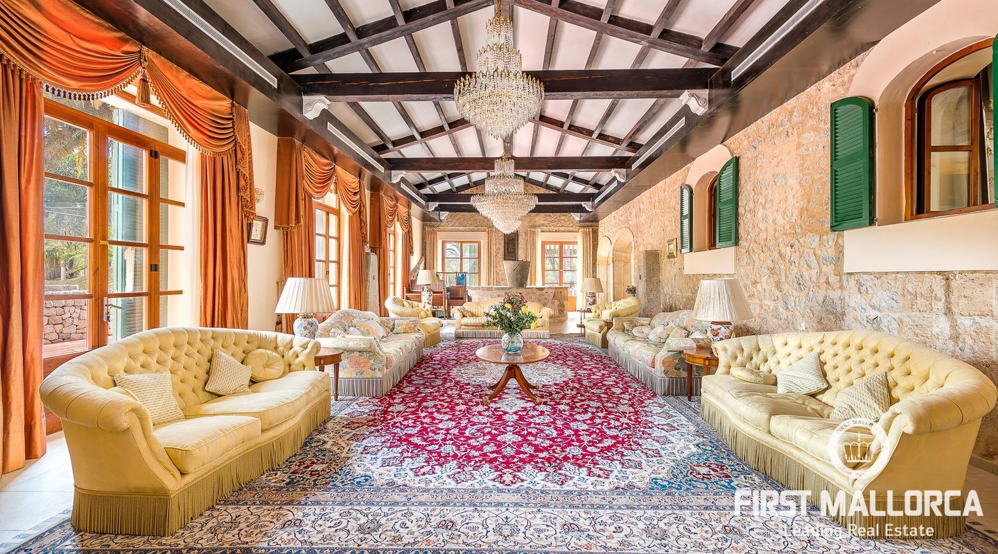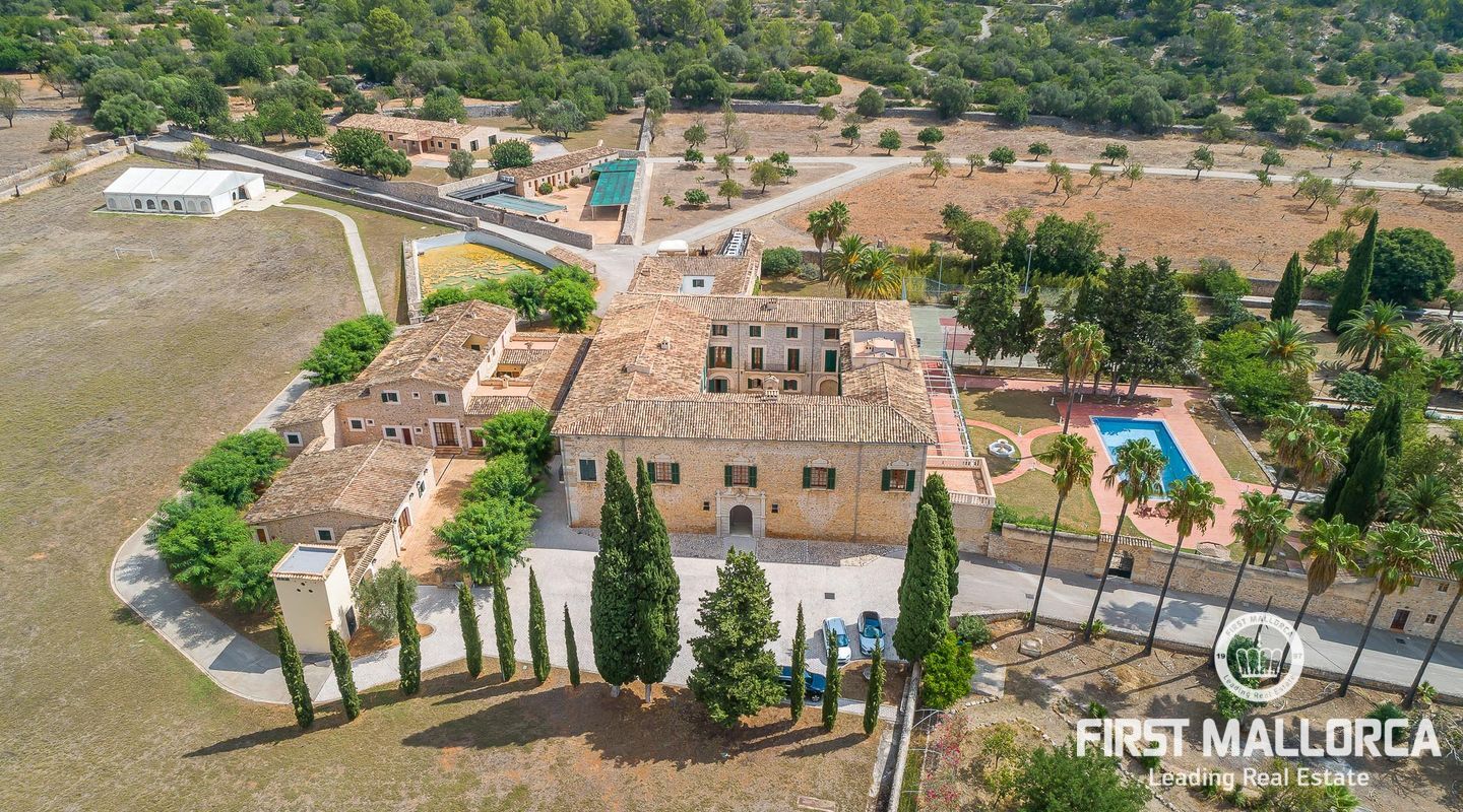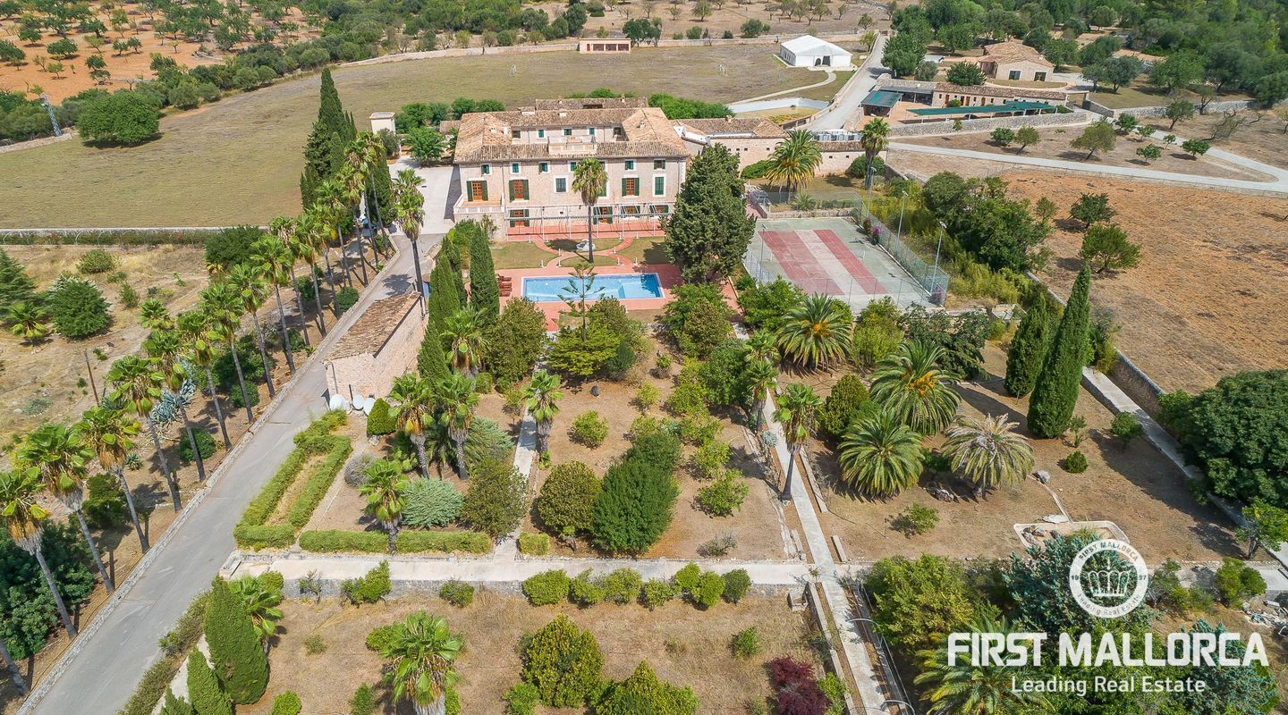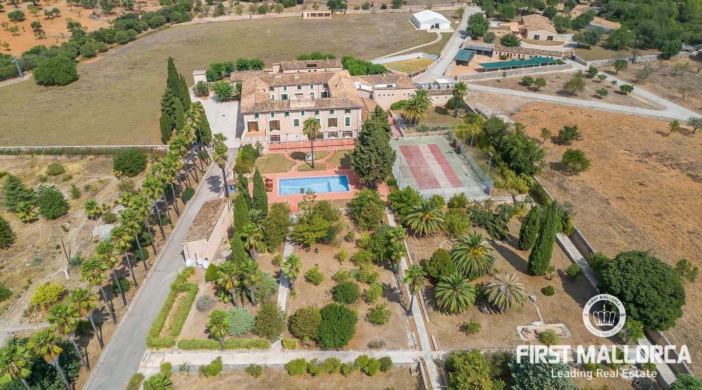 Die bebaute Fläche mit Haupthaus und Nebengebäuden beträgt insgesamt 4.300 m². Zudem gibt es auf 400 m² mehrere Terrassen und einen typisch mallorquinischen Innenhof. Die Finca verfügt über 84 Schlafzimmer, 70 davon mit Badezimmern und 10 davon mit Dusche und Jacuzzi. Weitere Ausstattungsmerkmale dieser Immobilie sind 12 x 6 m großer Pool, Fitnessraum, beleuchteter Tennisplatz, Fußballplatz, professionelle Küche, Außenküche, zwei Aufzüge und ein Lastenaufzug, ein Atelier, ein 24 x 15 m großes Veranstaltungszelt mit Klimaanlage und Ausstattung, Sicherheitshaus und Parkplatz für 20 PKWs. Neben der Finca bietet dieses Objekt einen 36.000 m² großen Park mit Rasenflächen sowie Orangen-, Zitronen-, Mandel-, Oliven- und Johannisbrotbäumen. Ein Teil des Grundstücks ist zur Jagd freigegeben. Das Anwesen liegt nur wenige Minuten vom Golfplatz entfernt. Die Stadt Palma kann in 10 Minuten, der Flughafen in 15 Minuten mit dem Auto erreicht werden.