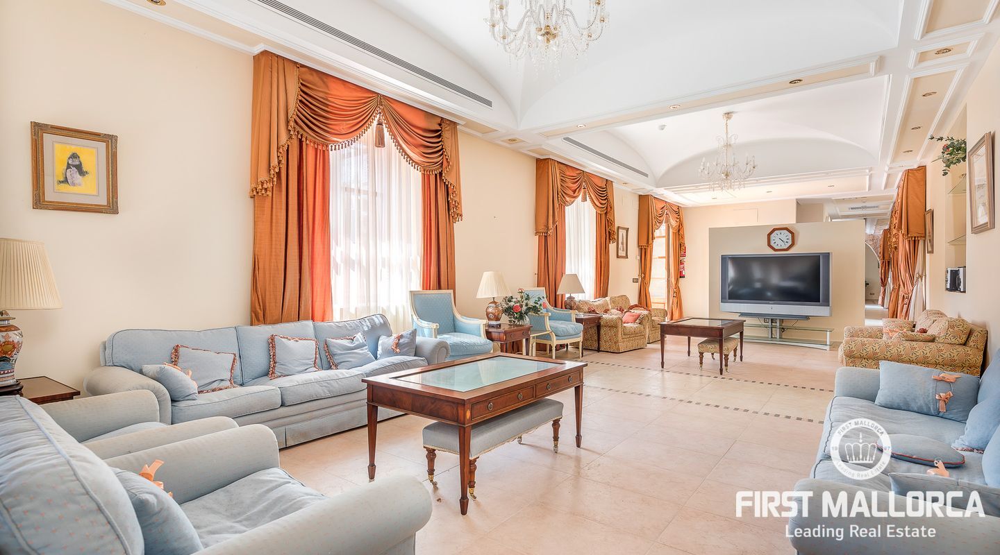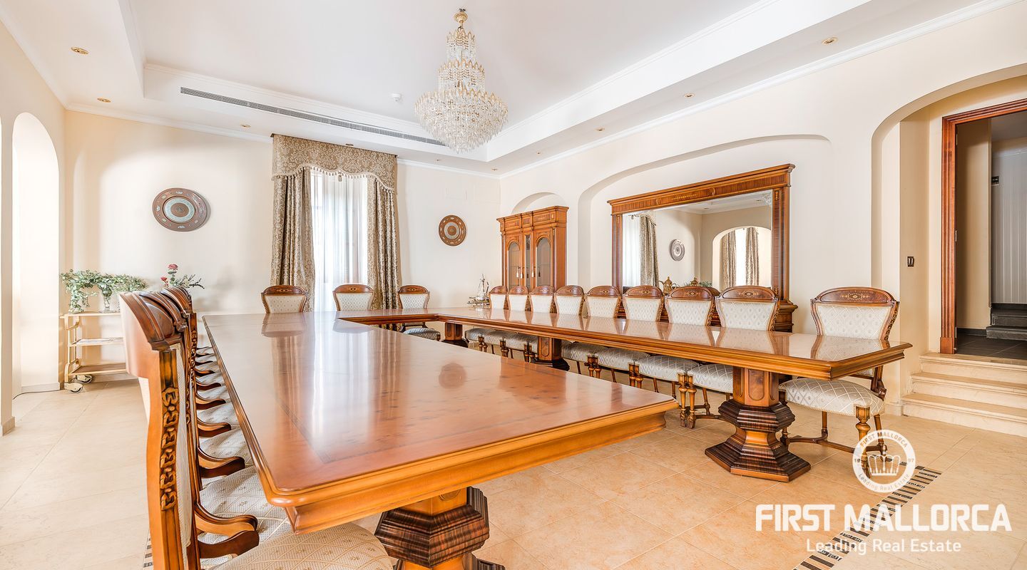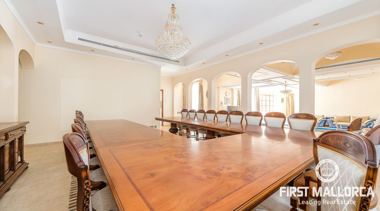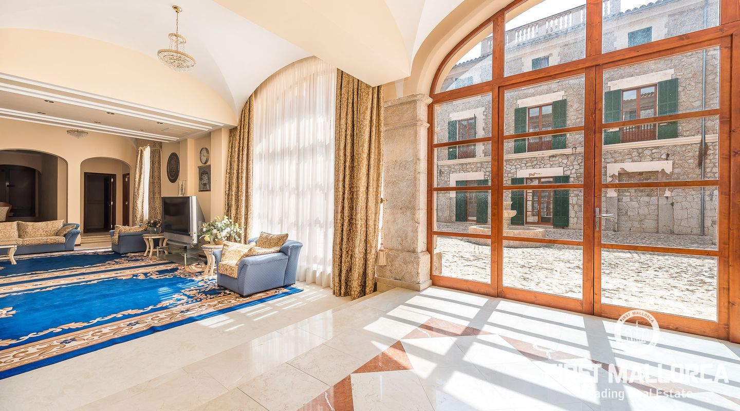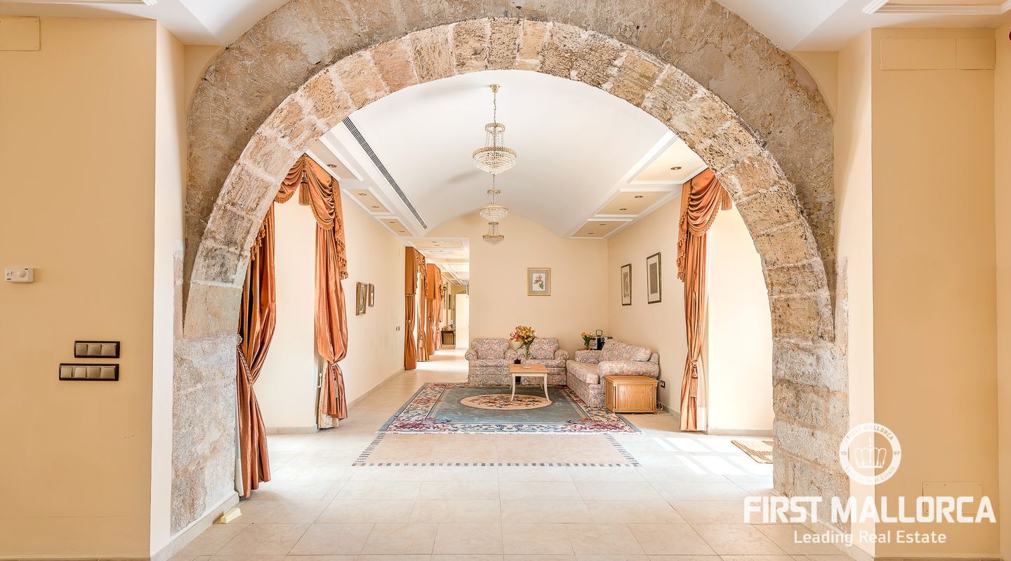 Die bebaute Fläche mit Haupthaus und Nebengebäuden beträgt insgesamt 4.300 m². Zudem gibt es auf 400 m² mehrere Terrassen und einen typisch mallorquinischen Innenhof. Die Finca verfügt über 84 Schlafzimmer, 70 davon mit Badezimmern und 10 davon mit Dusche und Jacuzzi. Weitere Ausstattungsmerkmale dieser Immobilie sind 12 x 6 m großer Pool, Fitnessraum, beleuchteter Tennisplatz, Fußballplatz, professionelle Küche, Außenküche, zwei Aufzüge und ein Lastenaufzug, ein Atelier, ein 24 x 15 m großes Veranstaltungszelt mit Klimaanlage und Ausstattung, Sicherheitshaus und Parkplatz für 20 PKWs. Neben der Finca bietet dieses Objekt einen 36.000 m² großen Park mit Rasenflächen sowie Orangen-, Zitronen-, Mandel-, Oliven- und Johannisbrotbäumen. Ein Teil des Grundstücks ist zur Jagd freigegeben. Das Anwesen liegt nur wenige Minuten vom Golfplatz entfernt. Die Stadt Palma kann in 10 Minuten, der Flughafen in 15 Minuten mit dem Auto erreicht werden.