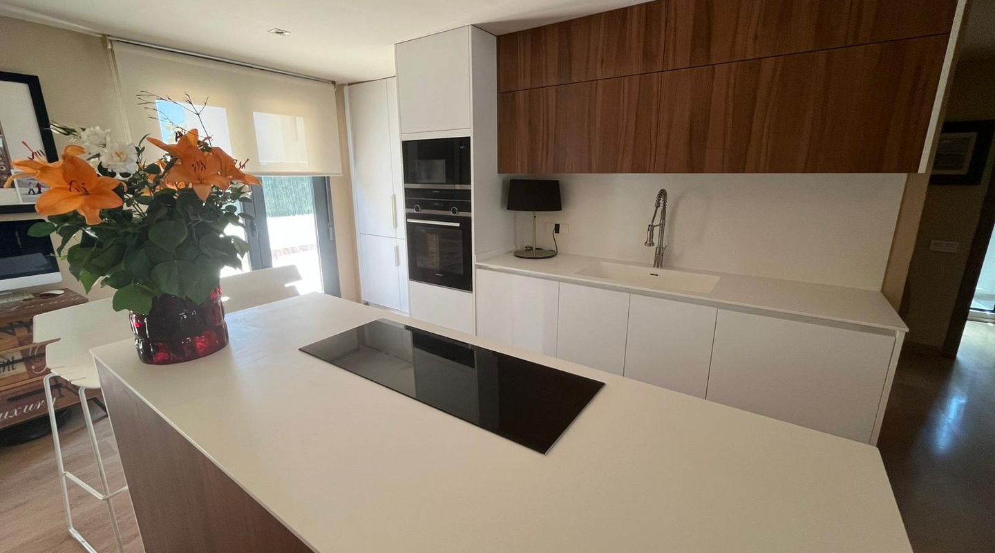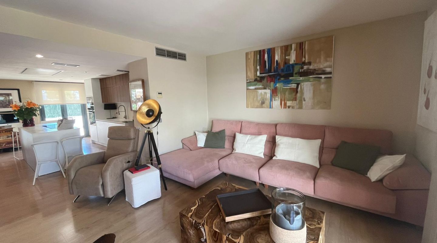Die Wohnung verfügt über eine durchdachte und elegante Aufteilung: ein großzügiges Wohn-Esszimmer mit direktem Zugang zur Terrasse, 2 helle Schlafzimmer, 2 Badezimmer und eine komplett ausgestattete Küche. Das Highlight ist die große private Terrasse, die die Wohnung auf drei Seiten umgibt und von allen Räumen aus zugänglich ist – der perfekte Ort, um die Sonne zu genießen, im Freien zu essen oder einfach zu entspannen.
