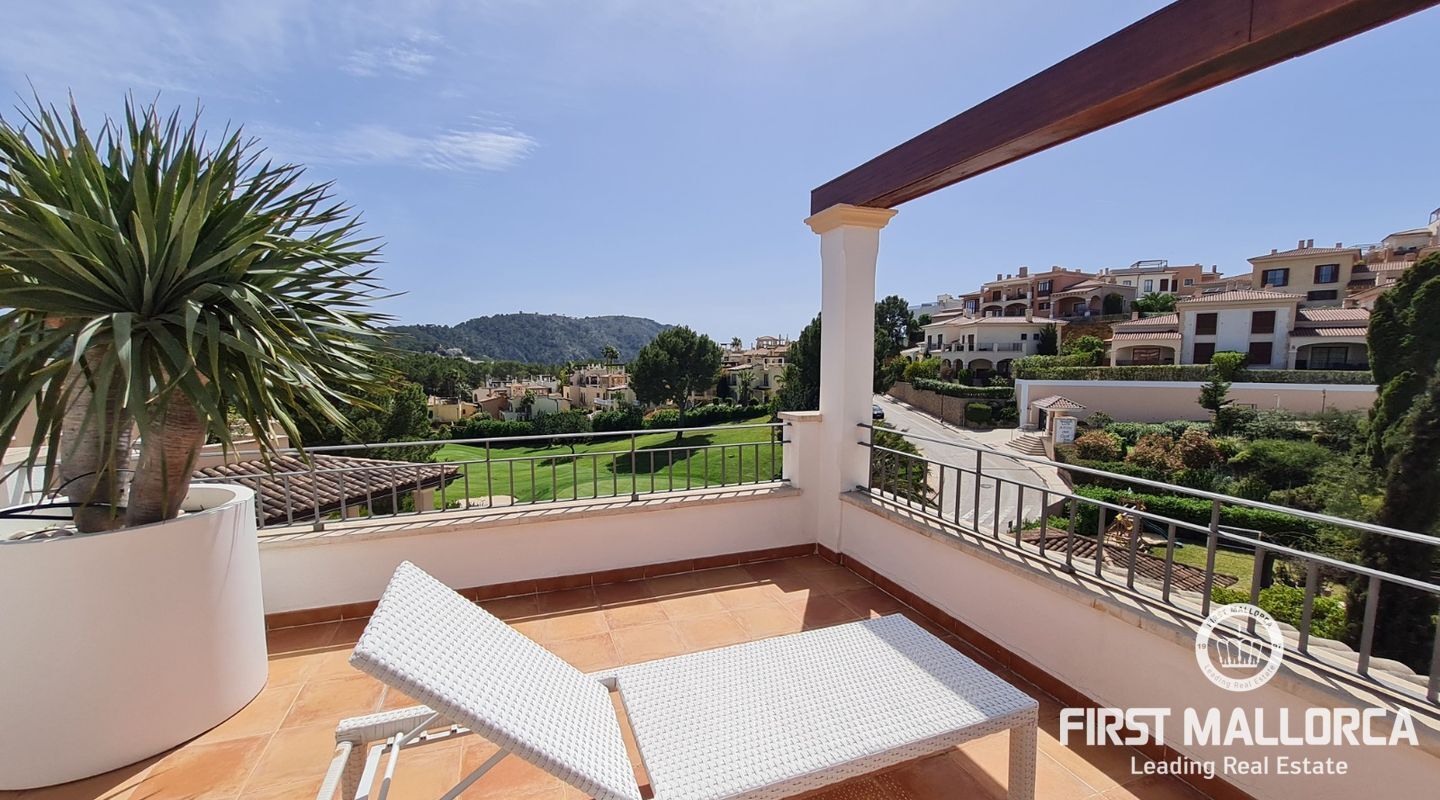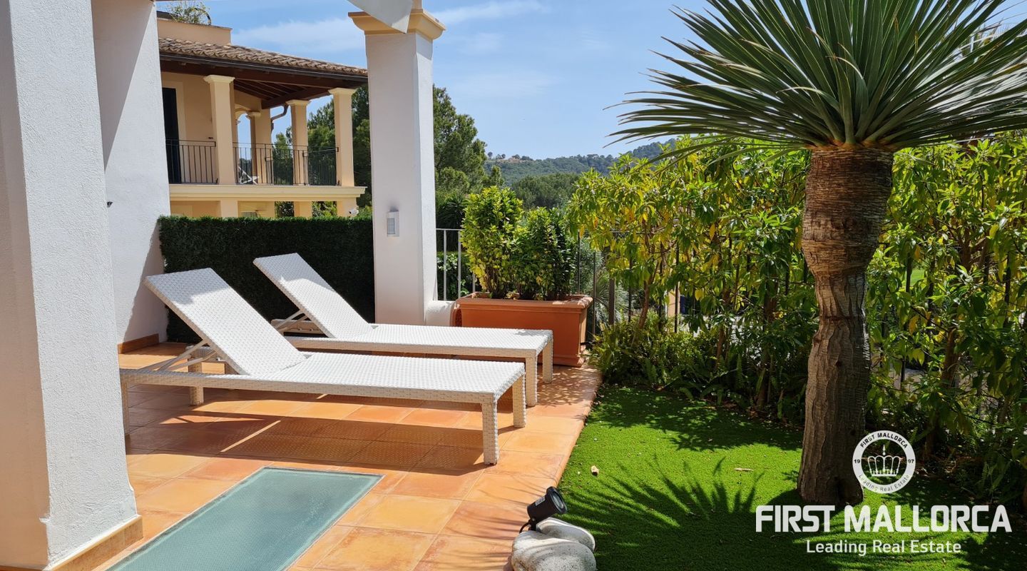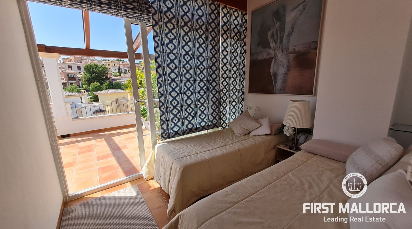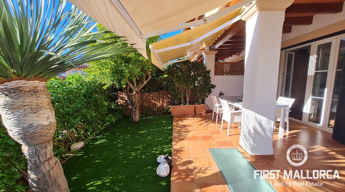 Diese wunderschöne Villa befindet sich in exzellenter Lage in einer gepflegten Wohnanlage, nur wenige Minuten zu Fuß zum Strand von Camp de Mar und nur 5 Fahrminuten nach Puerto de Andratx. Dieses helle Eckhaus ist auf drei Ebenen mit insgesamt 4 Schlafzimmern aufgeteilt, ideal für eine große Familie. Das Anwesen verfügt über einen attraktiven Innenhof und eine private Tiefgarage sowie über mehrere Terrassen. Weitere Ausstattungsmerkmale: Fußbodenheizung, Klimaanlage warm/kalt, Sat-TV.