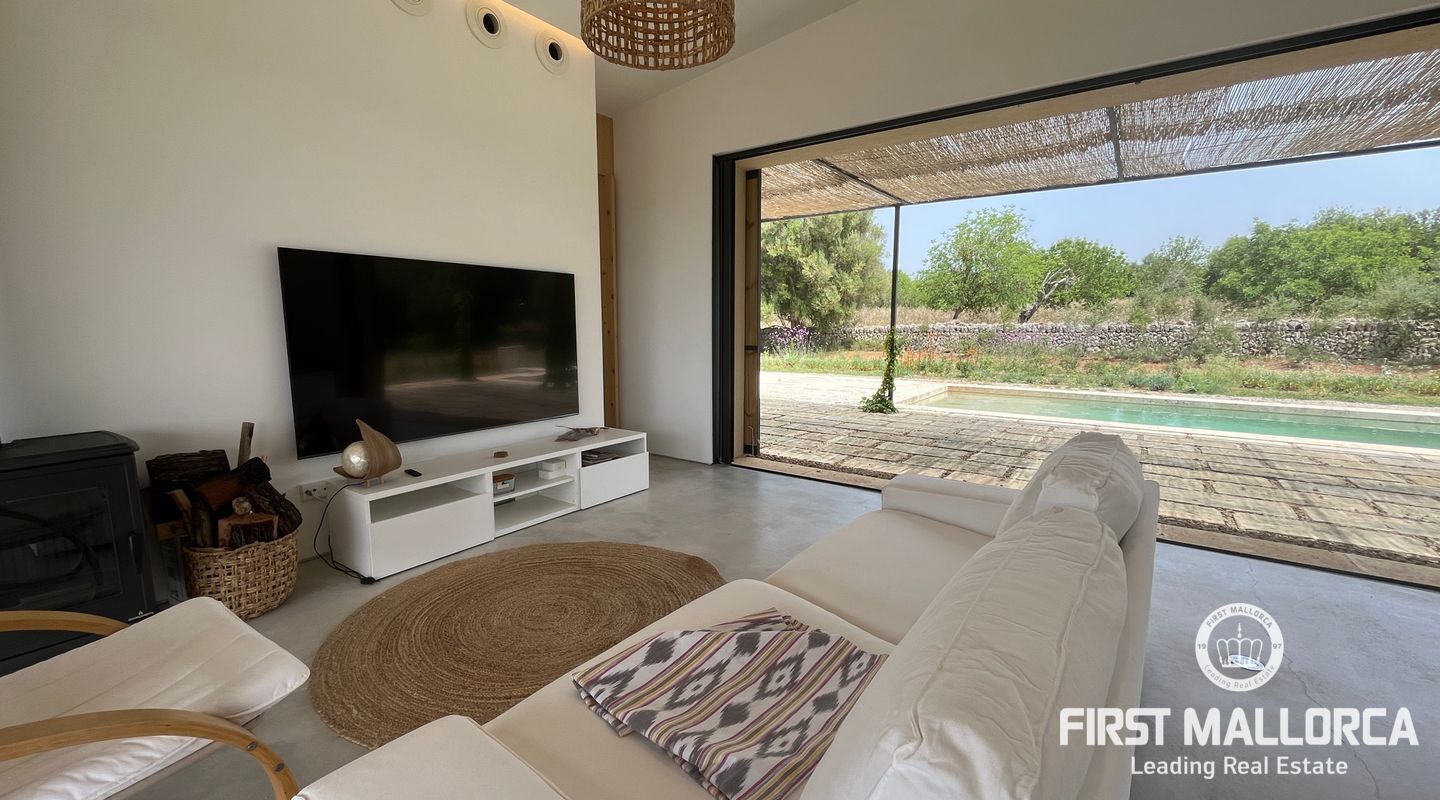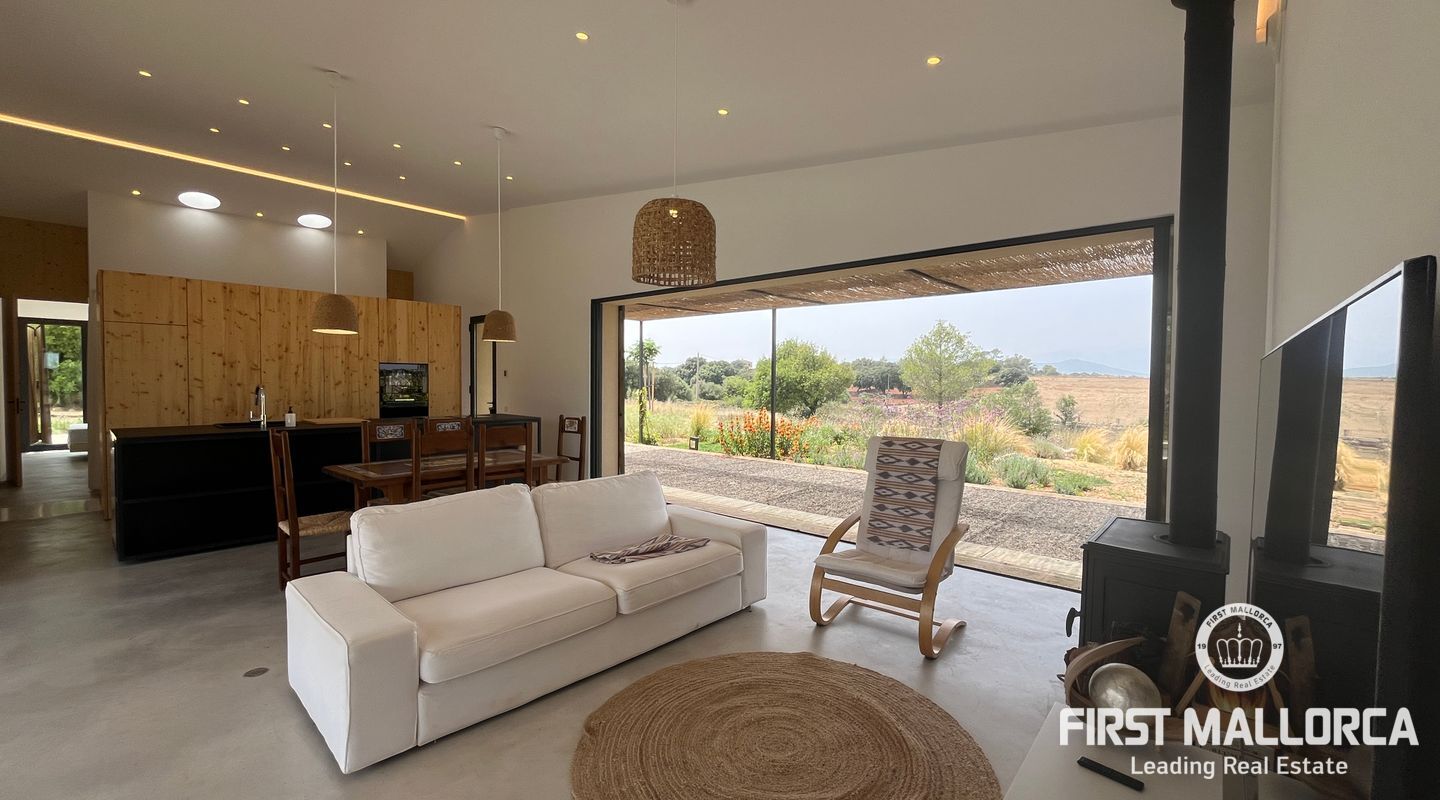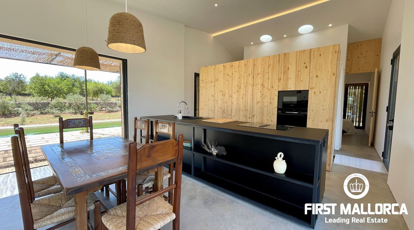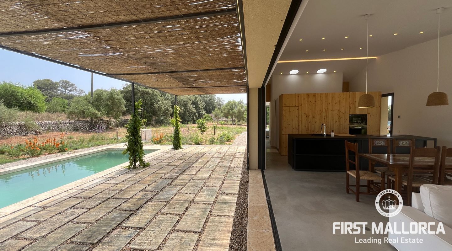 Atemberaubende neue Villa in dem malerischen Dorf Llubi gelegen. Die Immobilie bietet ein außergewöhnliches Wohnerlebnis mit einer perfekten Mischung aus modernen Annehmlichkeiten und charmanten rustikalen Elementen.