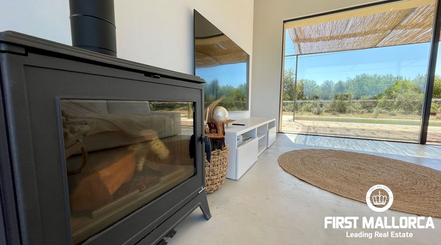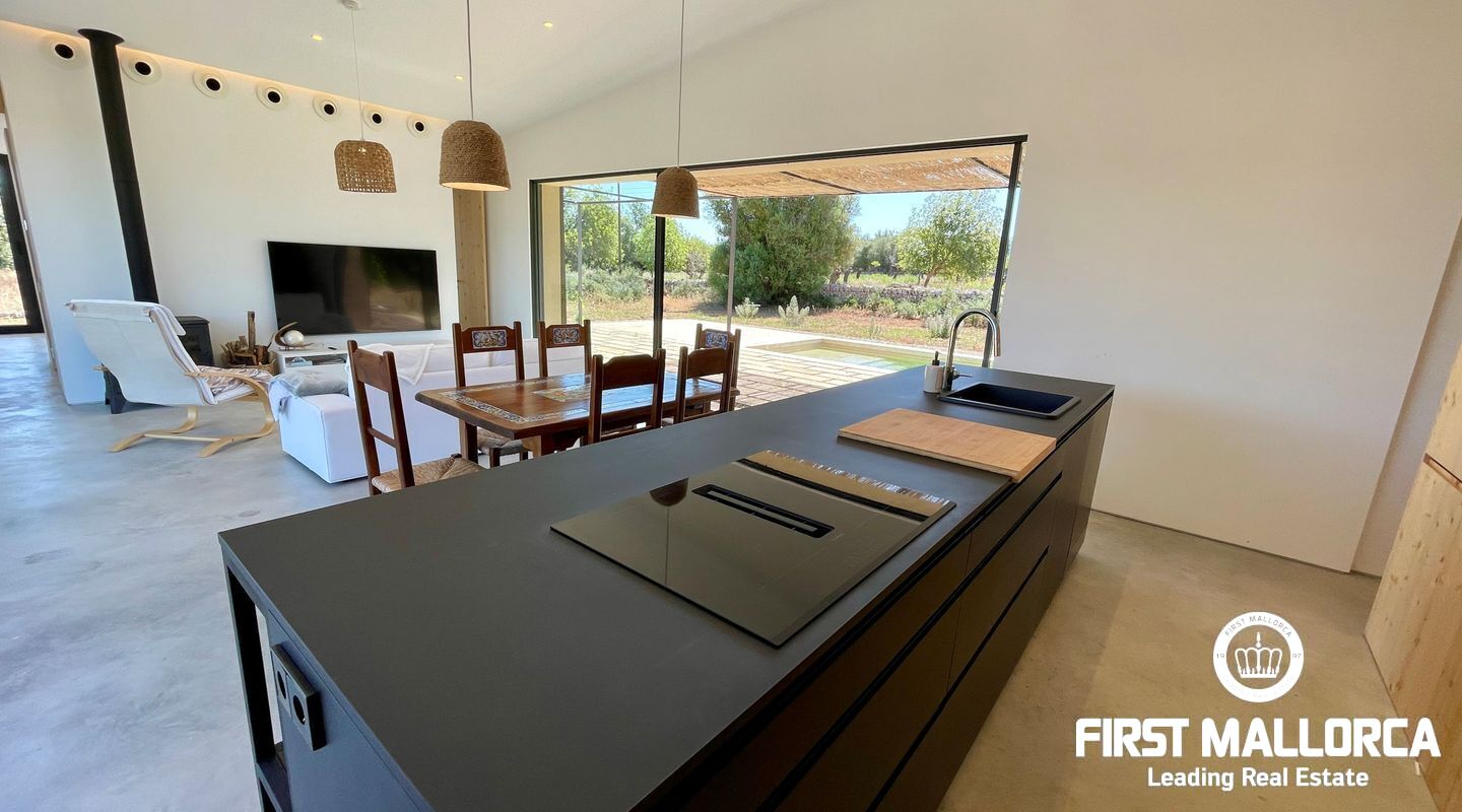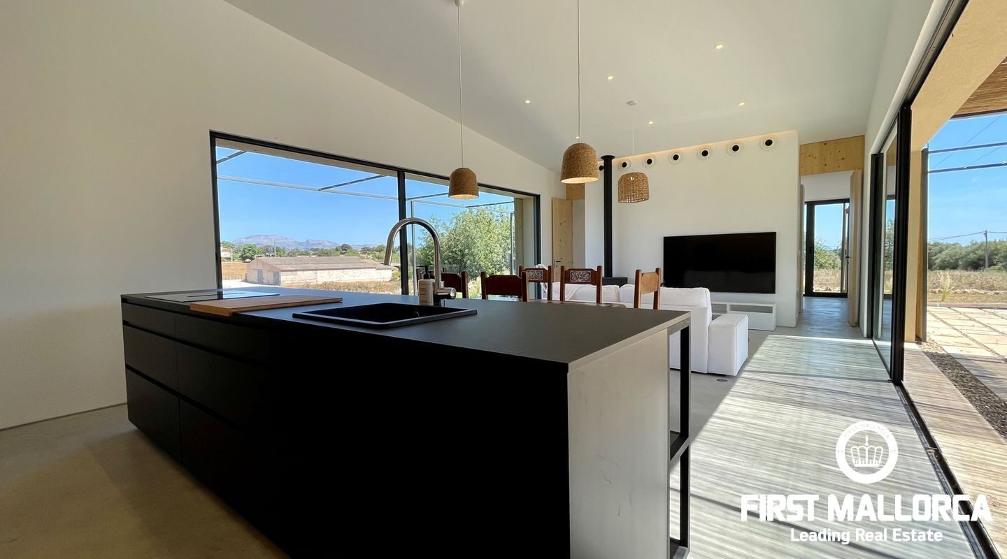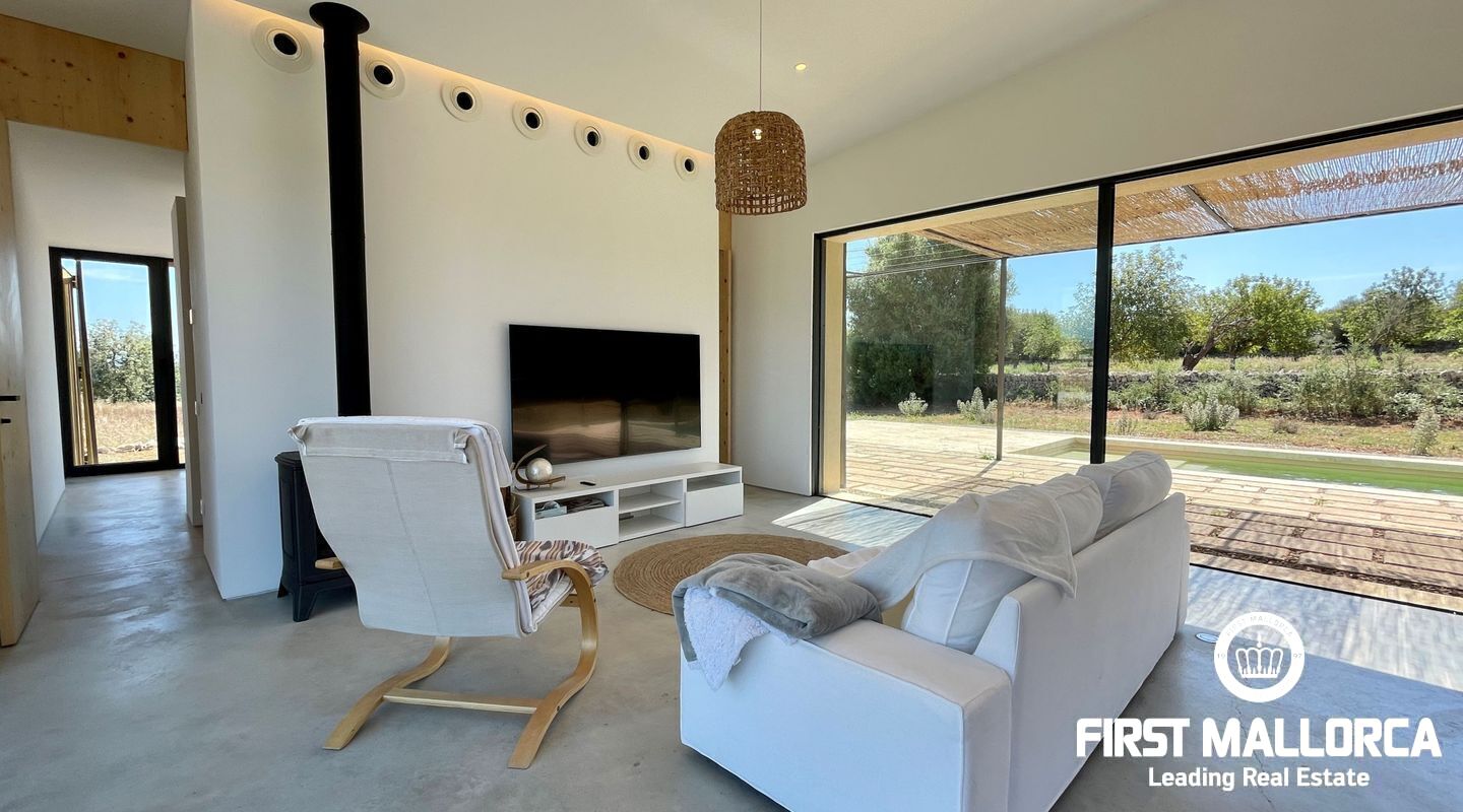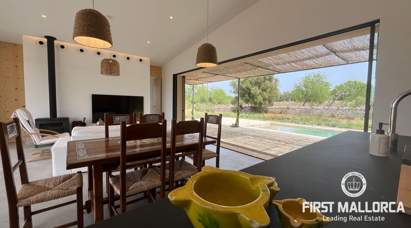 Atemberaubende neue Villa in dem malerischen Dorf Llubi gelegen. Die Immobilie bietet ein außergewöhnliches Wohnerlebnis mit einer perfekten Mischung aus modernen Annehmlichkeiten und charmanten rustikalen Elementen.