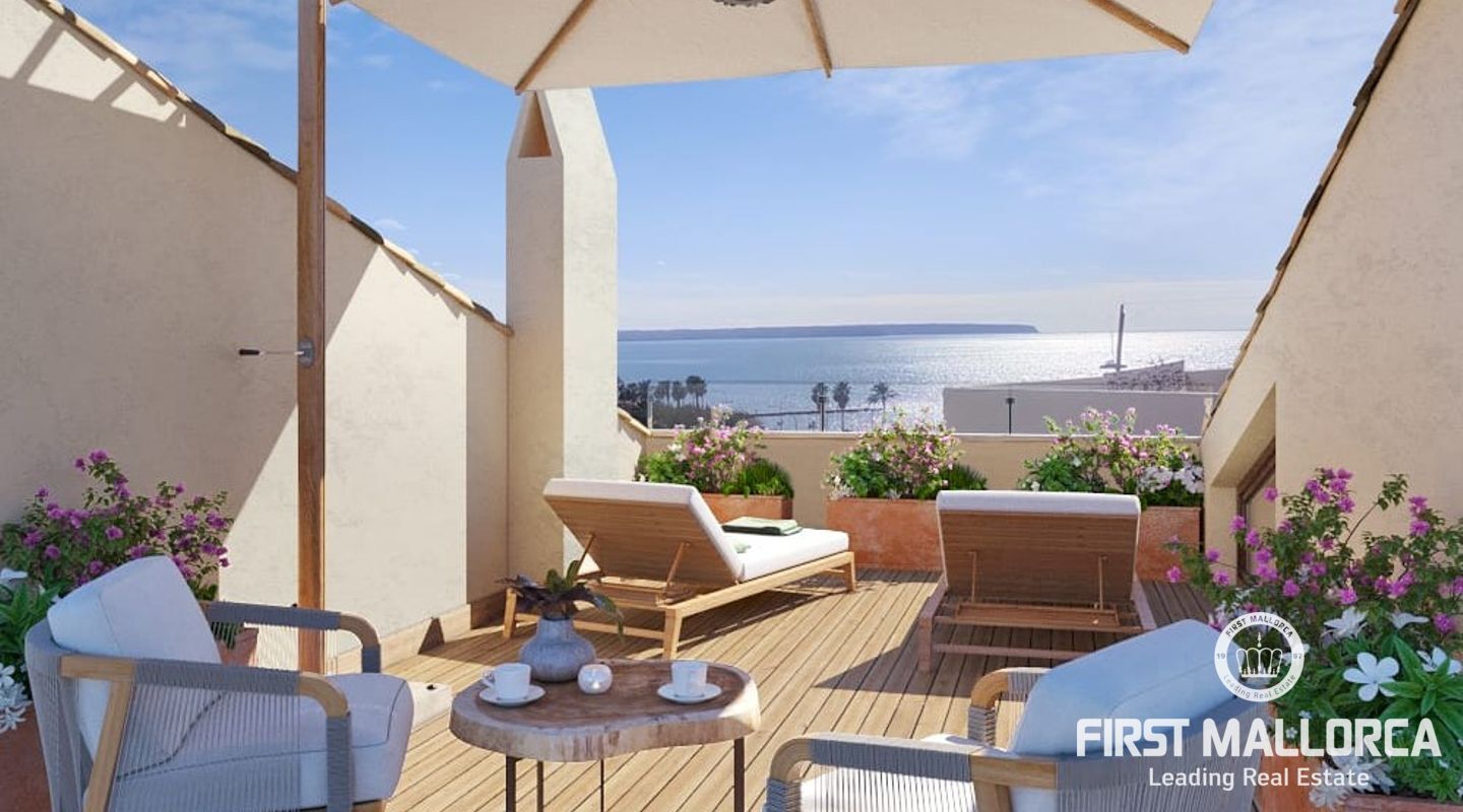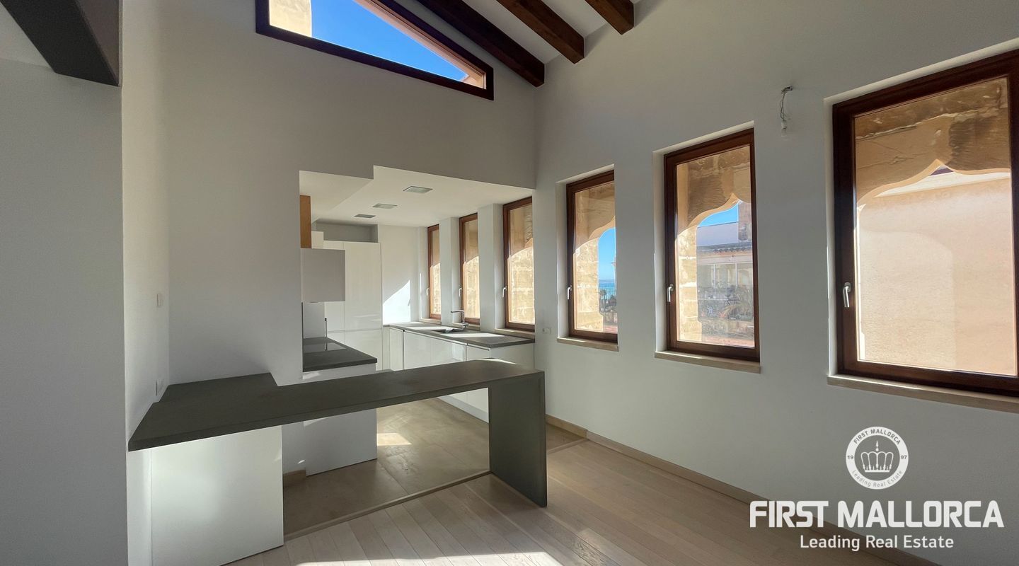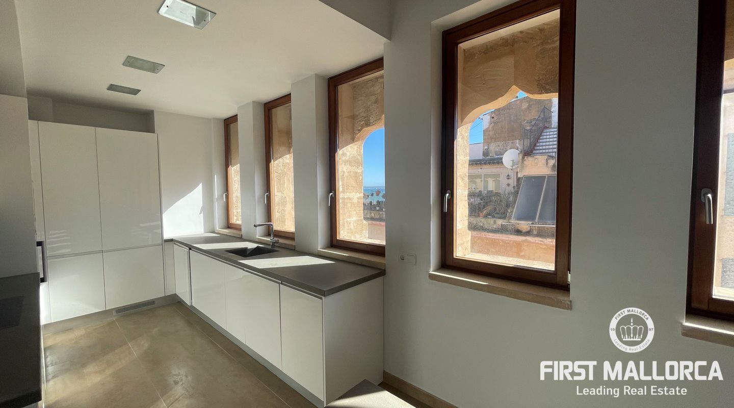 Spektakuläres Duplex-Penthouse in einem historischen Gebäude im Calatrava-Viertel von Palmas Altstadt. Diese Wohnung bietet einen fantastischen Panoramablick auf das Meer, die imposanten Stadtmauern und ein Labyrinth von historischen Gassen in der Altstadt. Das Ergebnis einer sorgfältigen Restaurierung ist ein elegantes Penthouse, das modernen Komfort mit dem zeitlosen Charme seiner ursprünglichen Elemente meisterhaft verbindet.
