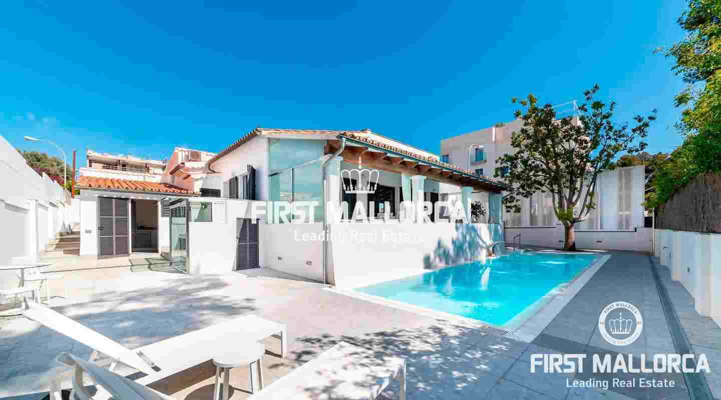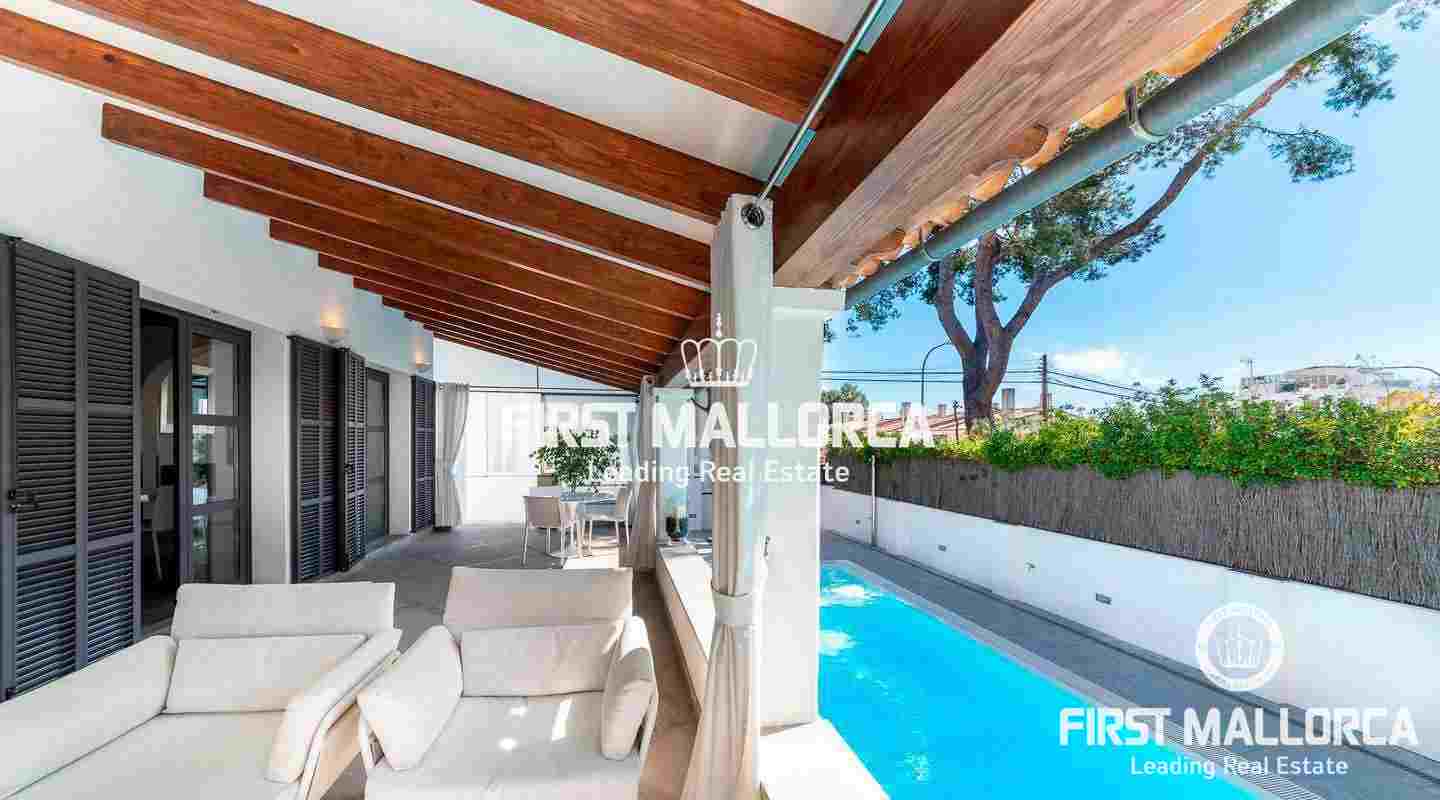 Ein aus qualitativ hochwertigen Materialien gebautes 3 Schlafzimmer und 3 Badezimmer Haus in Bonanova, einer ruhigen Wohngegend am Rande von Palma.