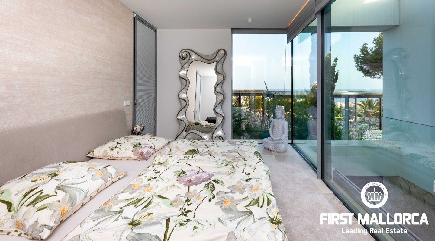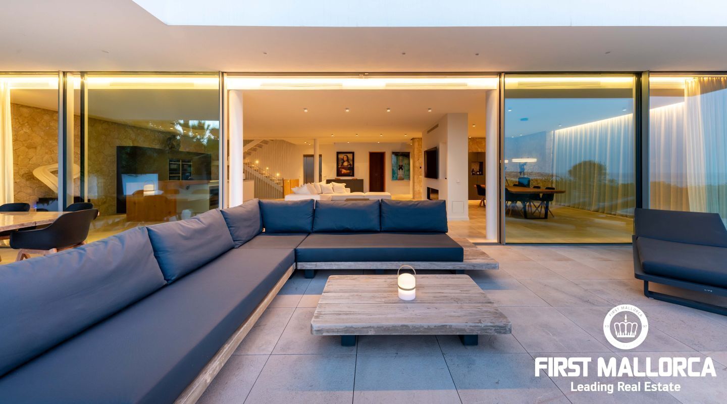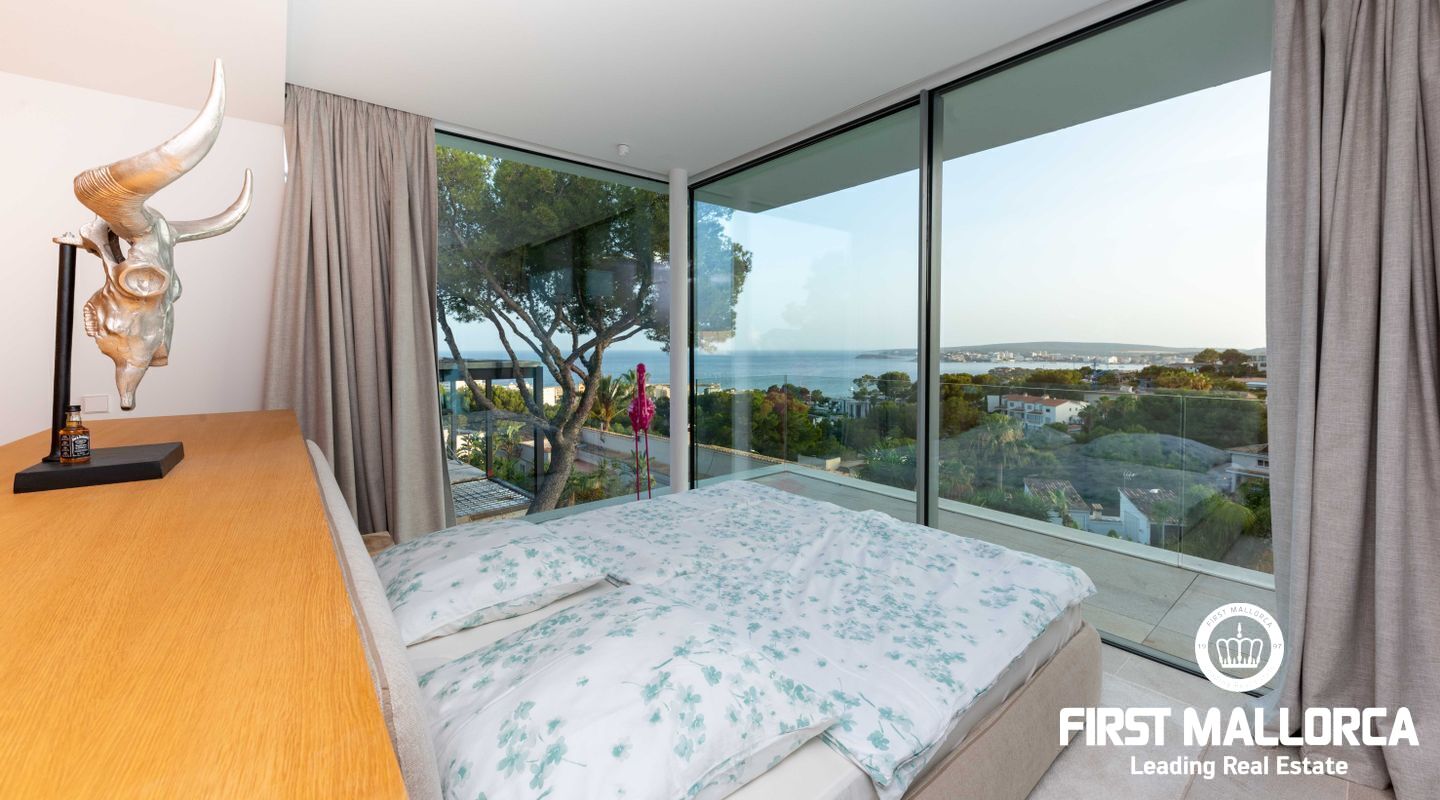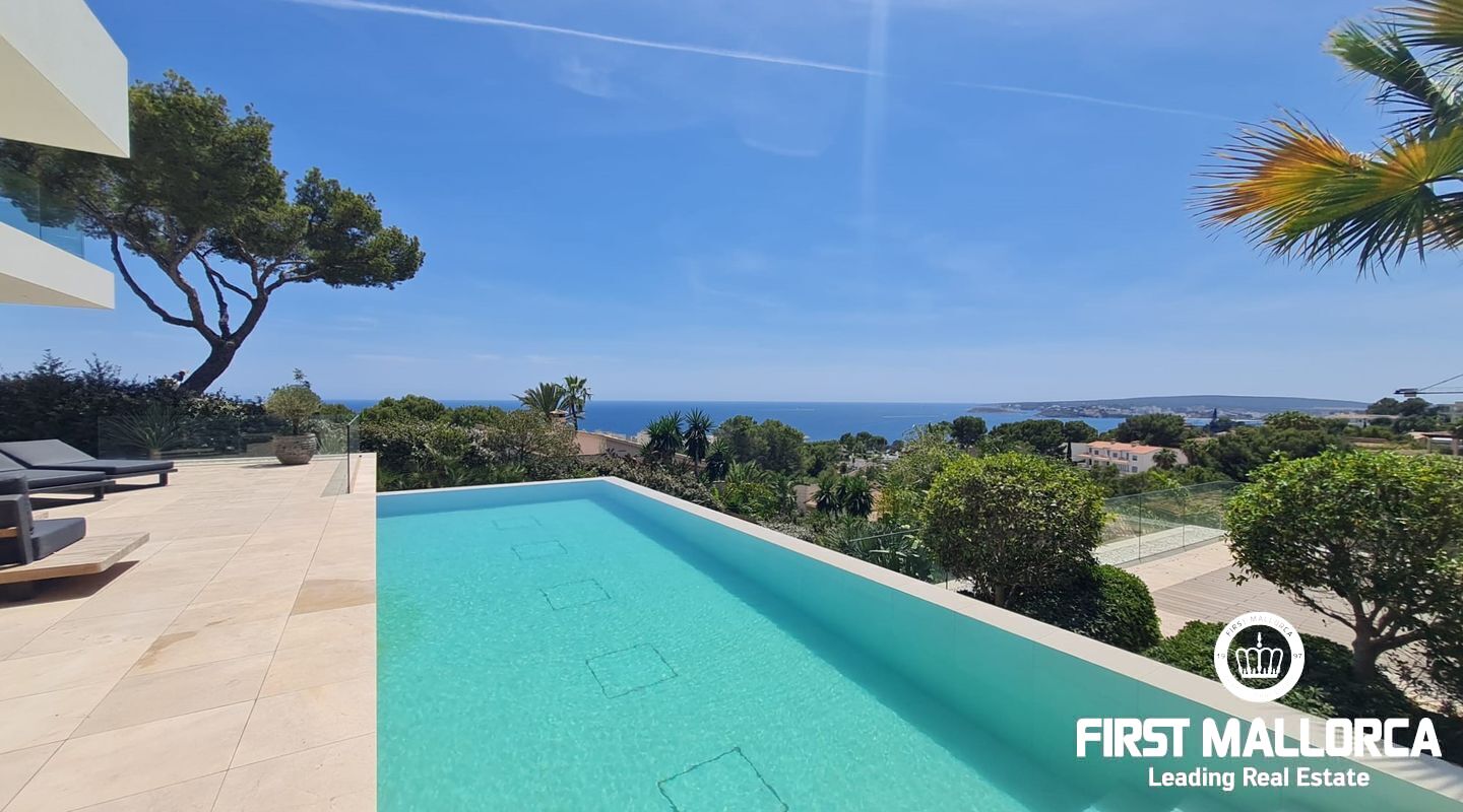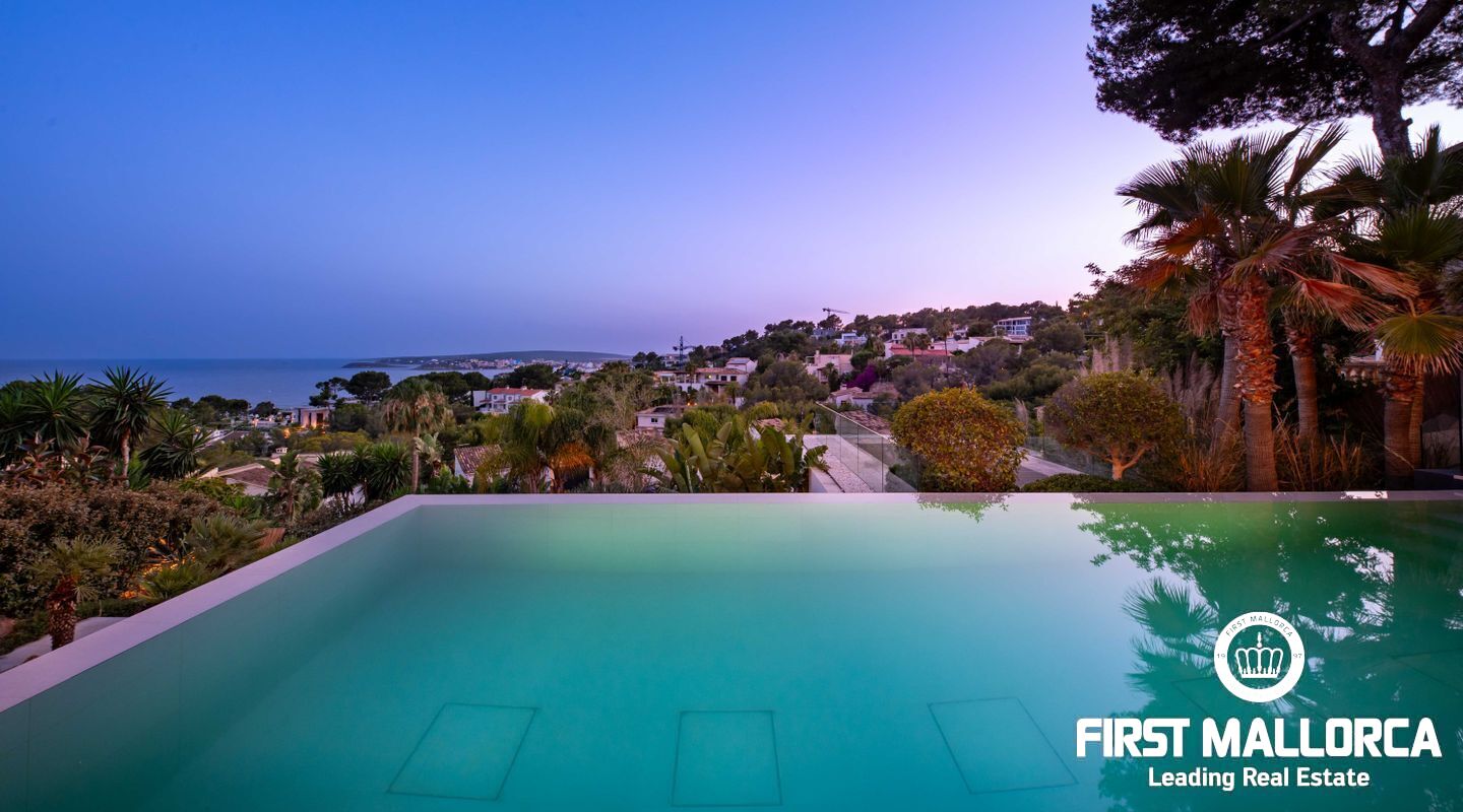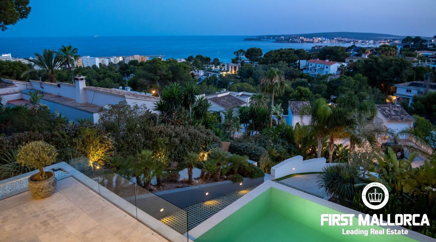 Diese moderne und lichtdurchflutete Villa in Costa d’en Blanes bietet atemberaubende Ausblicke auf das Meer und den Hafen von Puerto Portals aus allen Räumen sowie unvergessliche Sonnenuntergänge dank der Süd-/Südwest-Ausrichtung.