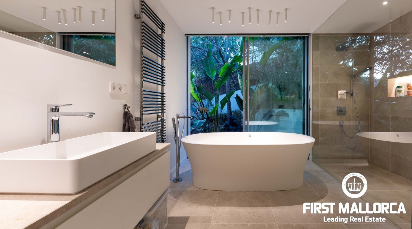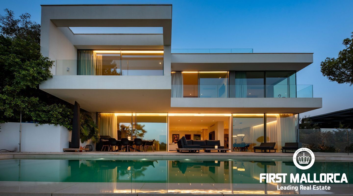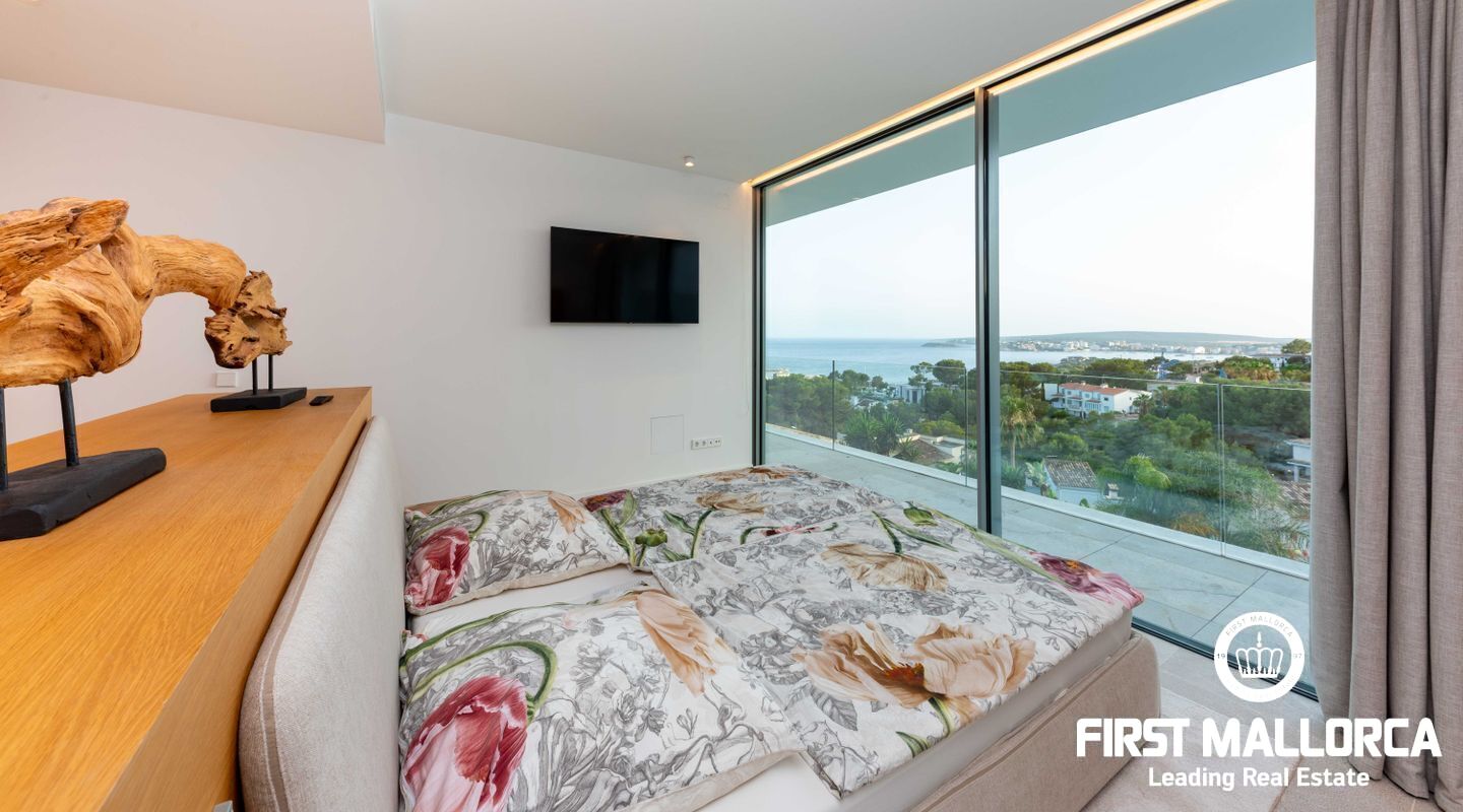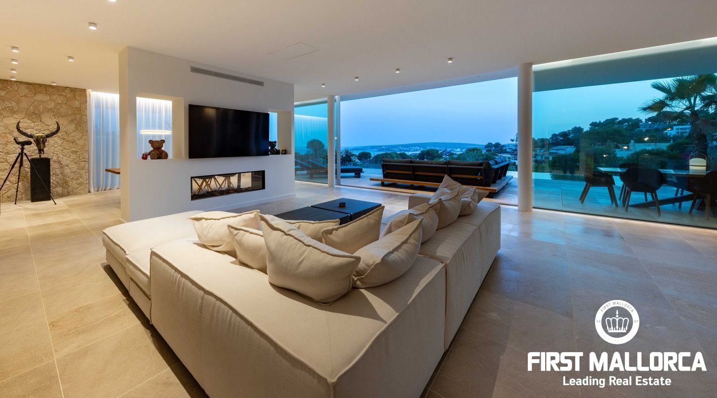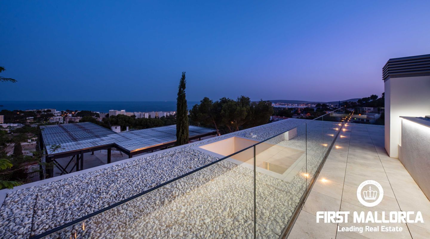 Diese moderne und lichtdurchflutete Villa in Costa d’en Blanes bietet atemberaubende Ausblicke auf das Meer und den Hafen von Puerto Portals aus allen Räumen sowie unvergessliche Sonnenuntergänge dank der Süd-/Südwest-Ausrichtung.