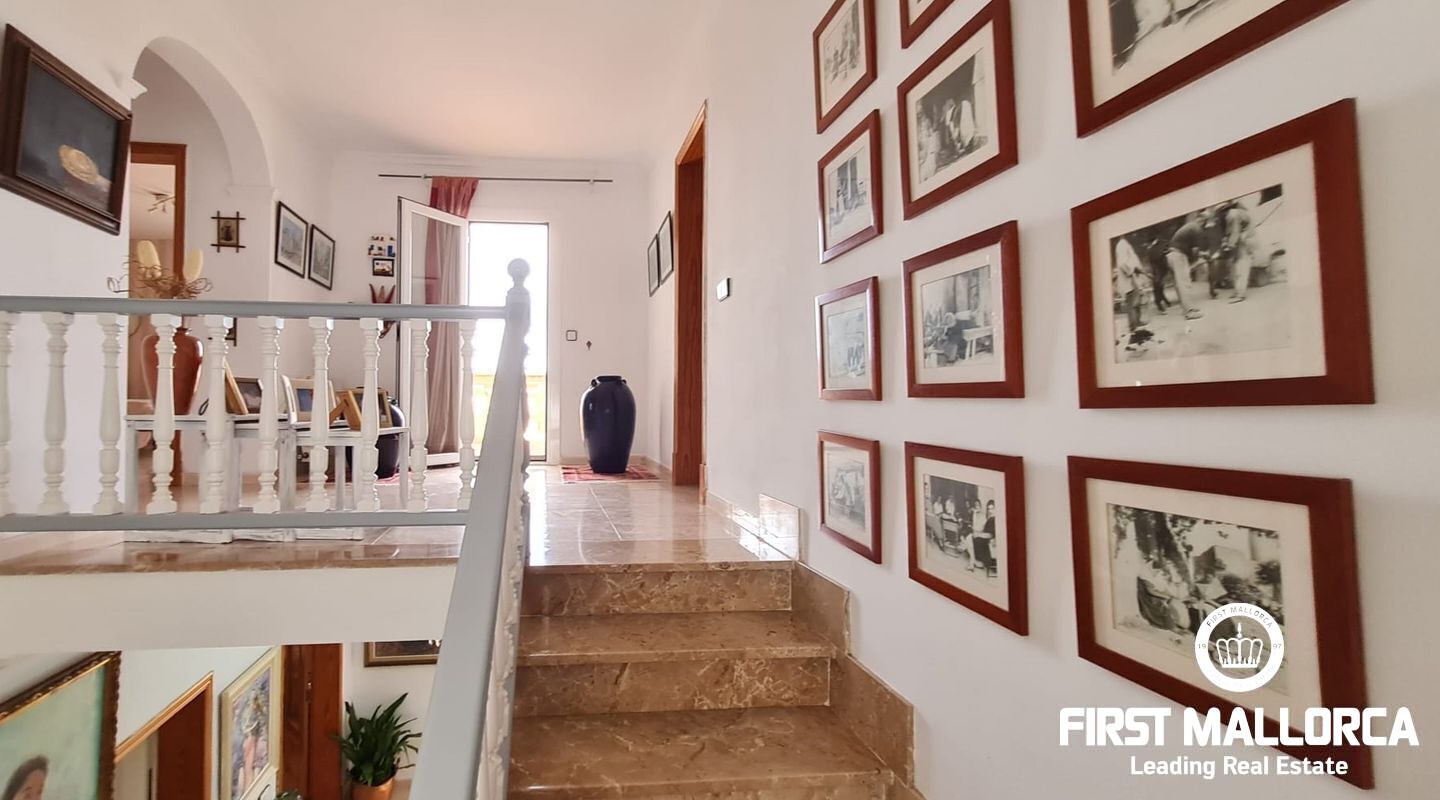 Im Erdgeschoss befindet sich der Eingangsbereich mit Treppe zum Obergeschoss, ein geräumiges Wohnzimmer mit separater Küche, einer gemütlichen Winter-Pergola mit Kamin und einem Schlafzimmer mit separatem Bad. Im Obergeschoss befinden sich 2 weitere Schlafzimmer, die sich ein Badezimmer teilen, sowie das Hauptschlafzimmer mit Bad en suite. Alle Zimmer sind großzügig geschnitten, von 2 Schlafzimmern aus hat man Zugang zu einer großen offenen Terrasse mit Panoramablick auf die Bucht von Palma, das Meer und die umliegenden Berge. Auch wenn die Villa einige Modernisierungen benötigt, bietet sie mehr als genug Potential, um zu einer komfortablen und häuslichen Residenz gestaltet zu werden.