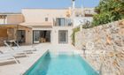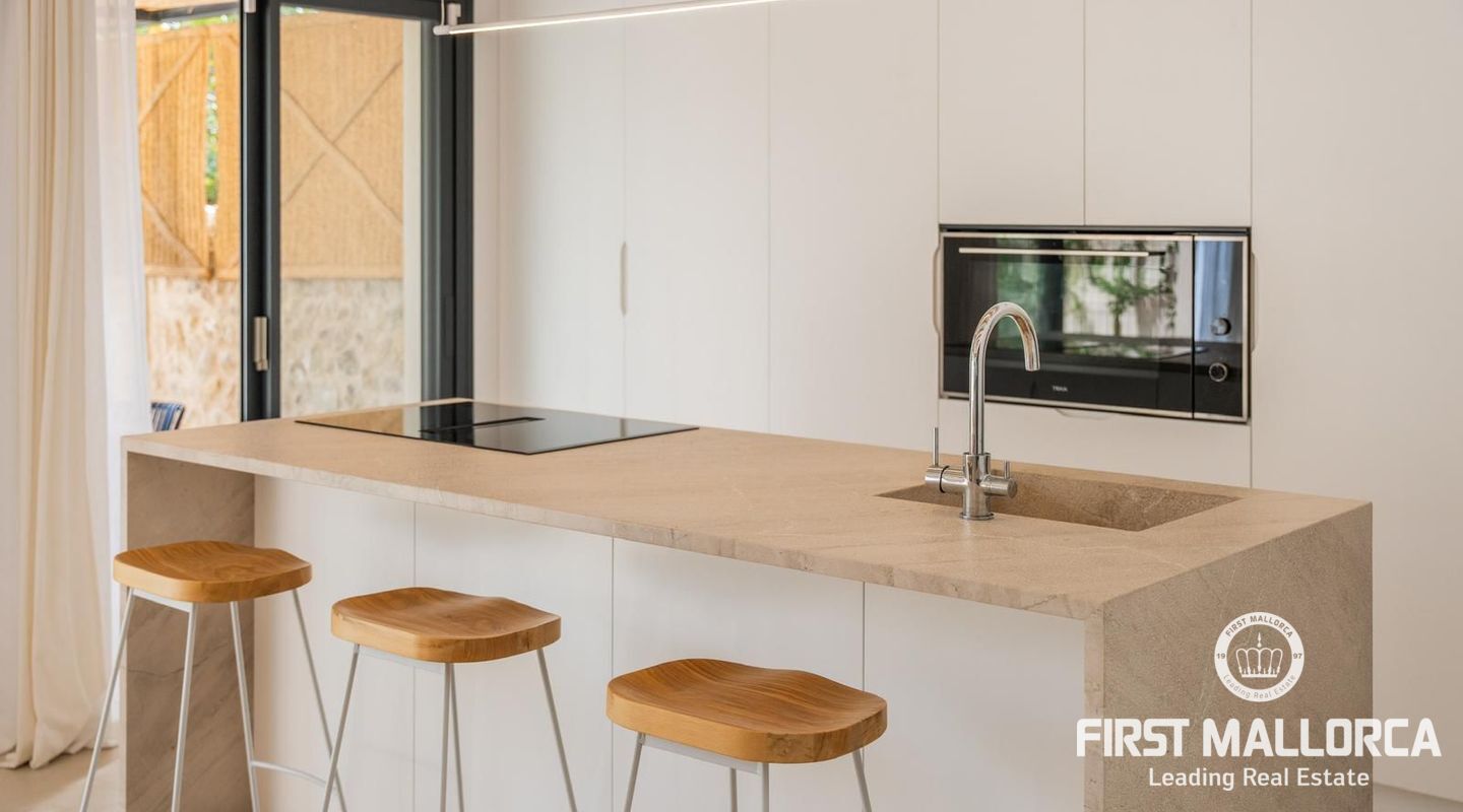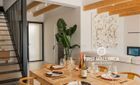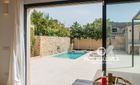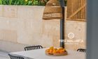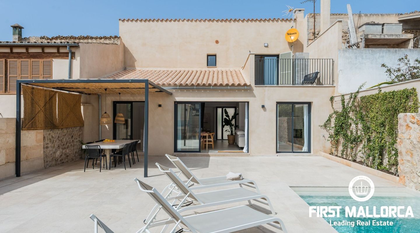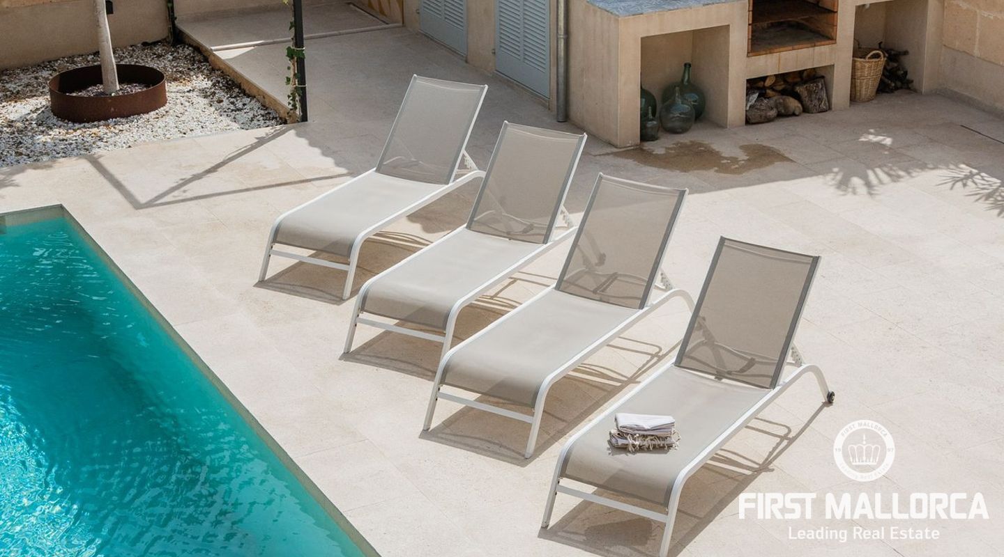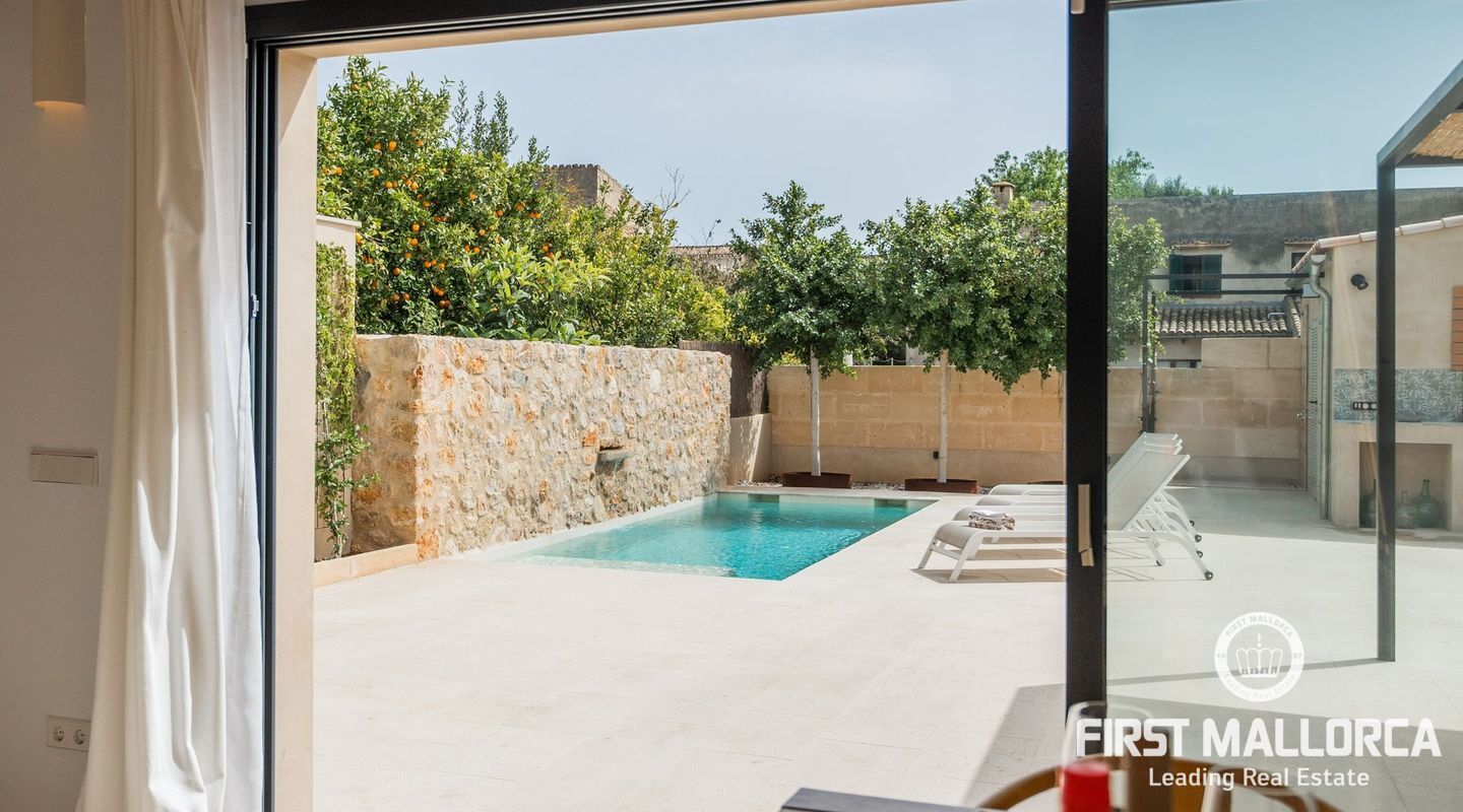 Das Anwesen ist über zwei Ebenen verteilt. Im Erdgeschoss haben wir ein gemütliches Wohn-Esszimmer mit Kamin und eine voll ausgestattete offene Küche, die zu einem geräumigen Innenhof mit Swimmingpool führt, wo wir eine Außendusche und einen Chill-out-Bereich finden können.