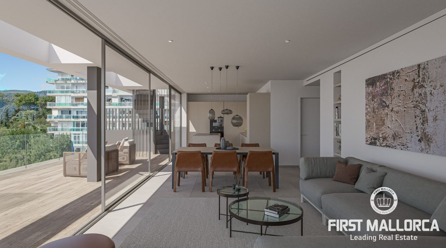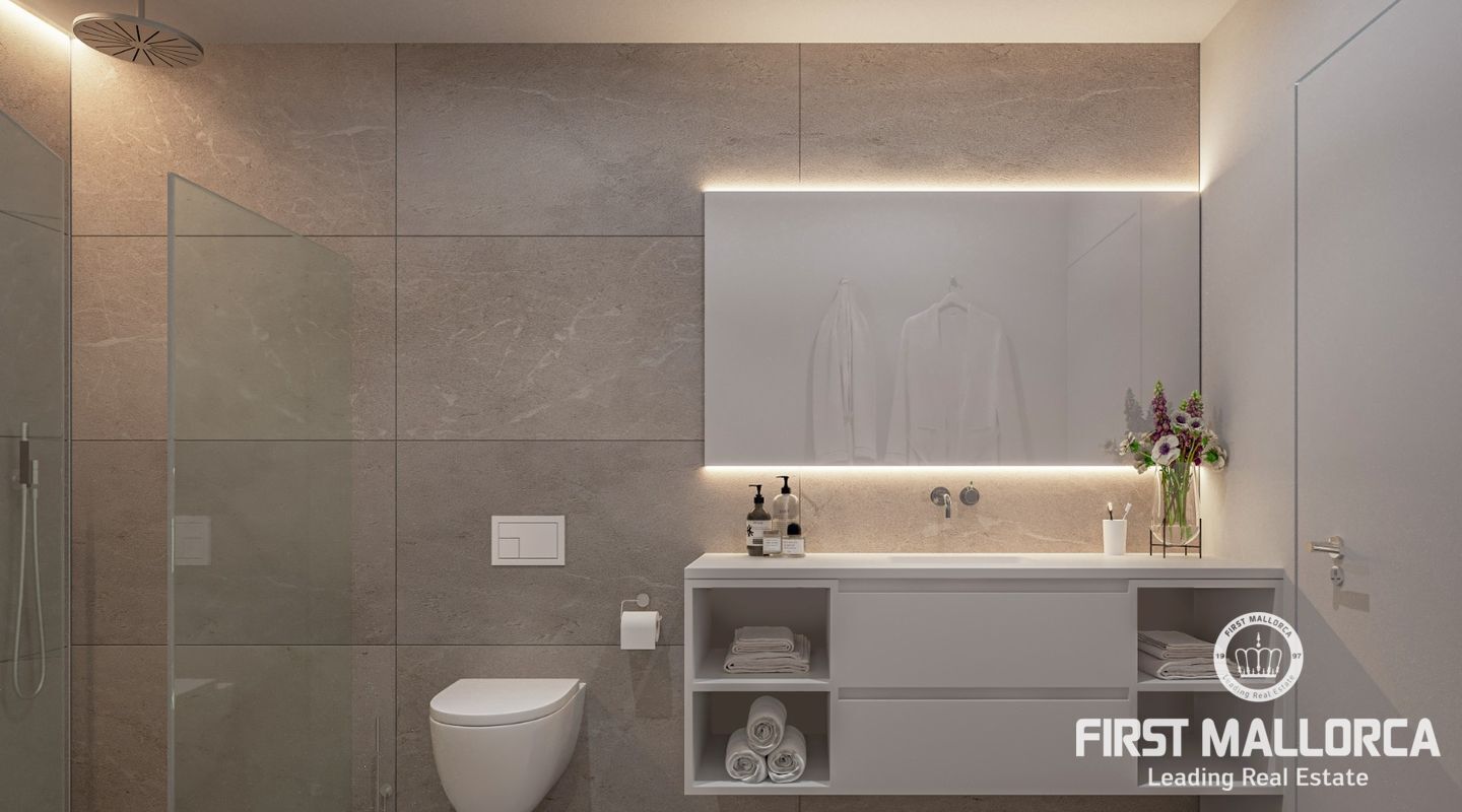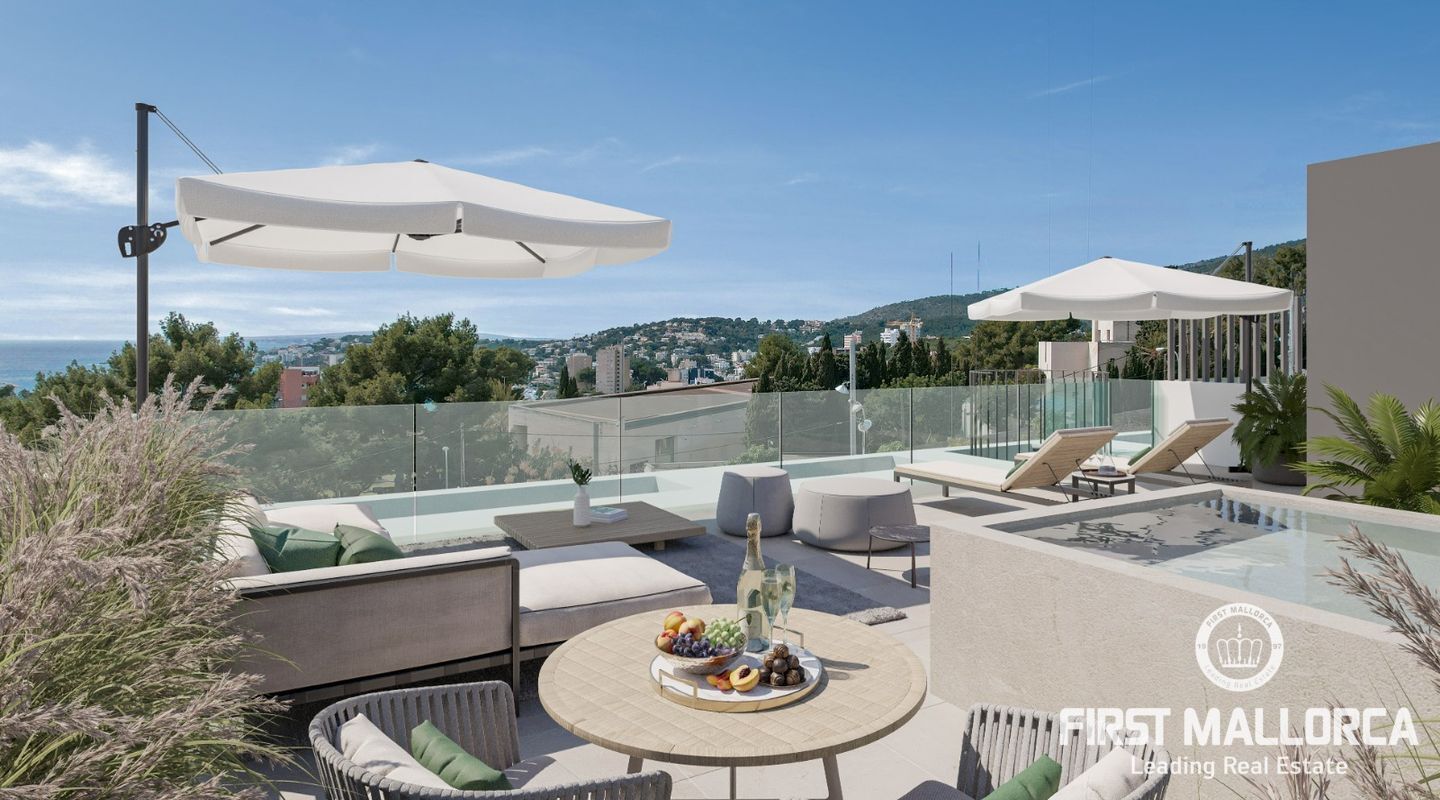 This residence with 23 exclusive flats, planned by an experienced property developer, will be ready for occupancy in the 2nd quarter of 2024 and is located just a few minutes from the Marivent Palace and the sea in Cala Mayor. The new flats will be offered in sizes from 1-3 bedrooms, all including an underground parking space and storage room. An open-plan living concept with lots of light has been realised to perfection by the architect. Some flats have a sea view, while the penthouses also offer a small pool on the roof terrace. The furnishings leave nothing to be desired and fulfil even the highest quality standards. Details include: Underfloor heating, air conditioning, aluminium windows and doors, large-format light stone floors, real wood floors and much more. These flats are suitable as holiday homes, but also for year-round use due to the excellent infrastructure. The community has a Mediterranean-style garden and a swimming pool, and the underground garage is connected to all levels by lift. Please contact our sales team at any time for further information or to arrange a viewing.
