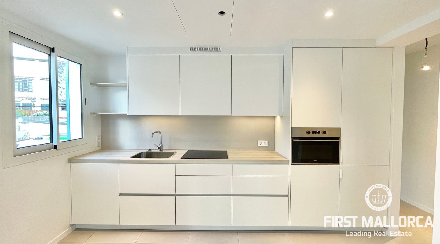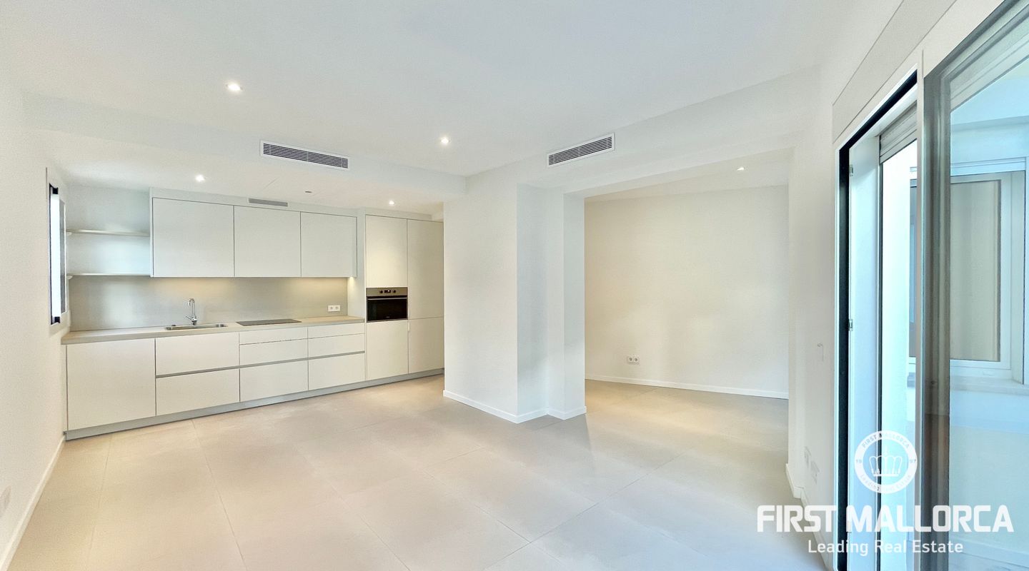 The living room with an integrated kitchen has access to a 15m2 interior patio that could become a very cozy outdoor lounge, small BBQ area, or both.