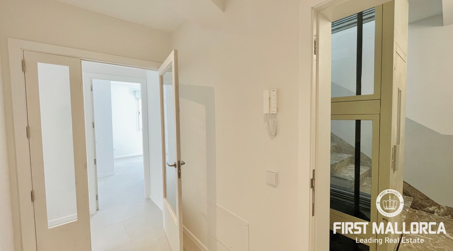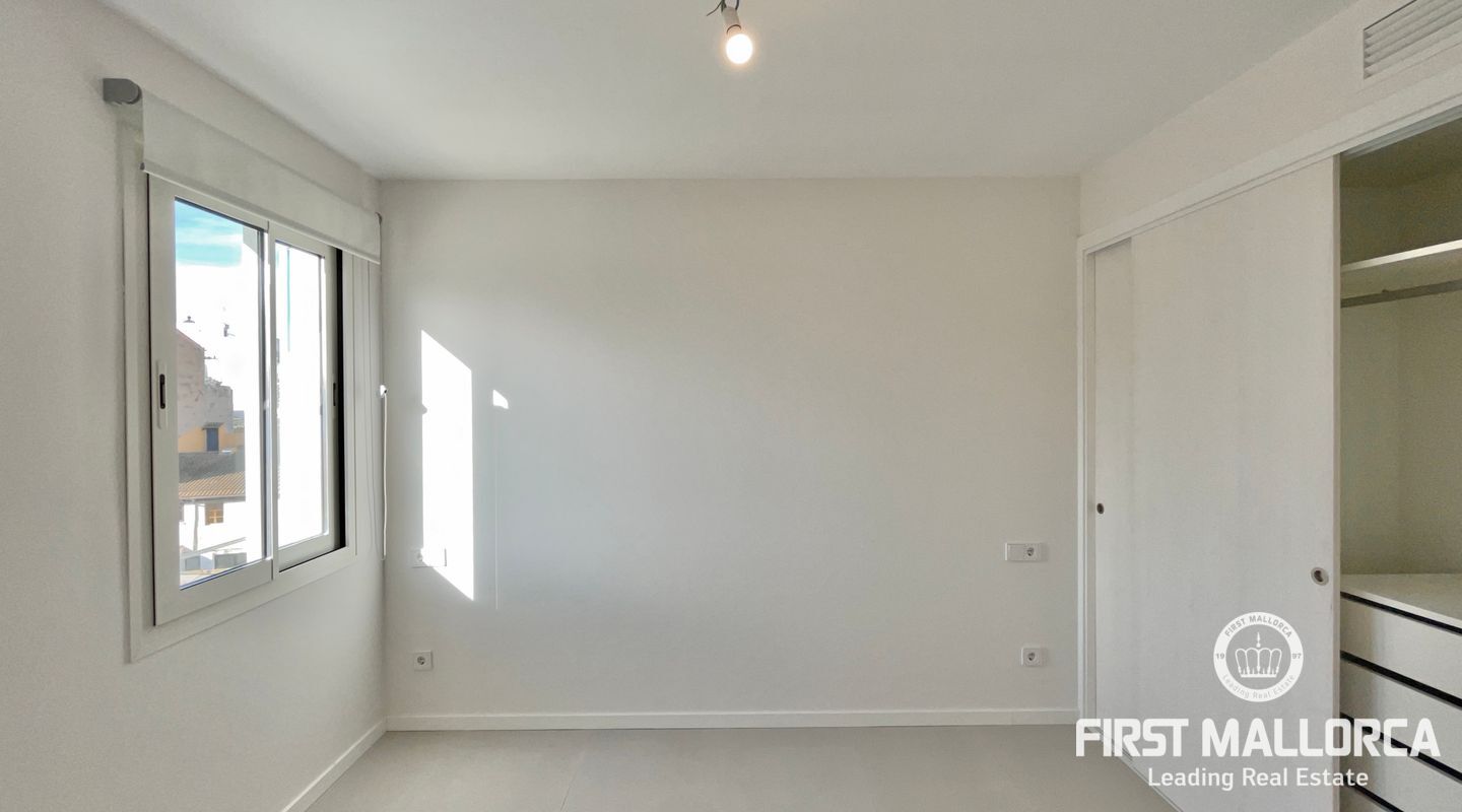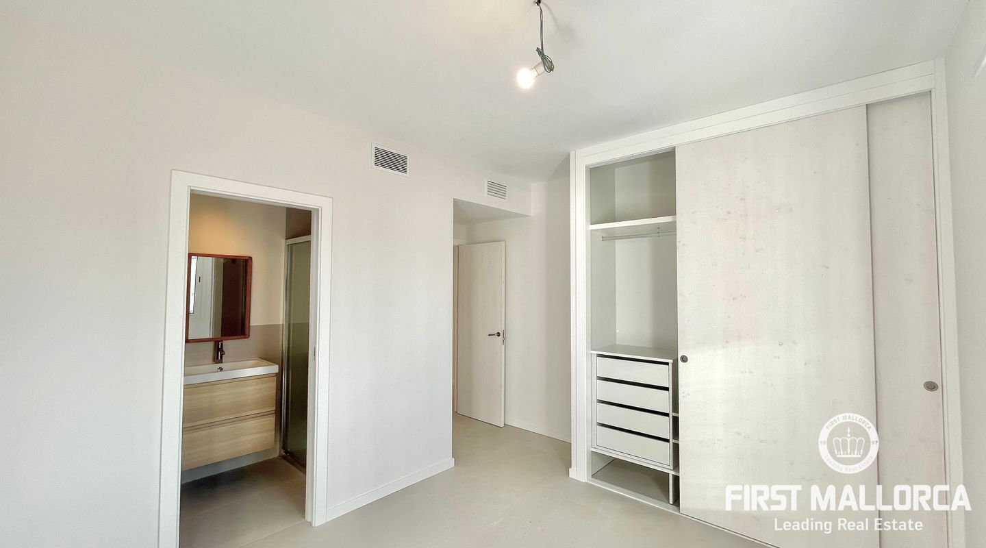 In this unit, there are two double bedrooms with built-in wardrobes and two full bathrooms, one of them en-suite. Both bedrooms face the street and have a southern orientation.