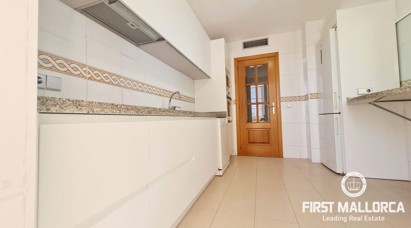 This beautiful apartment, complete with a renovated kitchen, is located in the Bonanova neighborhood with stunning views of the sea. It comprises a living room, a fully equipped kitchen, and four bedrooms. The main bedroom is double-sized with fitted wardrobes and an en-suite bathroom. The other three bedrooms share a bathroom and are distributed in the second part of the house. The property also features a glazed terrace and a smaller one connected to the kitchen. It is available for long-term rental, unfurnished, and includes a garage space and storage room.. For more information, do not hesitate to contact the First Mallorca rental department.