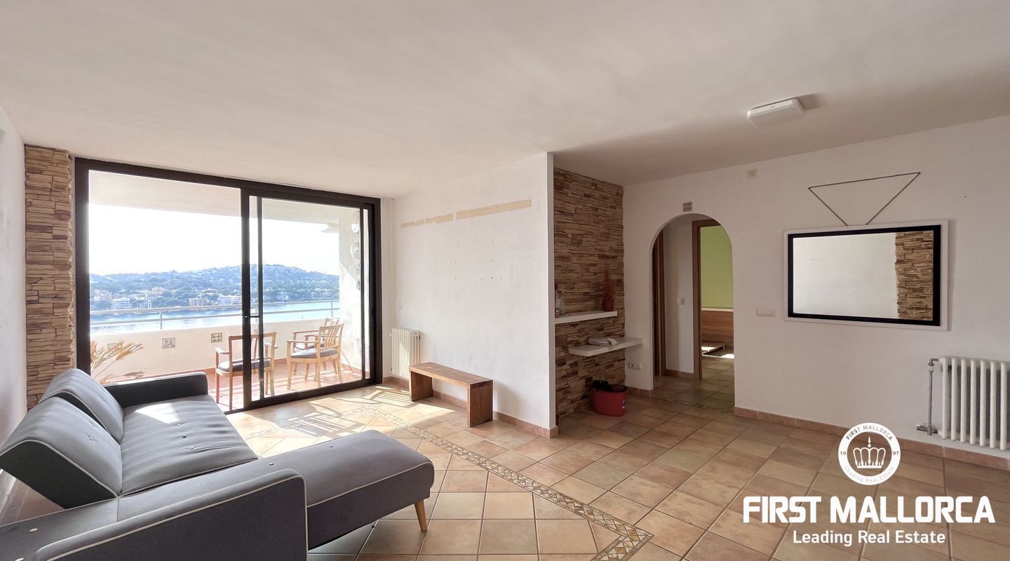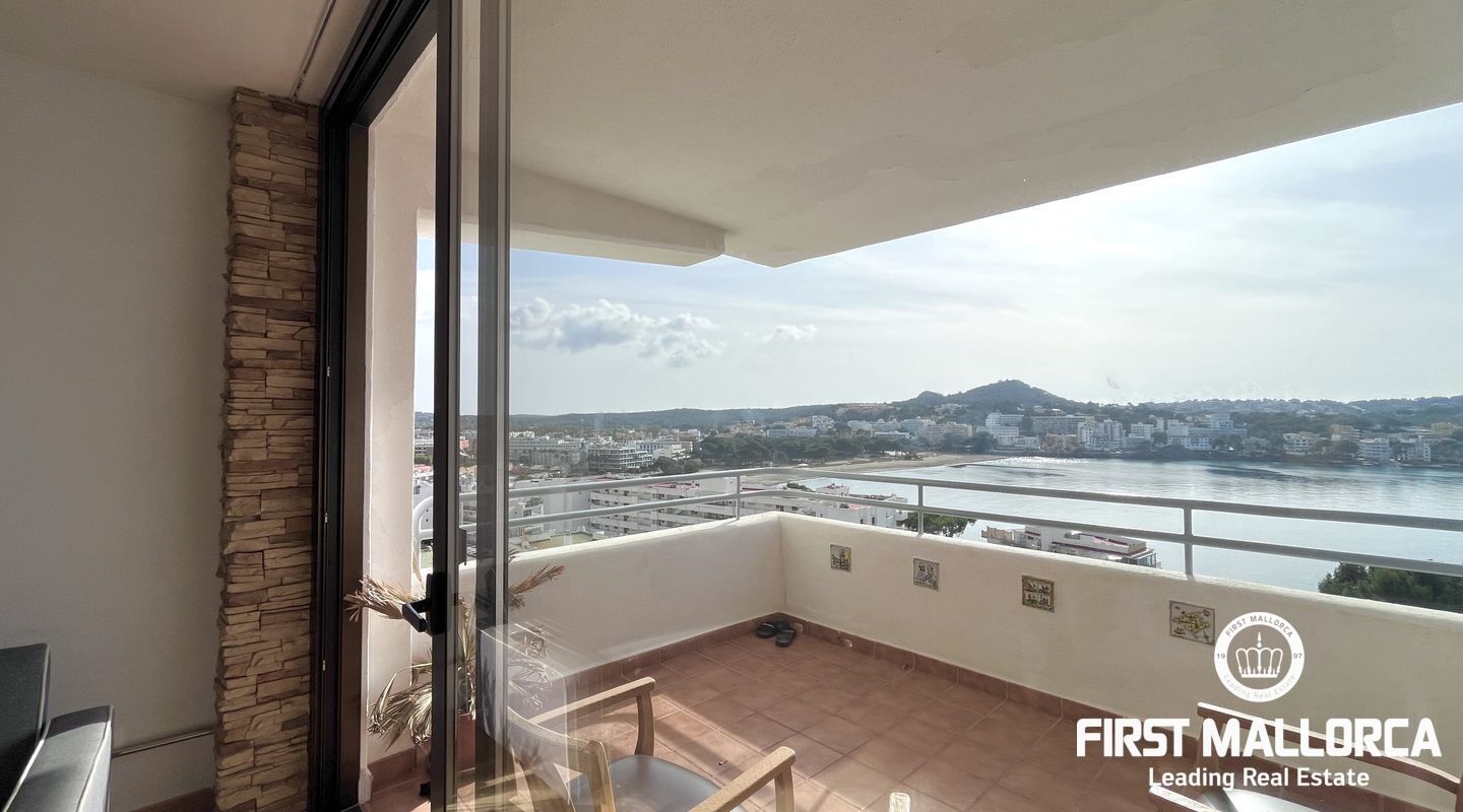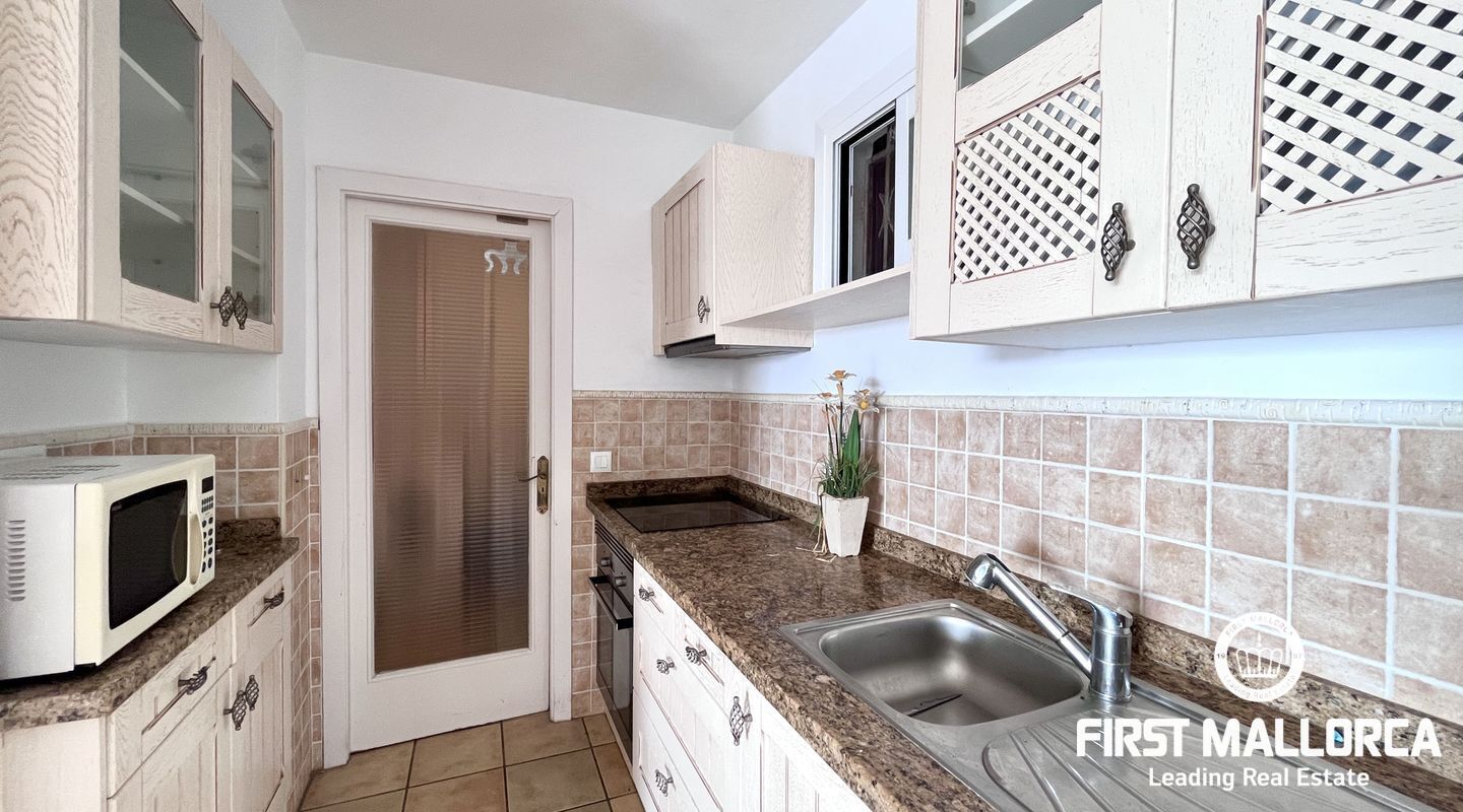 This cozy apartment with sea views is located in Santa Ponsa and is available from 1.11.2025 for short-term rental for a period of 10 months. It is an ideal place for a couple. The property features two double bedrooms, both equipped with built-in wardrobes, a full bathroom with a bathtub, and a living-dining room with an open kitchen. Additionally, it includes a laundry room and a convenient storage space at the entrance. The apartment is equipped with central heating, and the rental price includes community fees, heating, and water. The building offers additional amenities such as two elevators and a communal swimming pool. Feel free to contact the First Mallorca team for more information or to arrange a viewing!
