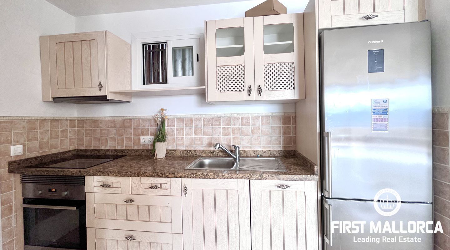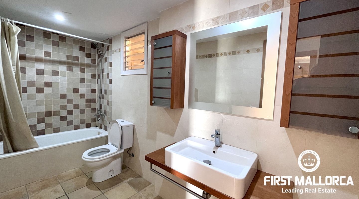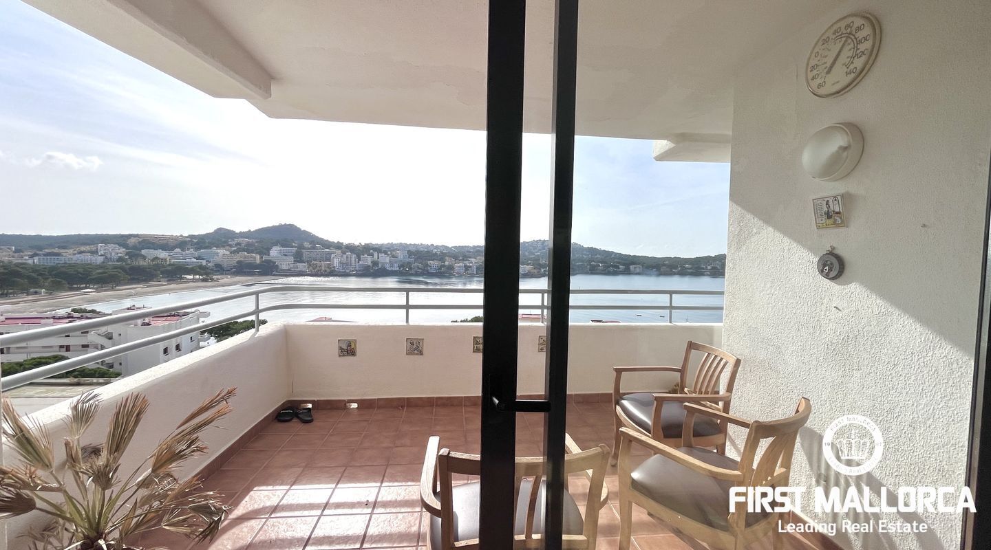 This cozy apartment with sea views is located in Santa Ponsa and is available from 1.11.2025 for short-term rental for a period of 10 months. It is an ideal place for a couple. The property features two double bedrooms, both equipped with built-in wardrobes, a full bathroom with a bathtub, and a living-dining room with an open kitchen. Additionally, it includes a laundry room and a convenient storage space at the entrance. The apartment is equipped with central heating, and the rental price includes community fees, heating, and water. The building offers additional amenities such as two elevators and a communal swimming pool. Feel free to contact the First Mallorca team for more information or to arrange a viewing!