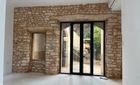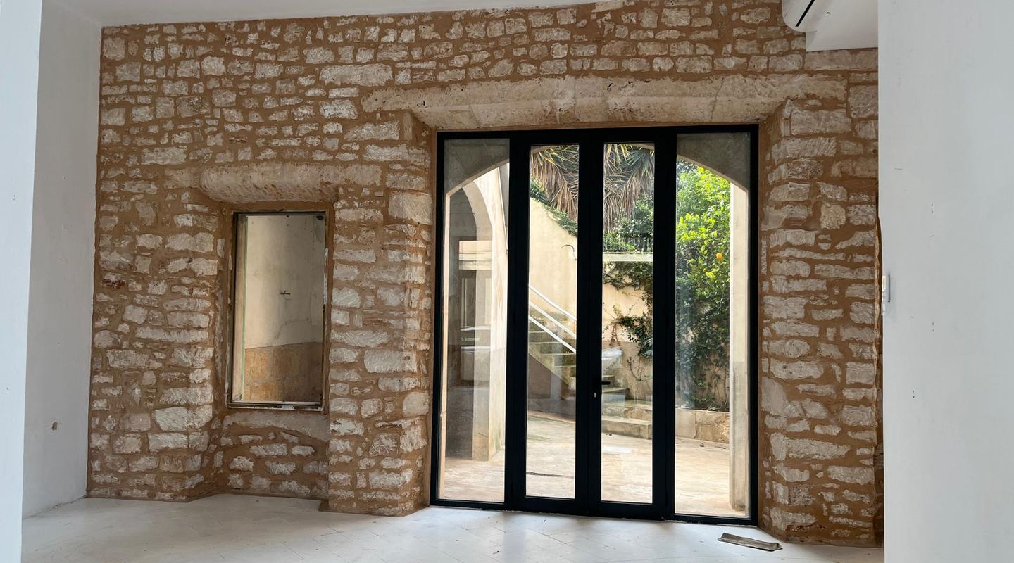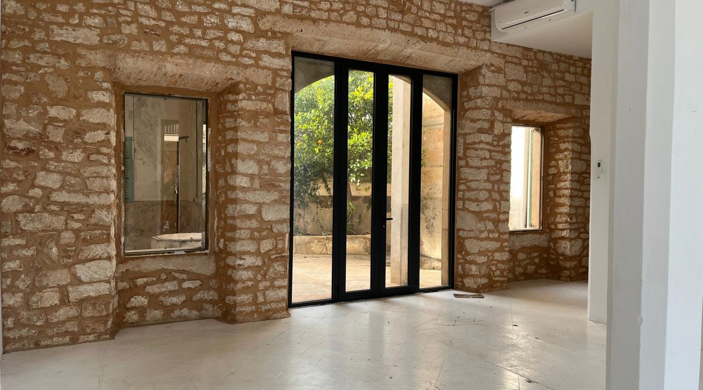 Large shop windows and an immense ceiling height make this a showroom for your business premises or office. Modern windows combined with a natural stone facade and Santanyi stone on the inside perfectly reflect the essence of the city. The restaurant has 64 m² on the ground floor and an exclusive backyard. It also has a 64 m² cellar.