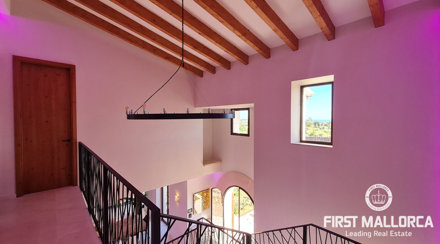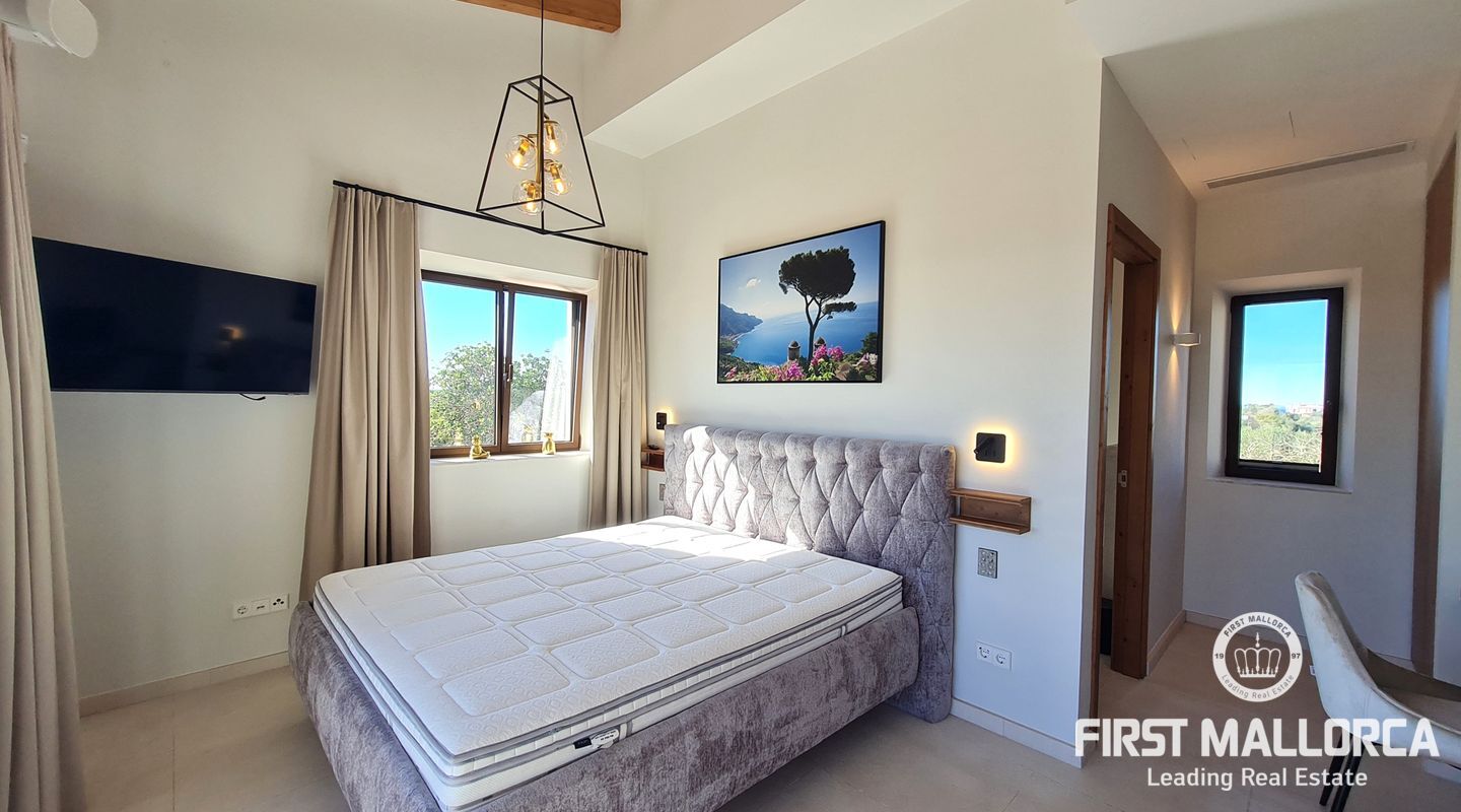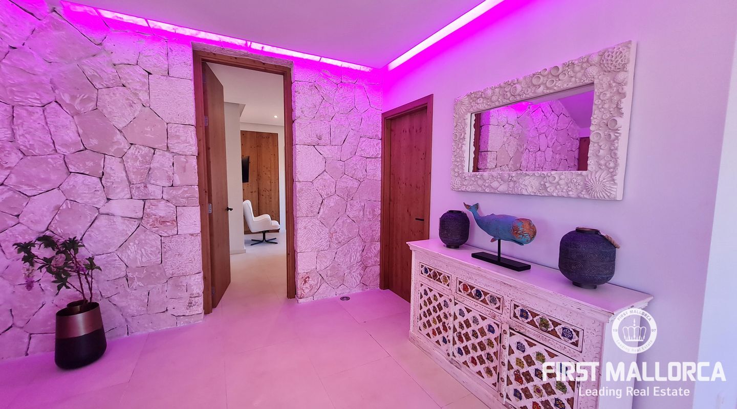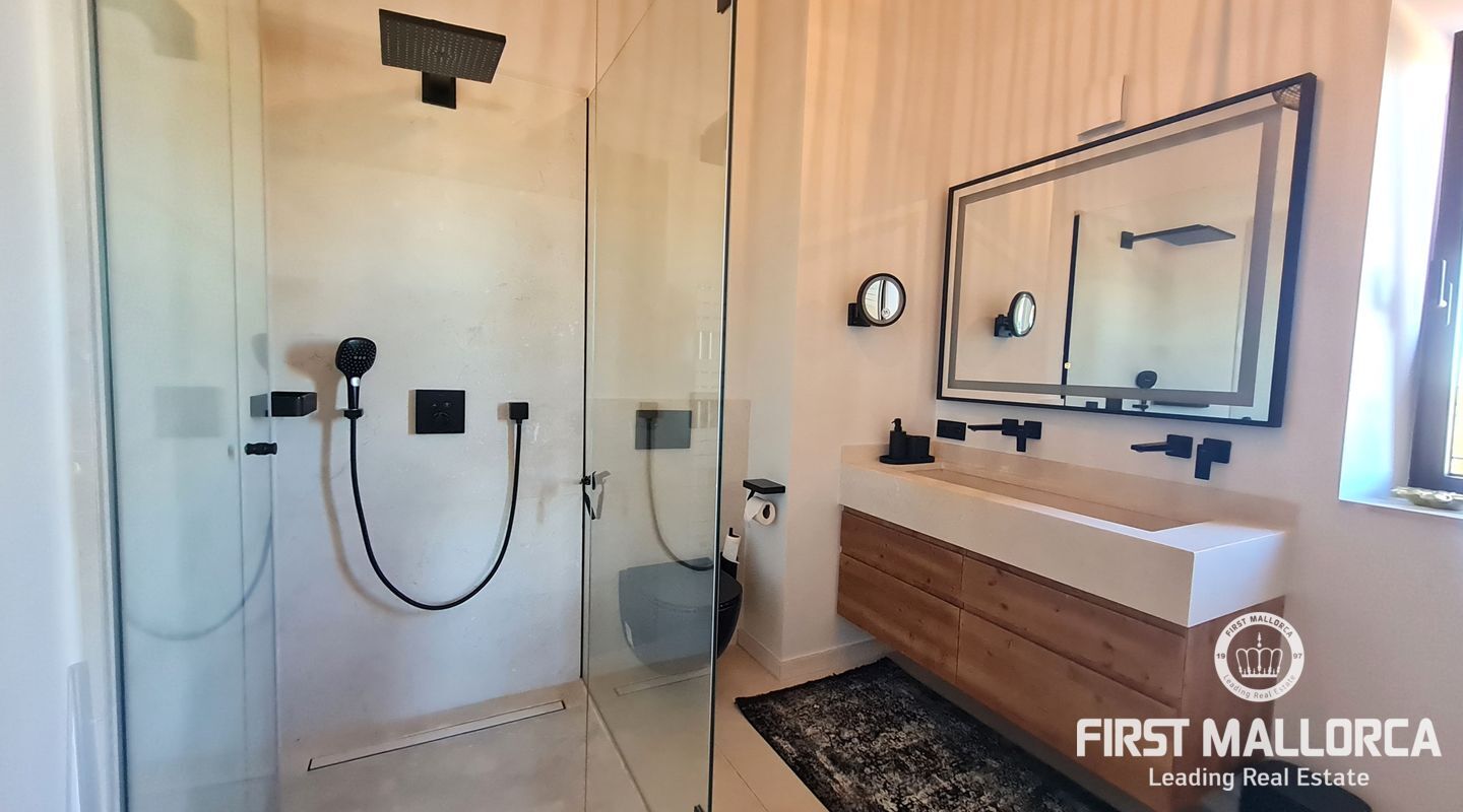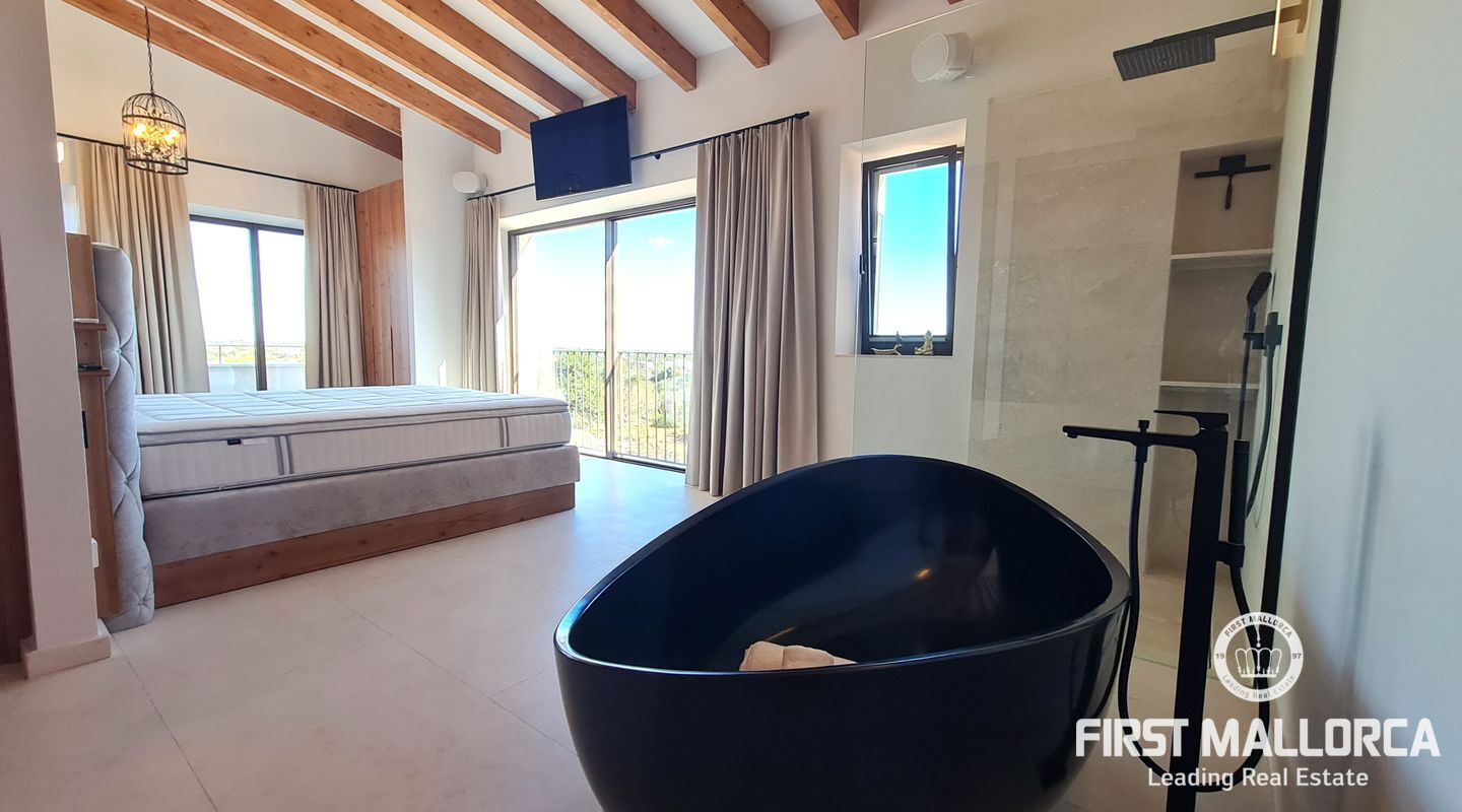 On the upper floor there are another 4 bedrooms, three of them with terrace and a suite with shower and bathtub open to the room and spectacular views of the cliffs of Cala Llombards.