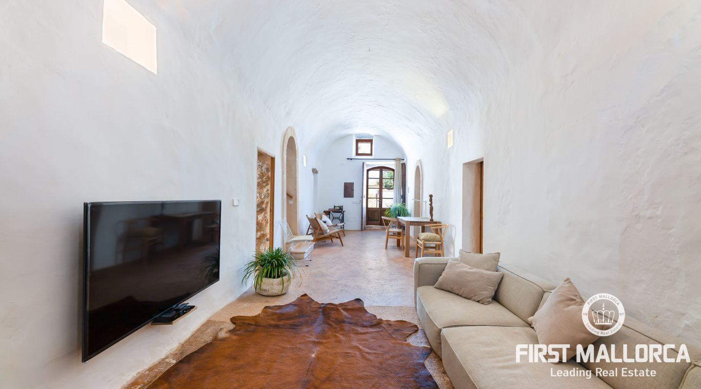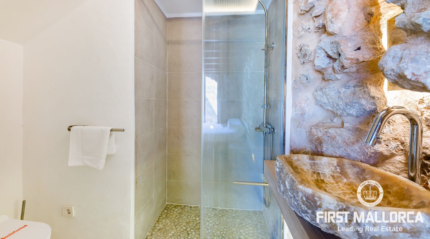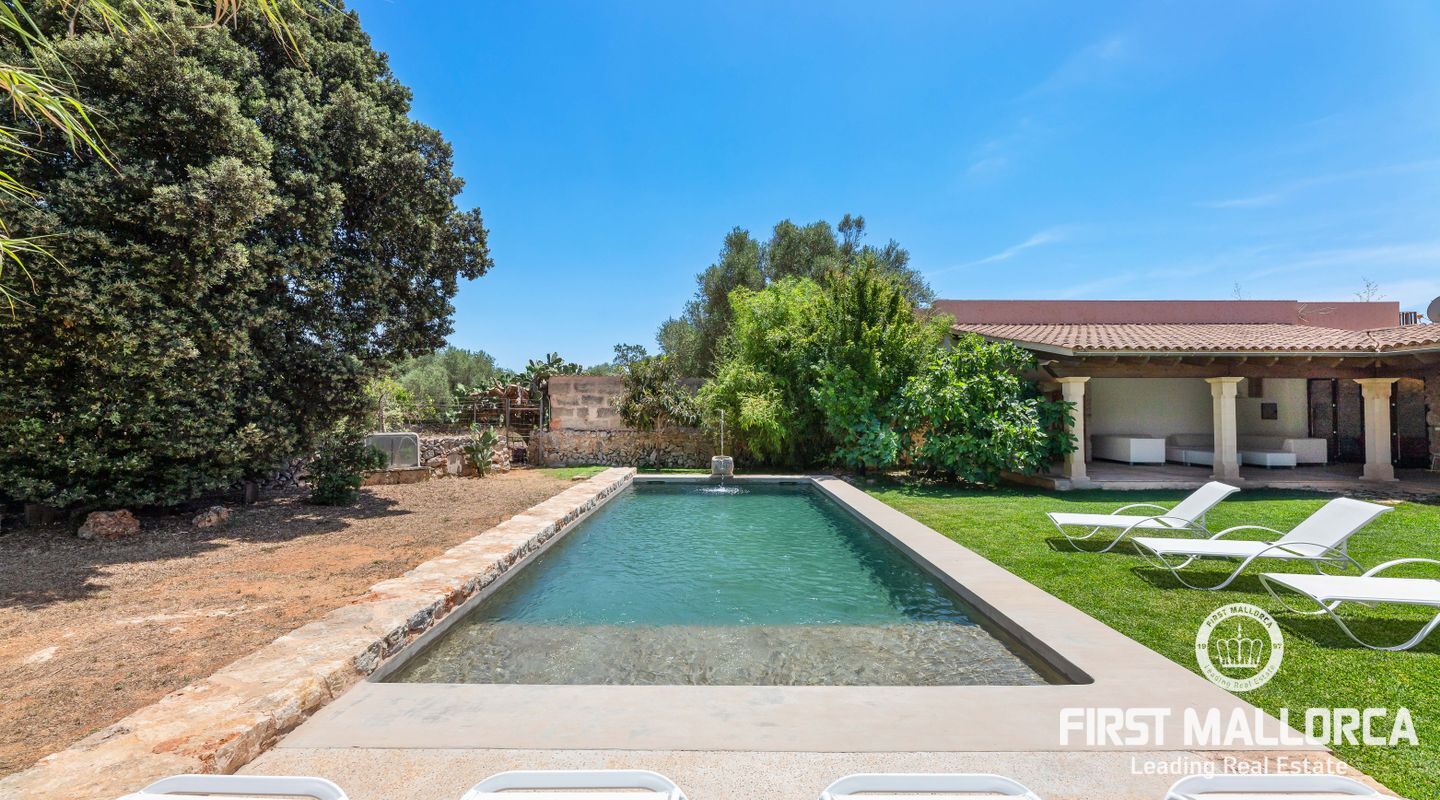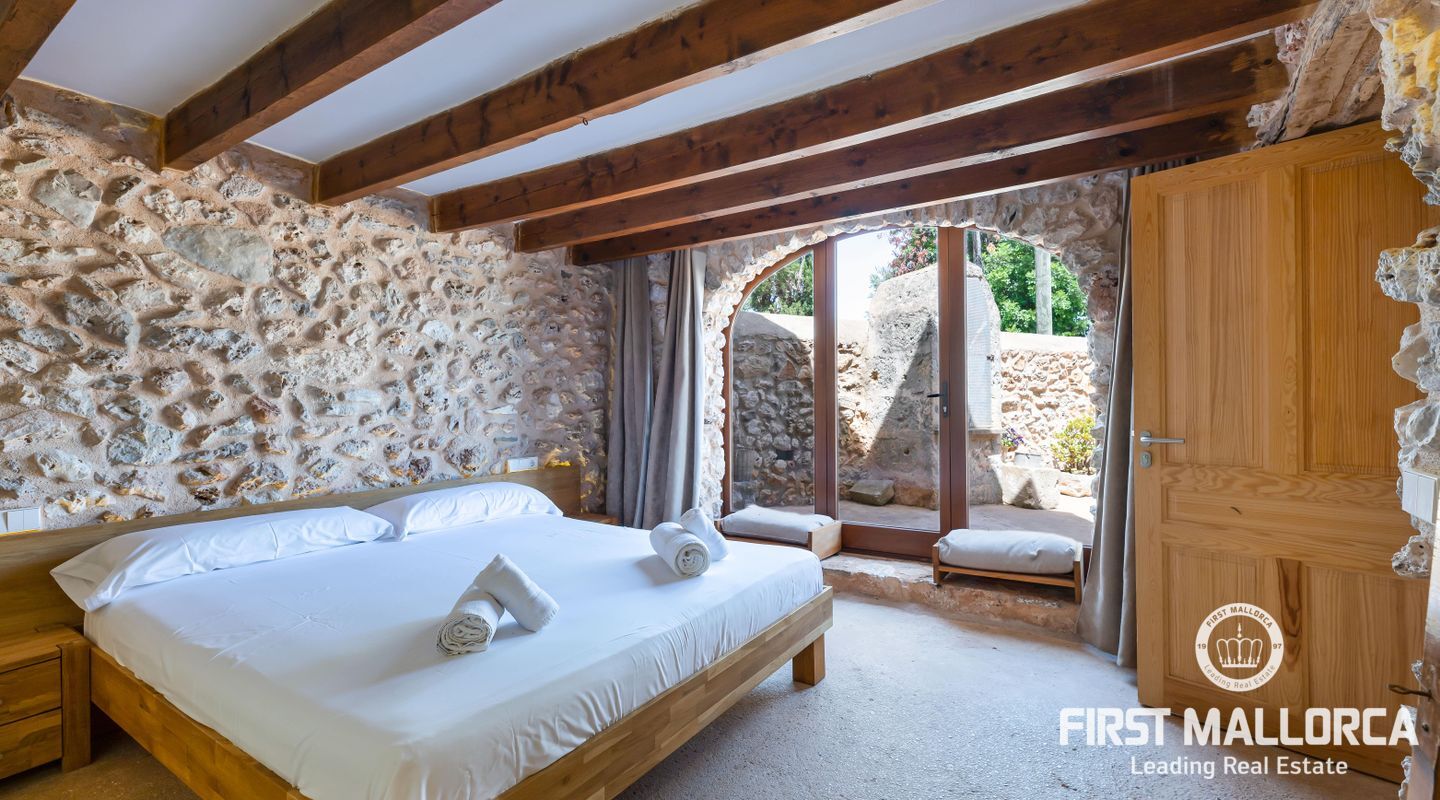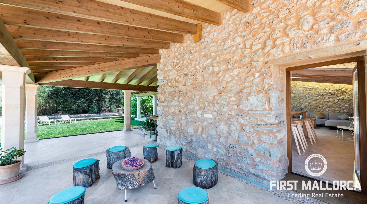 Beautiful villa only 300 m from the centre of Sencelles. The finca is situated in a natural and unique environment. In addition, it has the Majorcan character and a dreamlike style. Through the entrance area you enter the charming living room with natural stone walls and high ceilings. To the left is the spacious dining room with seating for about 12 guests and right next to it is the high quality fully fitted kitchen with cooking island and a chill-out area. From here there is access to the fantastic garden and the various terrace areas. On this floor there are two double bedrooms with bathrooms en suite. Two further double bedrooms, sharing a spacious bathroom, are located on the upper floor of the property.