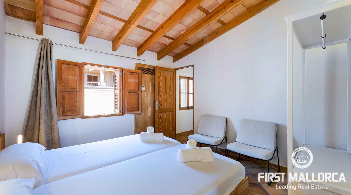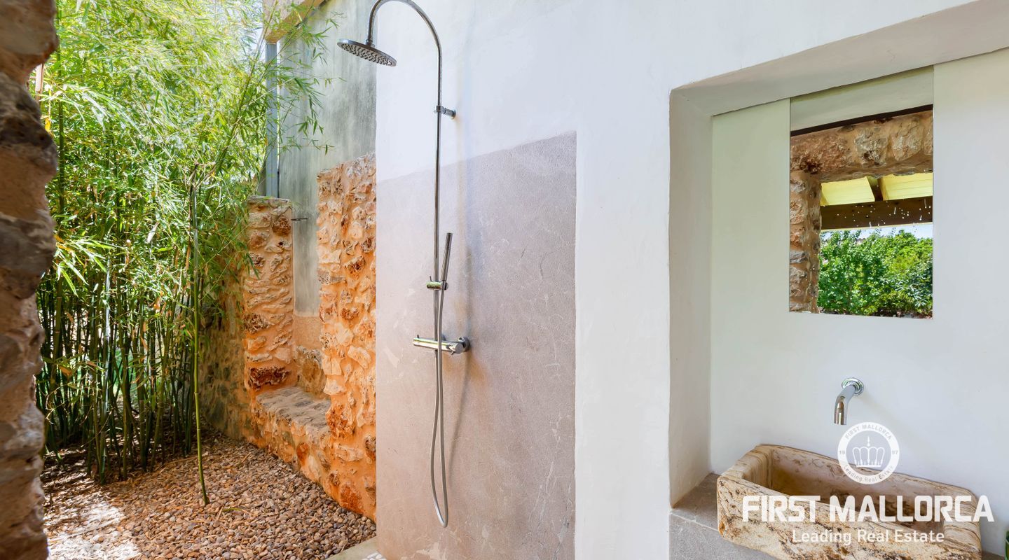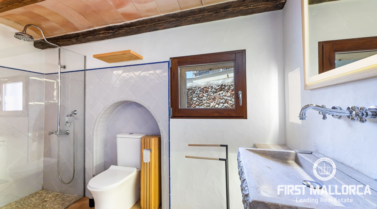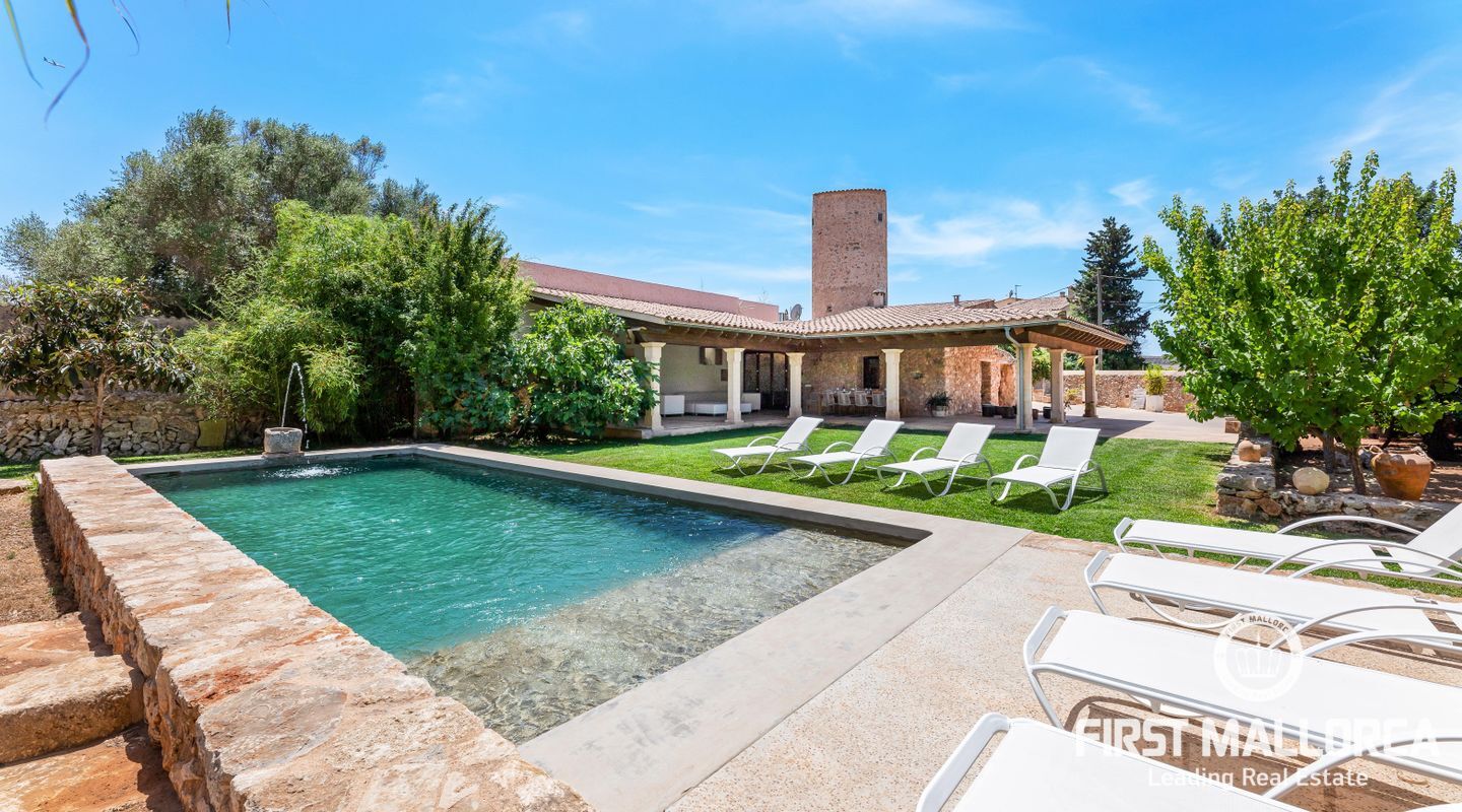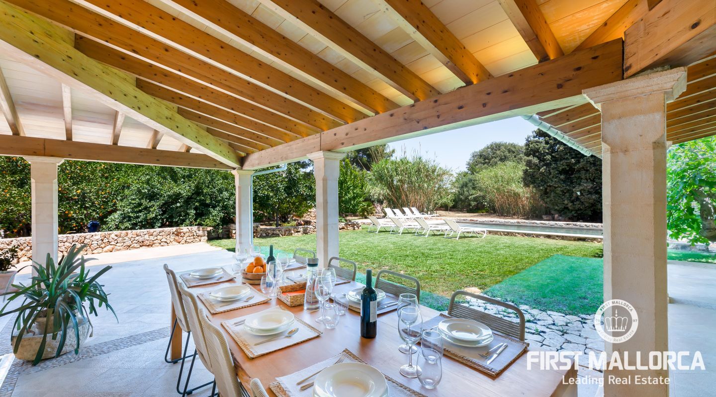Beautiful villa only 300 m from the centre of Sencelles. The finca is situated in a natural and unique environment. In addition, it has the Majorcan character and a dreamlike style. Through the entrance area you enter the charming living room with natural stone walls and high ceilings. To the left is the spacious dining room with seating for about 12 guests and right next to it is the high quality fully fitted kitchen with cooking island and a chill-out area. From here there is access to the fantastic garden and the various terrace areas. On this floor there are two double bedrooms with bathrooms en suite. Two further double bedrooms, sharing a spacious bathroom, are located on the upper floor of the property.