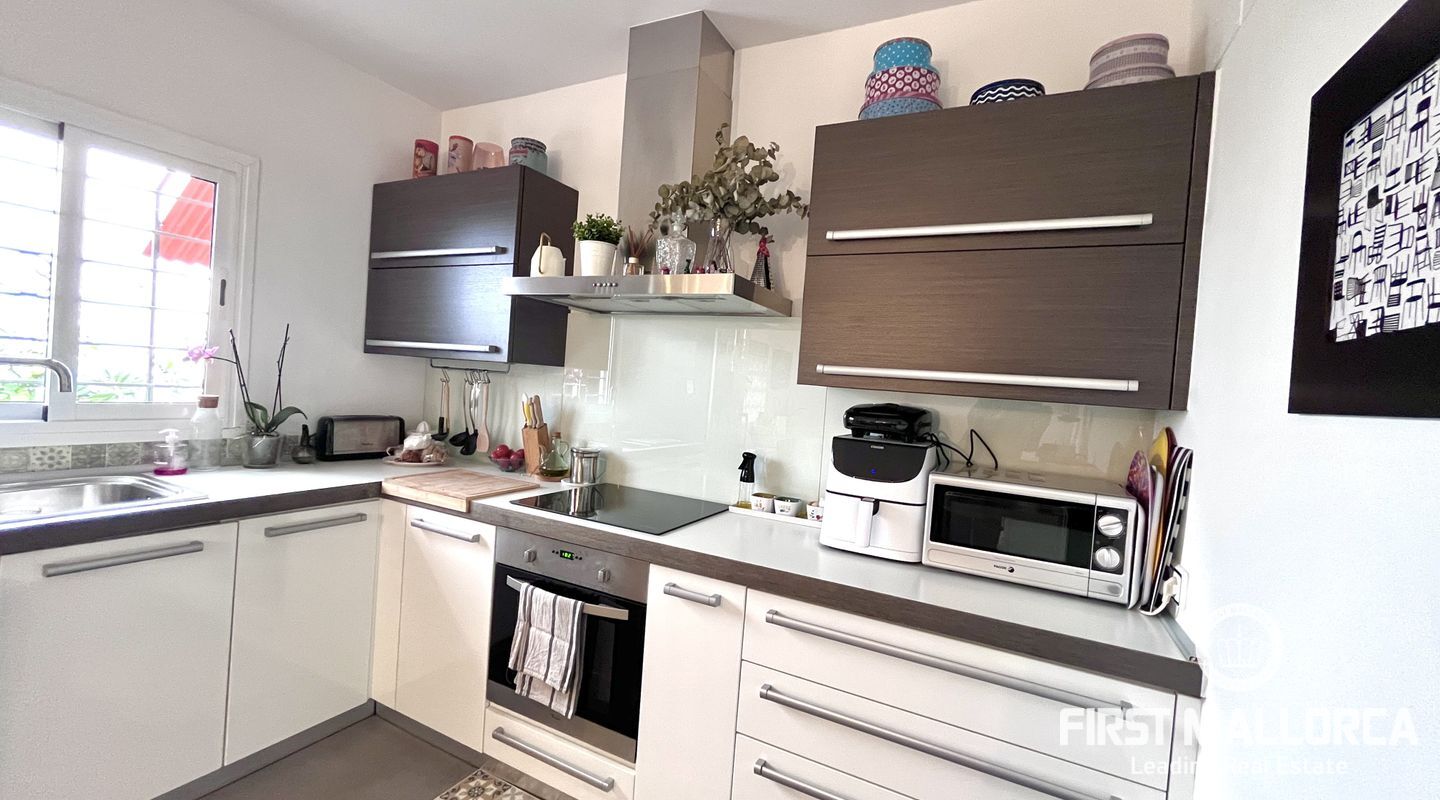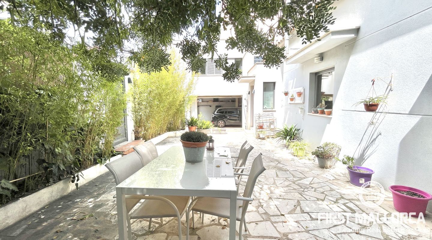 This cozy family house is located on a very quiet street in El Terreno, Palma. The house consists of two floors. The house is available for short-term rental in July, August, and September 2025. Minimum rental period 2 months, maximum 3 months. Electricity, water and electricity costs are included in the rental price. Extra: Deposit of 1 month, plus agency fees. On the ground floor, there is a spacious living room, a bathroom with a bathtub, a separate kitchen with a dining area, and a utility room. On the first floor, there are three bedrooms and a bathroom with a shower. The house is equipped with air conditioning in the living room, kitchen, two bedrooms, and PVC double-glazed windows. There is a large covered parking space for 2 cars with an automatic gate. The private courtyard with trees which are giving generous shade will be a perfect place to relax on sunny summer days and enjoy the good weather of Majorca. The house will be a perfect place to spend a few months in Mallorca enjoying the calmness of this place and at the same time living in the city with all daily services nearby such as restaurants, bars, banks, pharmacies, and the cultural sights of Palma de Mallorca.