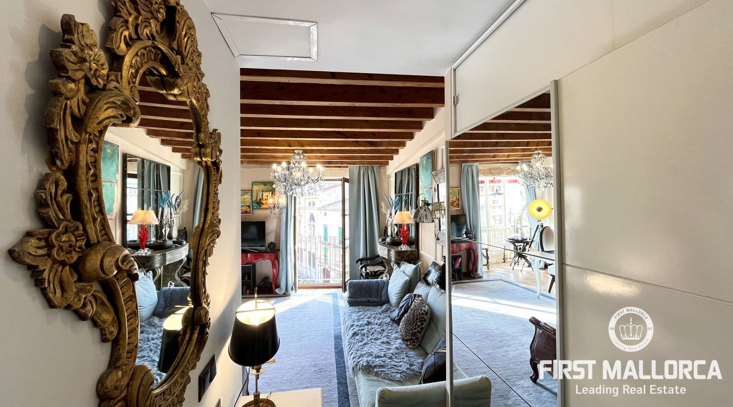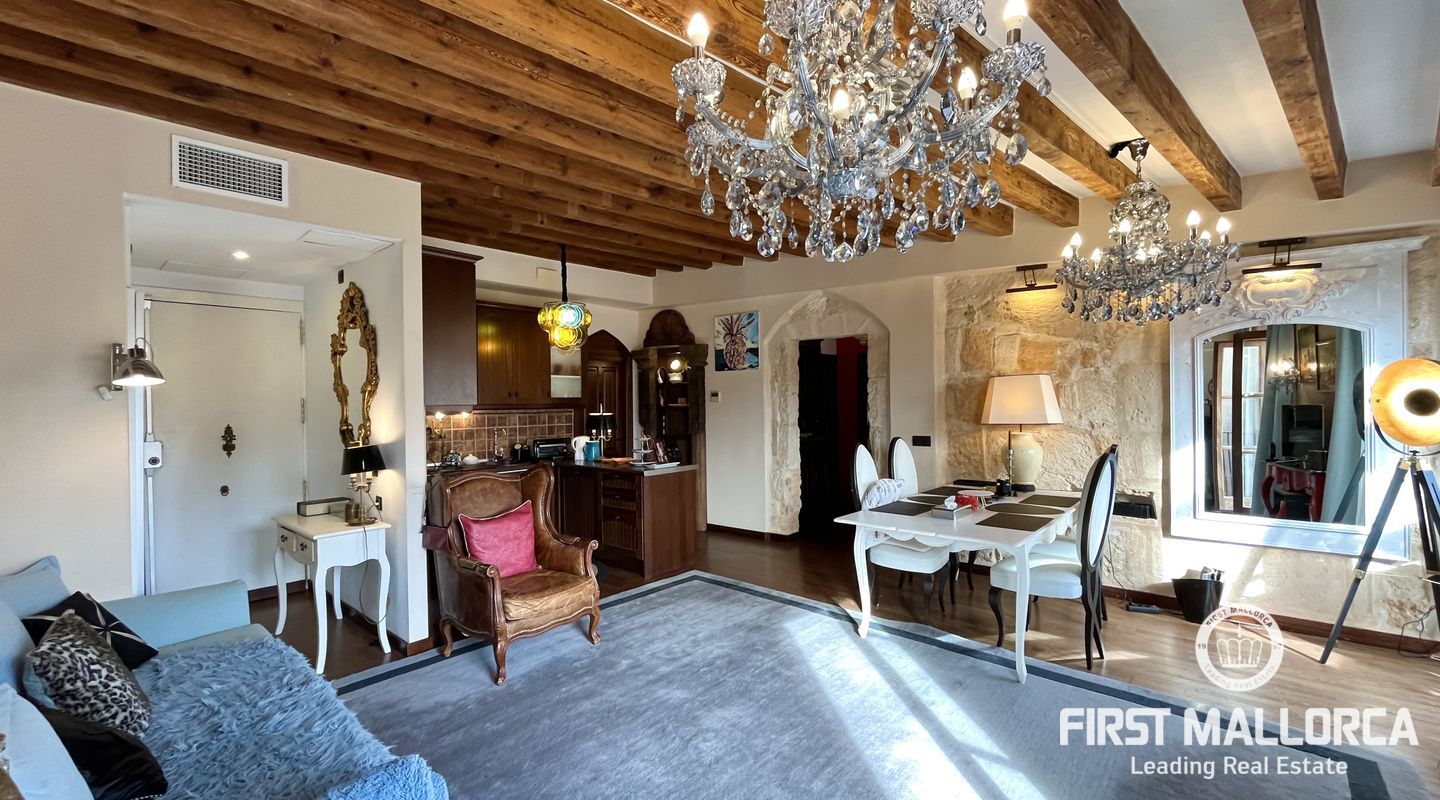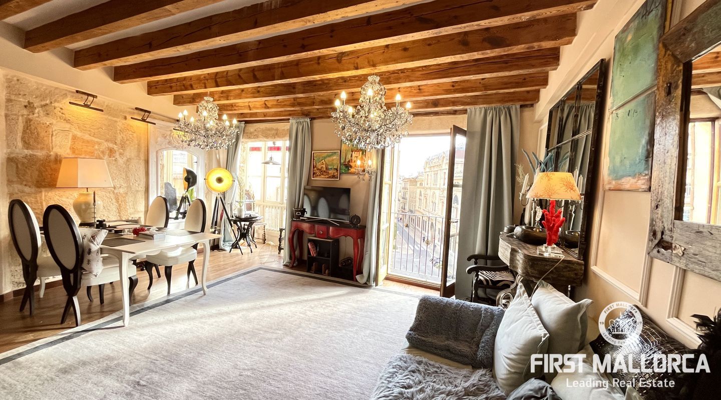Short term rental. Sunny, south-east facing. The elegant property consists of entrance hall, living dining room and open plan kitchen, open views to the old town square of Palma. One double bedroom, one large bathroom. The charm of the flat is a roof terrace overlooking the old town. It consists of sunbathing area with sun loungers, bar and dining area, second kitchen with washing machine and small storage room. Everything ready to start living your magnificent experience in the heart of Palma! In 15 minutes walking distance to the beach of Can Pere Antoni, close to all services. For more information and availability, do not hesitate to contact our agents. The price quoted may vary depending on the chosen period of stay.