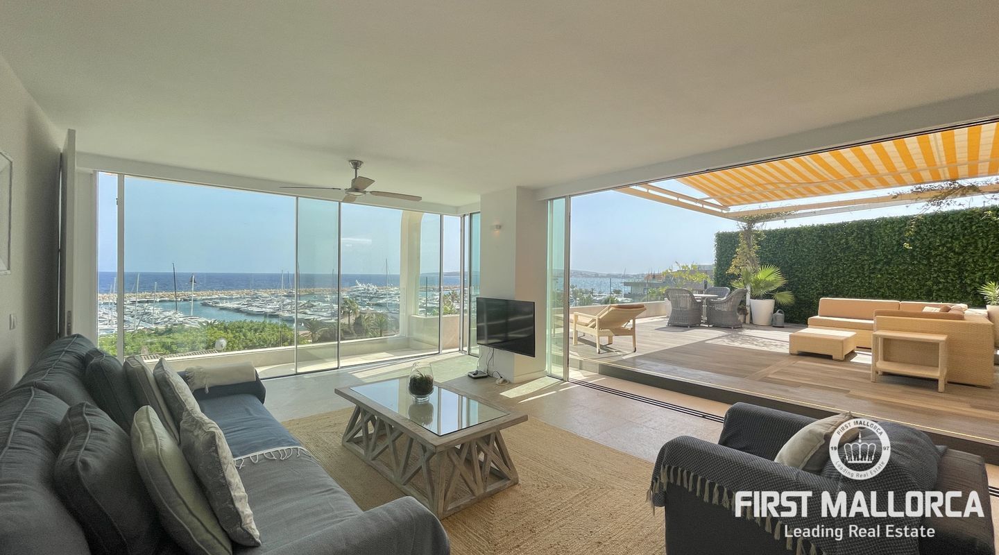 This bright 2 bedrooms 2 bathrooms stylishly renovated apartment boasting enviable southerly views across the Portals marina and the sea beyond invites you to enjoy the true Mallorcan lifestyle. You can relax and entertain friends on its vast outdoor terrace complete with a summer kitchen, whilst admiring the incredible views, or you can walk to the beach and all the sport and leisure amenities of Portals on your doorstep. Puerto Portals is an exclusive and bustling marina five minutes drive from the capital city of Palma de Mallorca and 15 minutes from the International Airport.