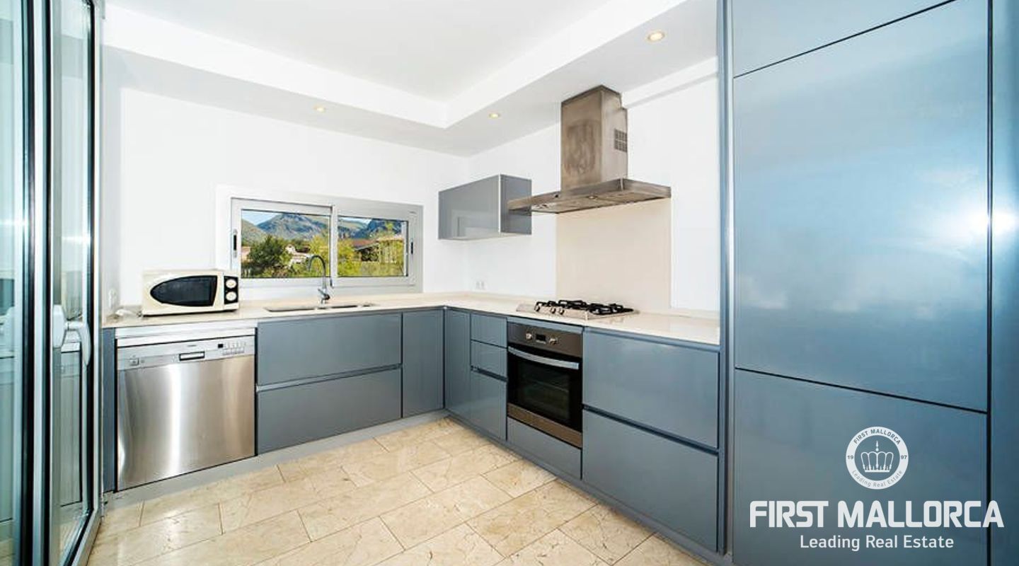 On entering the house, a hallway leads to the main room, where the living-dining room is located. It is also very luminous, as it is surrounded by large windows from which you can see the sea and appreciate the beautiful exterior of the house. It is also very cosy and has a very homely style. Adjacent is the separate, modern, high quality and fully equipped kitchen. There are four bedrooms, three of them double and one with bunk beds, three bathrooms and a guest toilet.