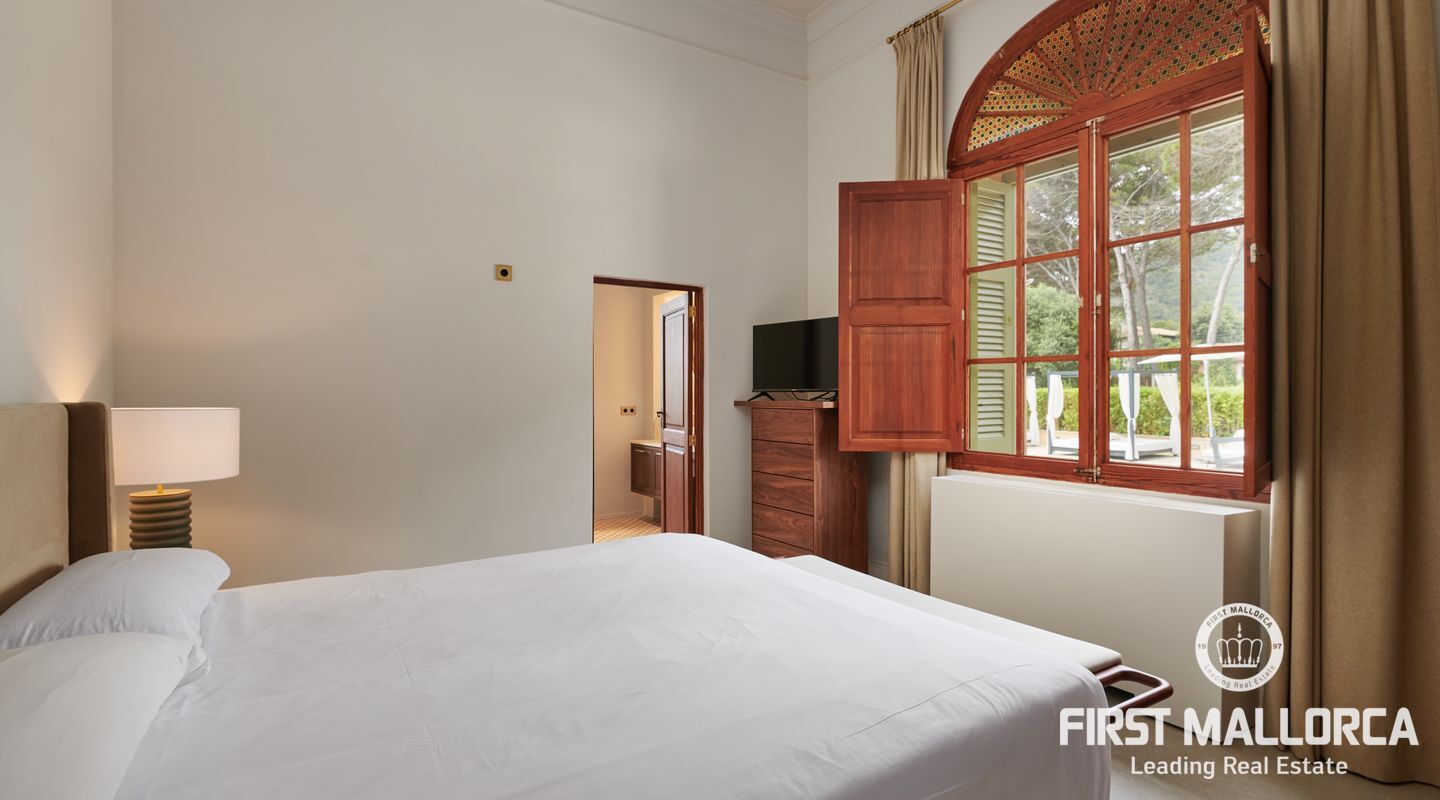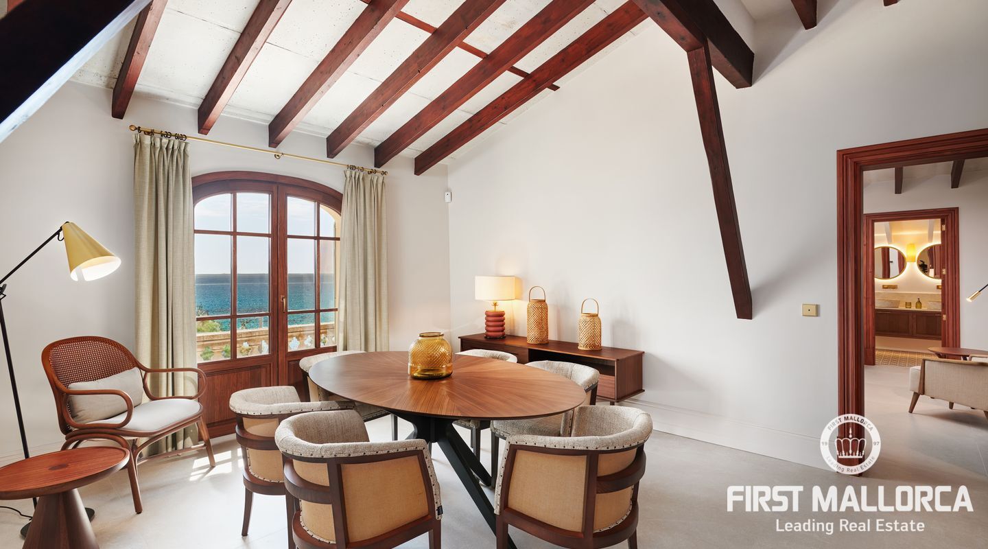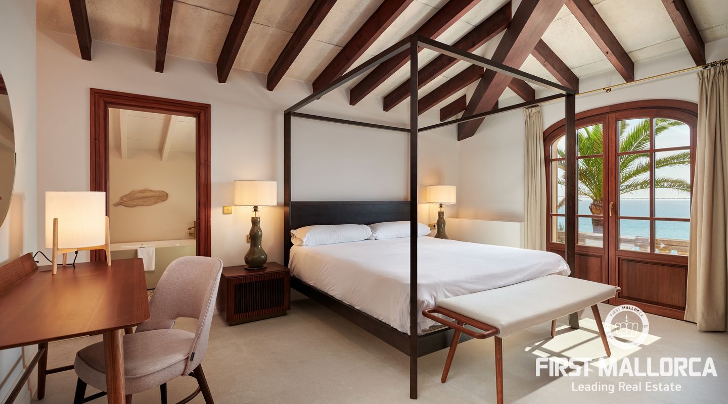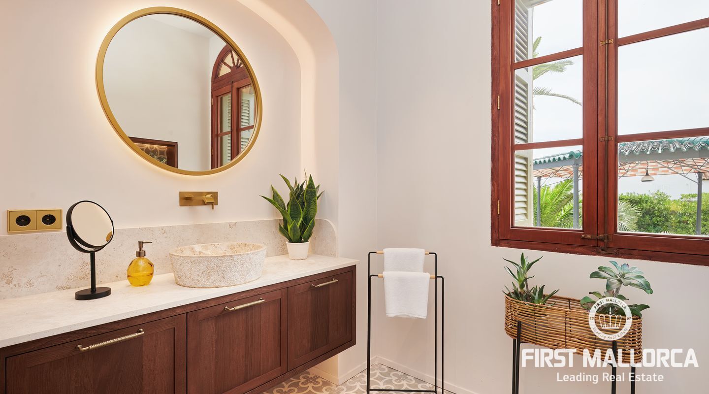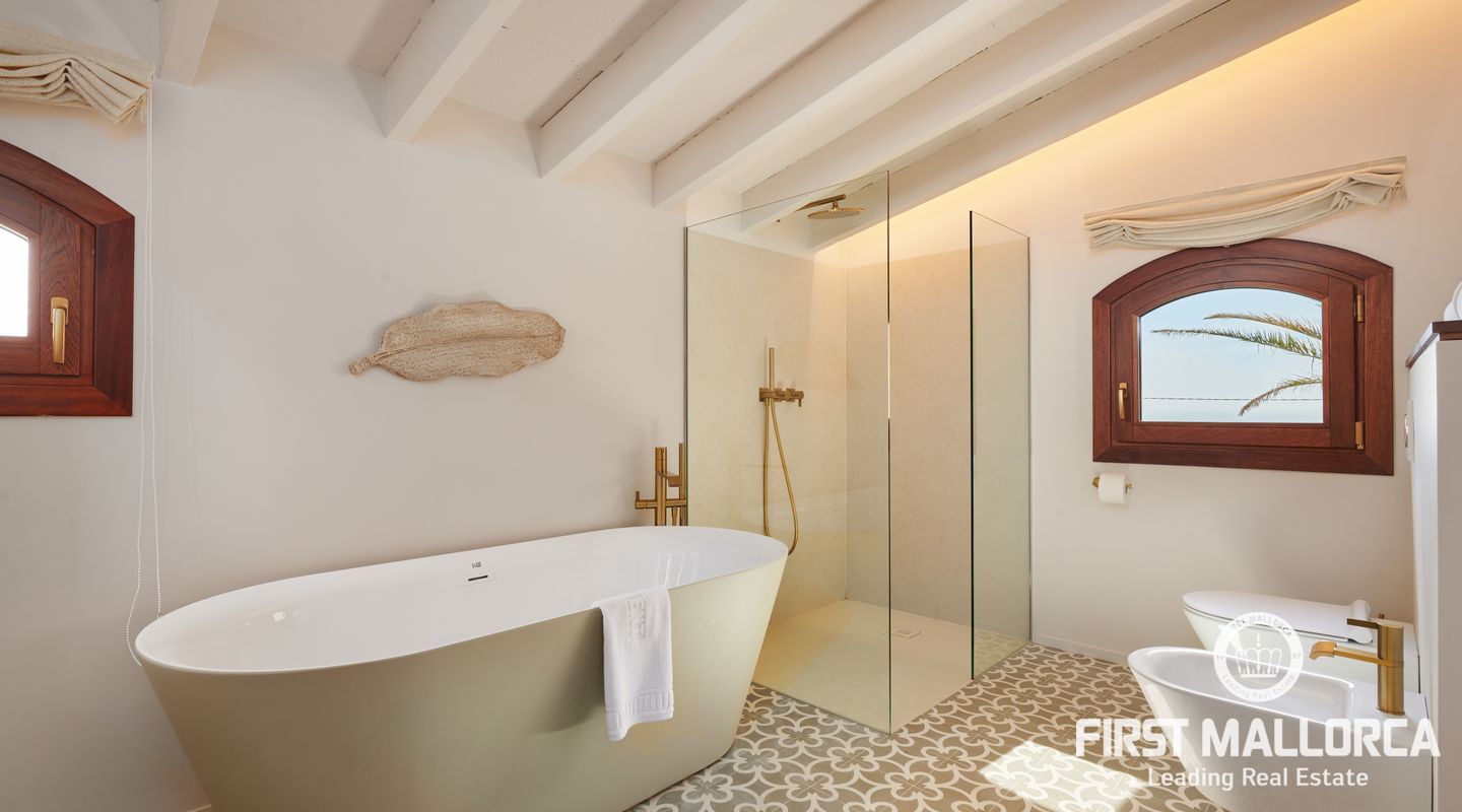 This luxury villa is located in a privileged seafront location just a few meters from Son Moll beach in Cala Ratjada. The villa has been completely renovated this year, keeping the original colonial style, but equipped with high tech and modern comfort and luxury. This stunning villa offers 6 double bedrooms all with ensuite bathrooms, The tower offers an idyllic atmosphere, has one of the best views and is also ensuite, each room with individual reversible air conditioning, Smart TV, a modern Siemens and SMEG equipped Fitted kitchen with integrated coffee machine, a large work island open to the traditional yet modern dining area. The property is surrounded by a beautiful garden with pine trees, palm trees, lawns, terraces with sun beds and Balinese beds. It also offers a gym equipped with the latest equipment, a BBQ area and of course a large pool. Here you can enjoy the sun, the sea and the Mediterranean weather on the seafront. The incomparable view of the Mediterranean offers a unique atmosphere of peace and relaxation, ideal for unforgettable moments. All amenities are within walking distance, the beach is only 500m away, there is a golf course and plenty of bars and restaurants. Do not hesitate and contact us for more information.