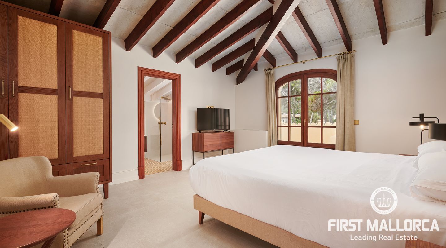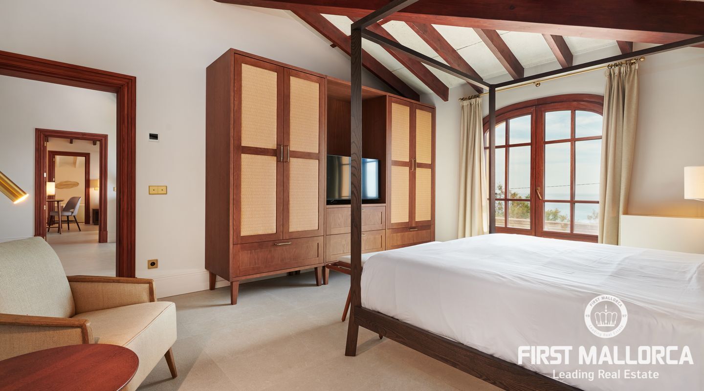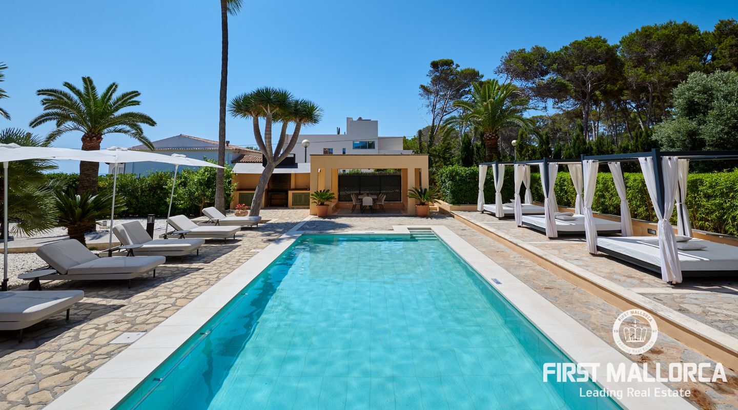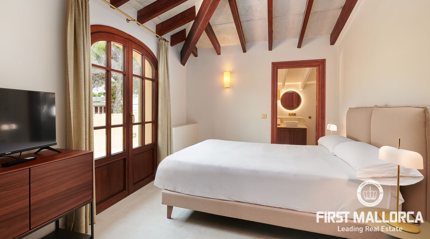 This luxury villa is located in a privileged seafront location just a few meters from Son Moll beach in Cala Ratjada. The villa has been completely renovated this year, keeping the original colonial style, but equipped with high tech and modern comfort and luxury. This stunning villa offers 6 double bedrooms all with ensuite bathrooms, The tower offers an idyllic atmosphere, has one of the best views and is also ensuite, each room with individual reversible air conditioning, Smart TV, a modern Siemens and SMEG equipped Fitted kitchen with integrated coffee machine, a large work island open to the traditional yet modern dining area. The property is surrounded by a beautiful garden with pine trees, palm trees, lawns, terraces with sun beds and Balinese beds. It also offers a gym equipped with the latest equipment, a BBQ area and of course a large pool. Here you can enjoy the sun, the sea and the Mediterranean weather on the seafront. The incomparable view of the Mediterranean offers a unique atmosphere of peace and relaxation, ideal for unforgettable moments. All amenities are within walking distance, the beach is only 500m away, there is a golf course and plenty of bars and restaurants. Do not hesitate and contact us for more information.