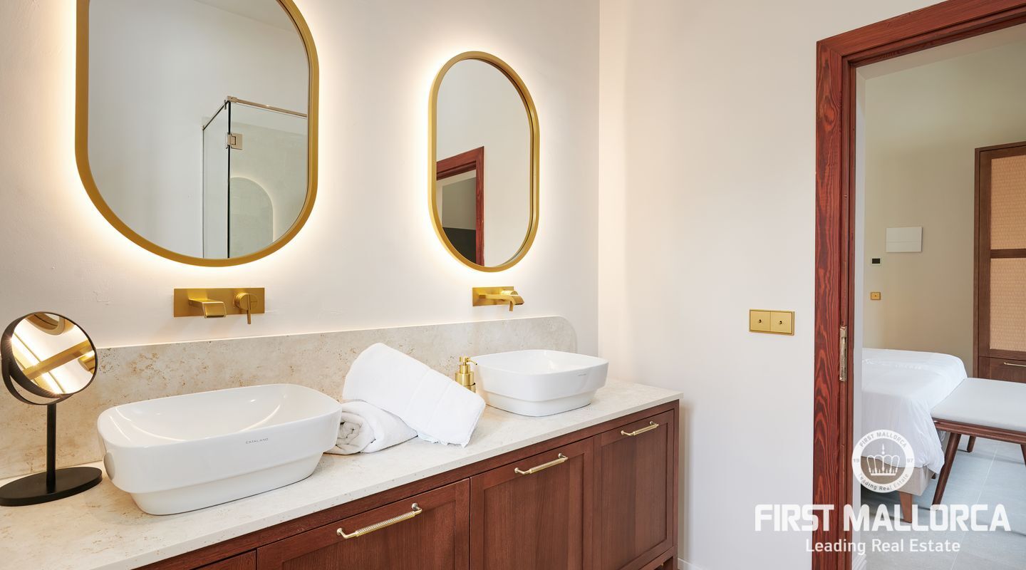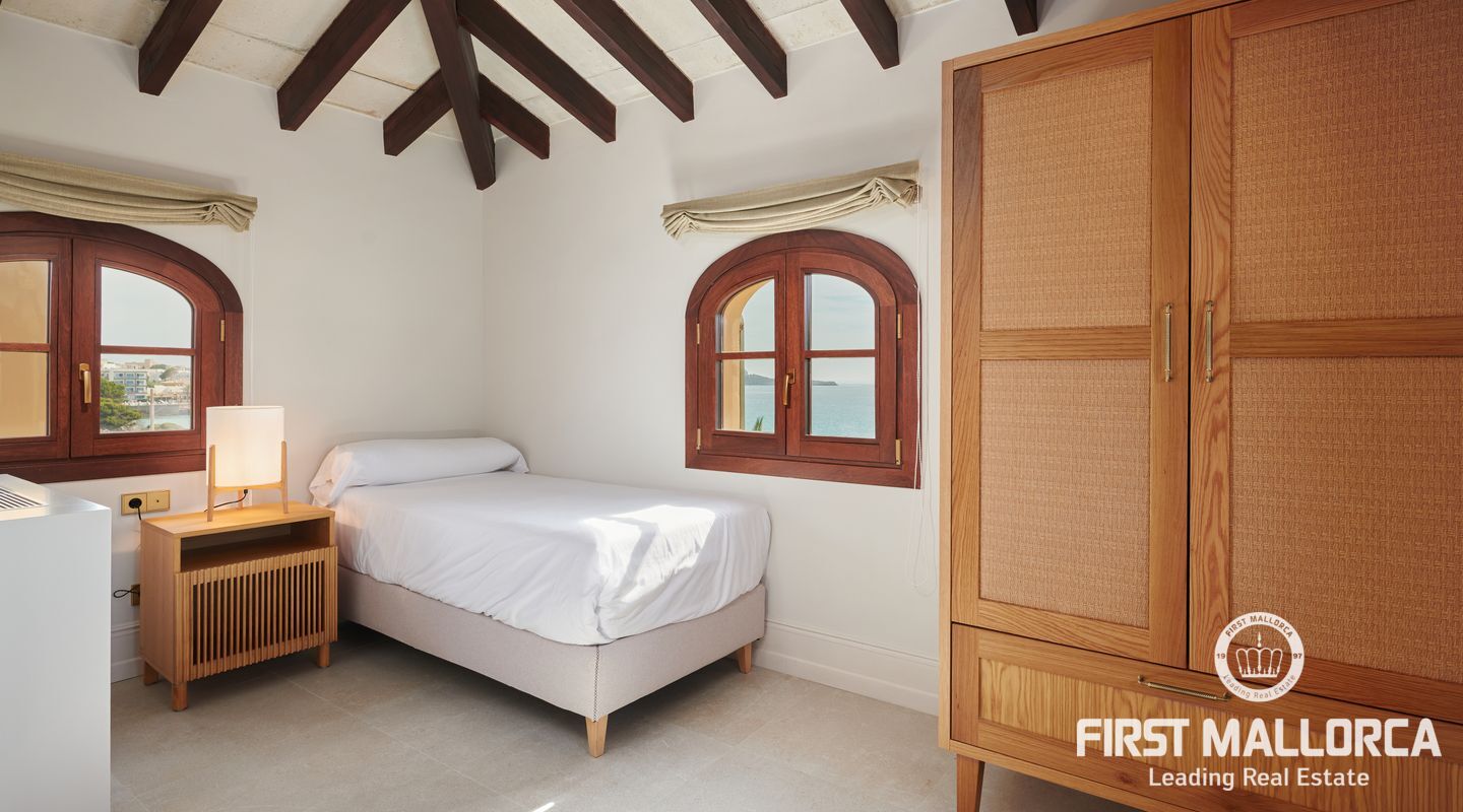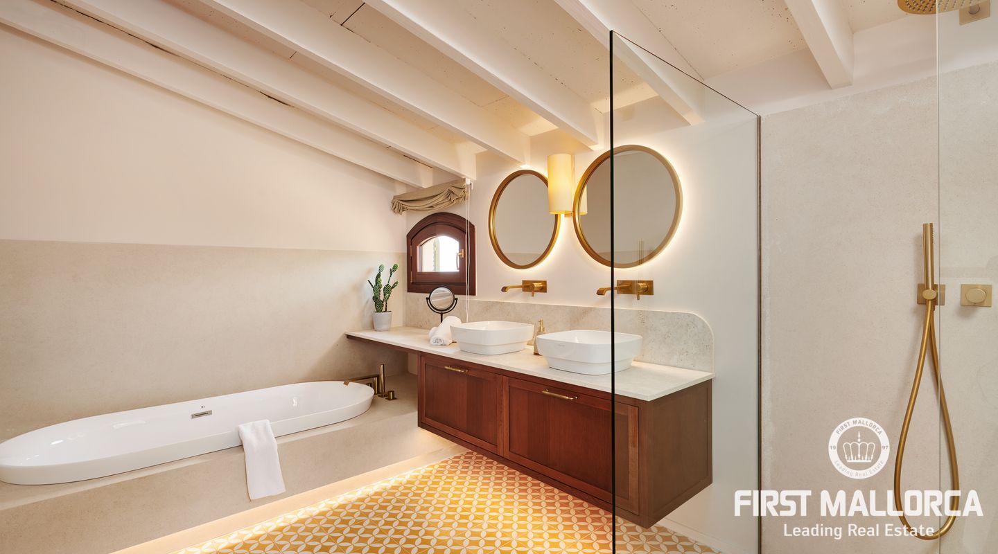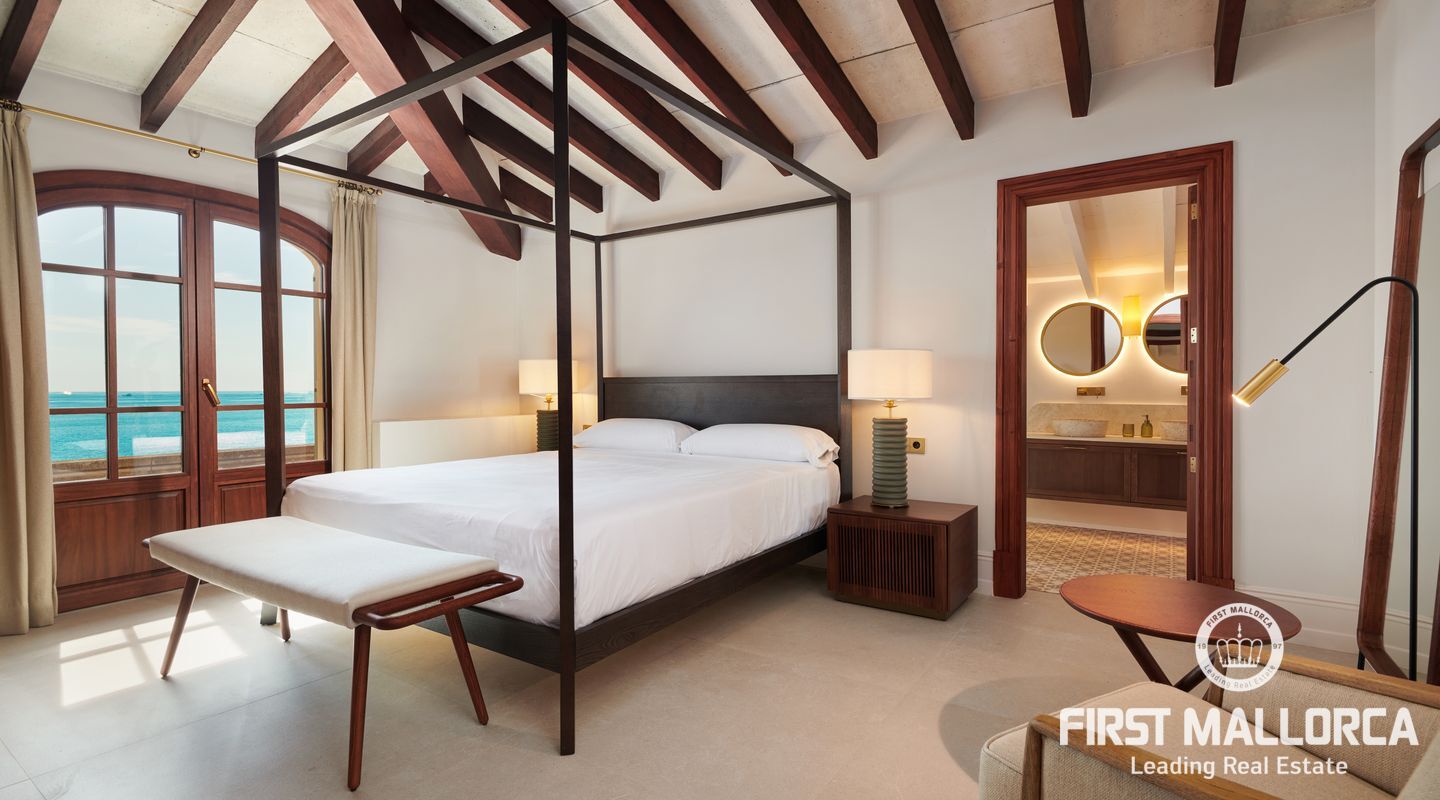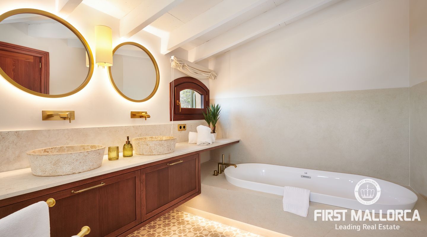 This luxury villa is located in a privileged seafront location just a few meters from Son Moll beach in Cala Ratjada. The villa has been completely renovated this year, keeping the original colonial style, but equipped with high tech and modern comfort and luxury. This stunning villa offers 6 double bedrooms all with ensuite bathrooms, The tower offers an idyllic atmosphere, has one of the best views and is also ensuite, each room with individual reversible air conditioning, Smart TV, a modern Siemens and SMEG equipped Fitted kitchen with integrated coffee machine, a large work island open to the traditional yet modern dining area. The property is surrounded by a beautiful garden with pine trees, palm trees, lawns, terraces with sun beds and Balinese beds. It also offers a gym equipped with the latest equipment, a BBQ area and of course a large pool. Here you can enjoy the sun, the sea and the Mediterranean weather on the seafront. The incomparable view of the Mediterranean offers a unique atmosphere of peace and relaxation, ideal for unforgettable moments. All amenities are within walking distance, the beach is only 500m away, there is a golf course and plenty of bars and restaurants. Do not hesitate and contact us for more information.