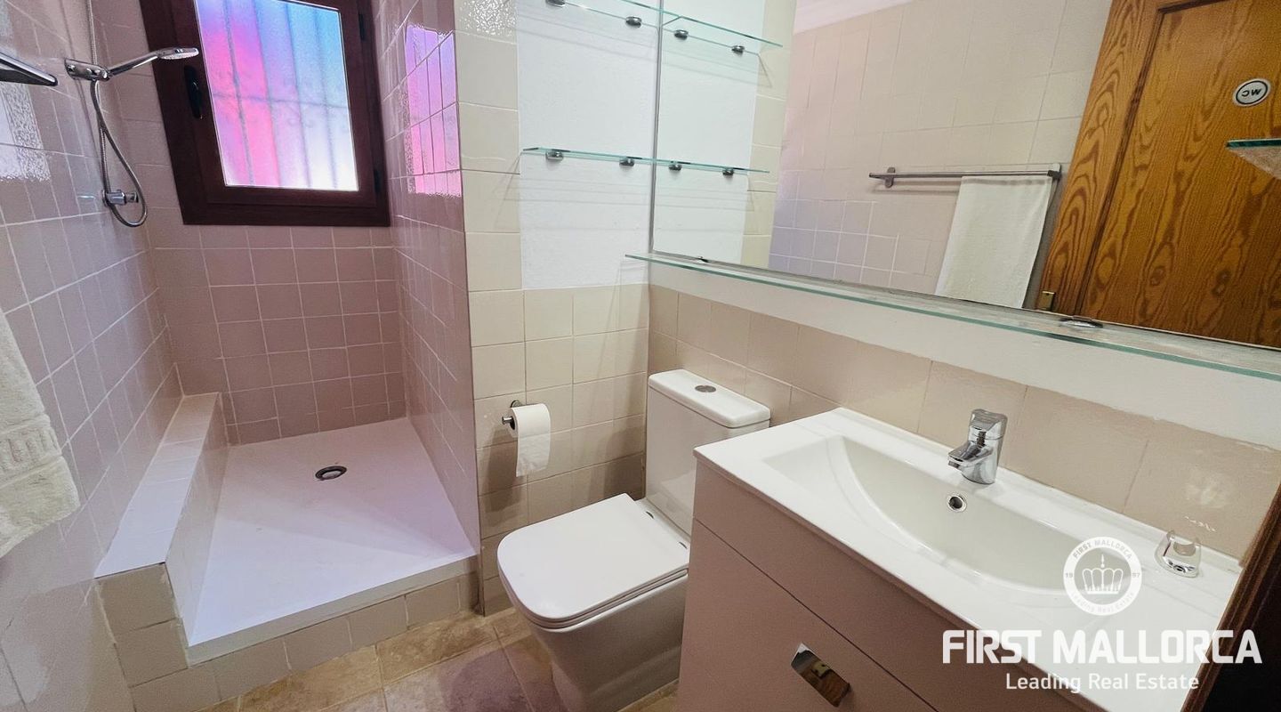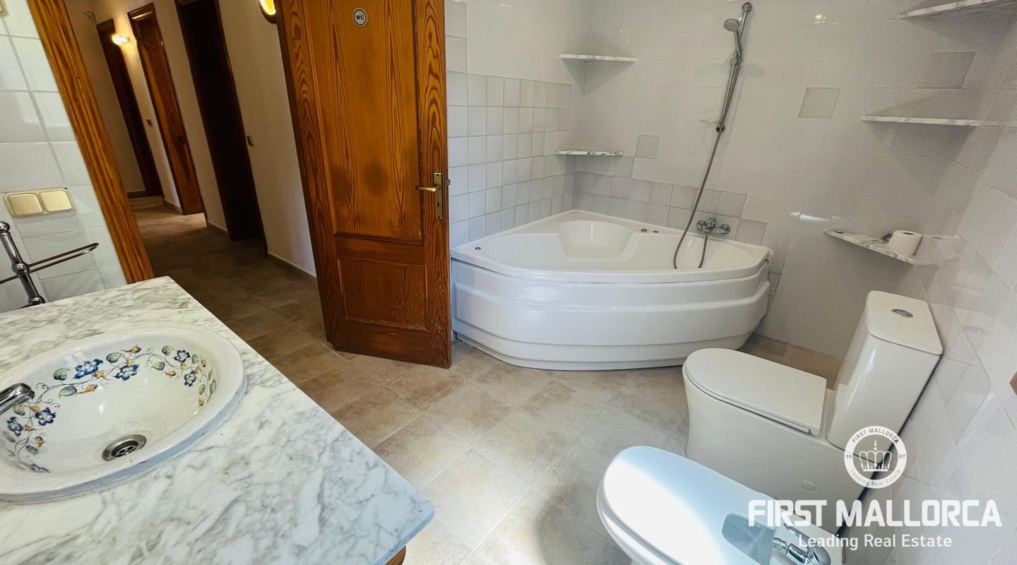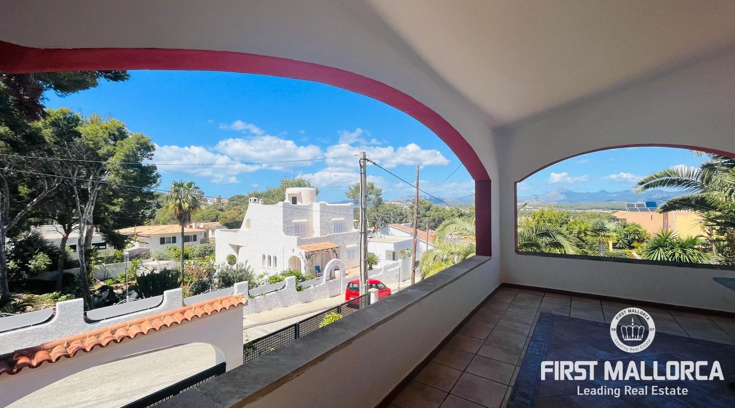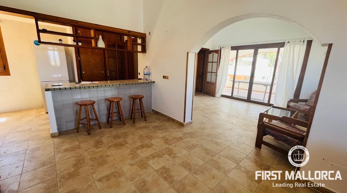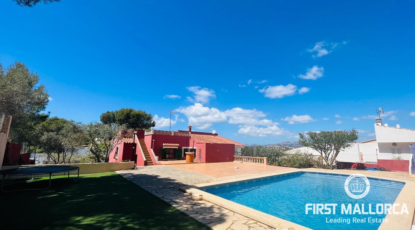 Family villa close to the sea enjoying a very quiet location and only 3 minutes by car to Port Adriano, the beach and local shops. The property is constructed on a plot of 1.000 m2 with one level of 140 m2 constructed. Entry via a few steps into the hallway, leading to a living room with a fireplace, an adjacent dining area and a covered terrace enjoying green views. In addition there are 3 bedrooms and 2 bathrooms, a kitchen with a rear access leading to the swimming pool area and the sunbathing terraces. Further features include: a fireplace, a large garage and storage underneath the villa, a pool shower, a barbecue area and a level lawn area with artificial grass. Only 2 minutes stroll from the villa is the coastline where you can walk across to Portals Vells so ideal for sporty people and dog owners.