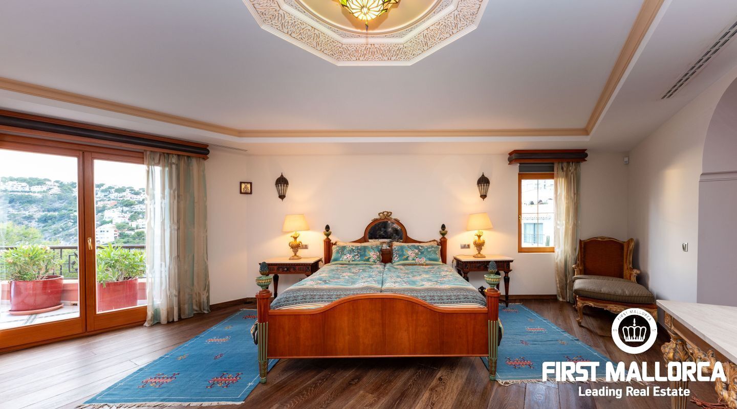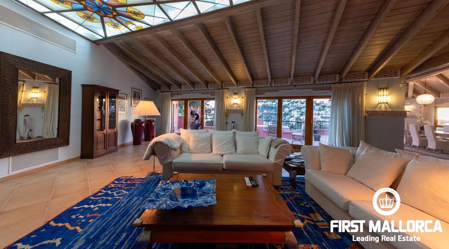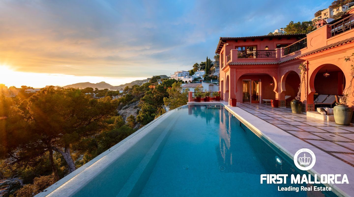 This front line villa offers breathtaking views and sunsets in Port Andratx. The panoramic views offer views of La Mola and the island Dragonera. Well located, the villa is a 30 minute drive from Palma airport and a short stroll to the harbour full of restaurants and boutiques. Direct access to the sea and other features such as a garage for five cars, underfloor heating, saunas, fitness room make this villa an ideal property for holidays and rounds in one of the most prestigious locations on the island. A private yacht (12 meters long) is included in the rental price. Please contact us for more information.