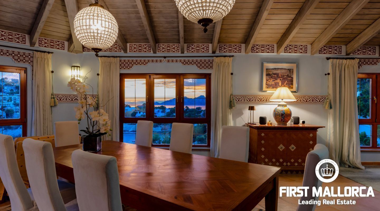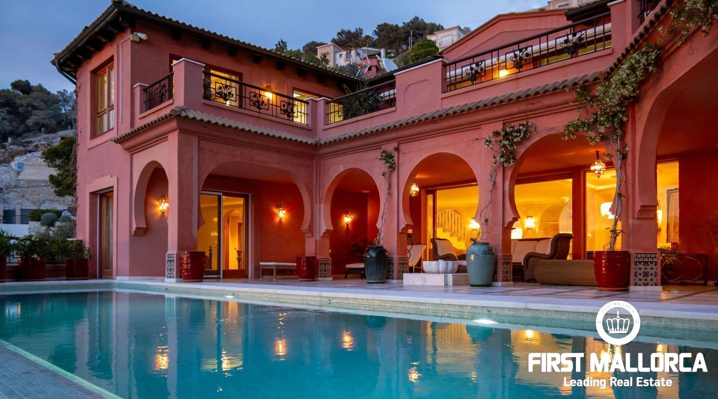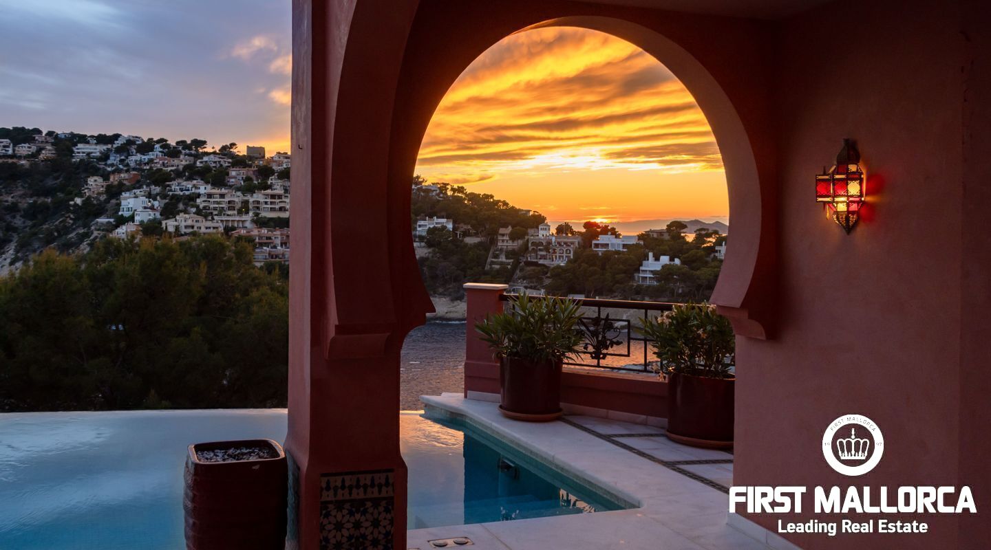 This front line villa offers breathtaking views and sunsets in Port Andratx. The panoramic views offer views of La Mola and the island Dragonera. Well located, the villa is a 30 minute drive from Palma airport and a short stroll to the harbour full of restaurants and boutiques. Direct access to the sea and other features such as a garage for five cars, underfloor heating, saunas, fitness room make this villa an ideal property for holidays and rounds in one of the most prestigious locations on the island. A private yacht (12 meters long) is included in the rental price. Please contact us for more information.