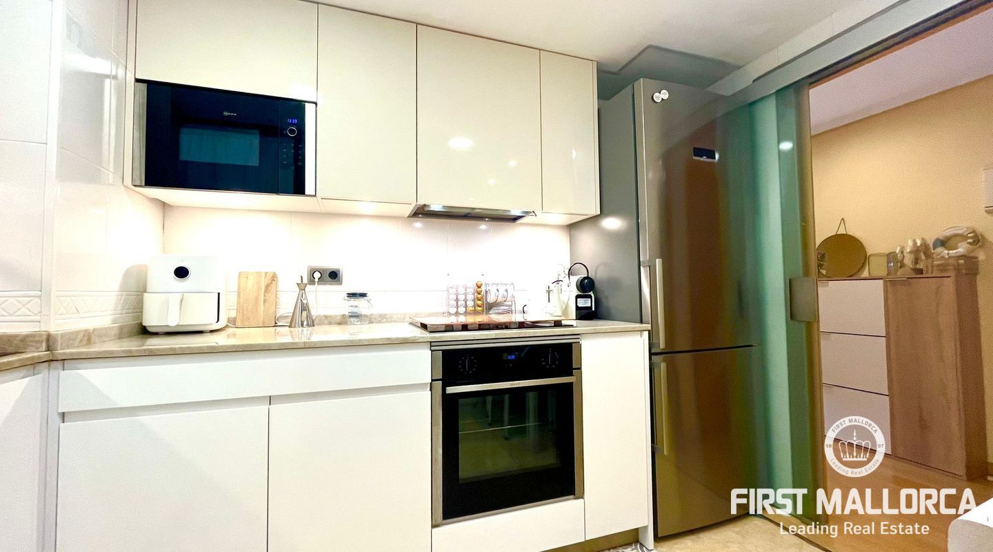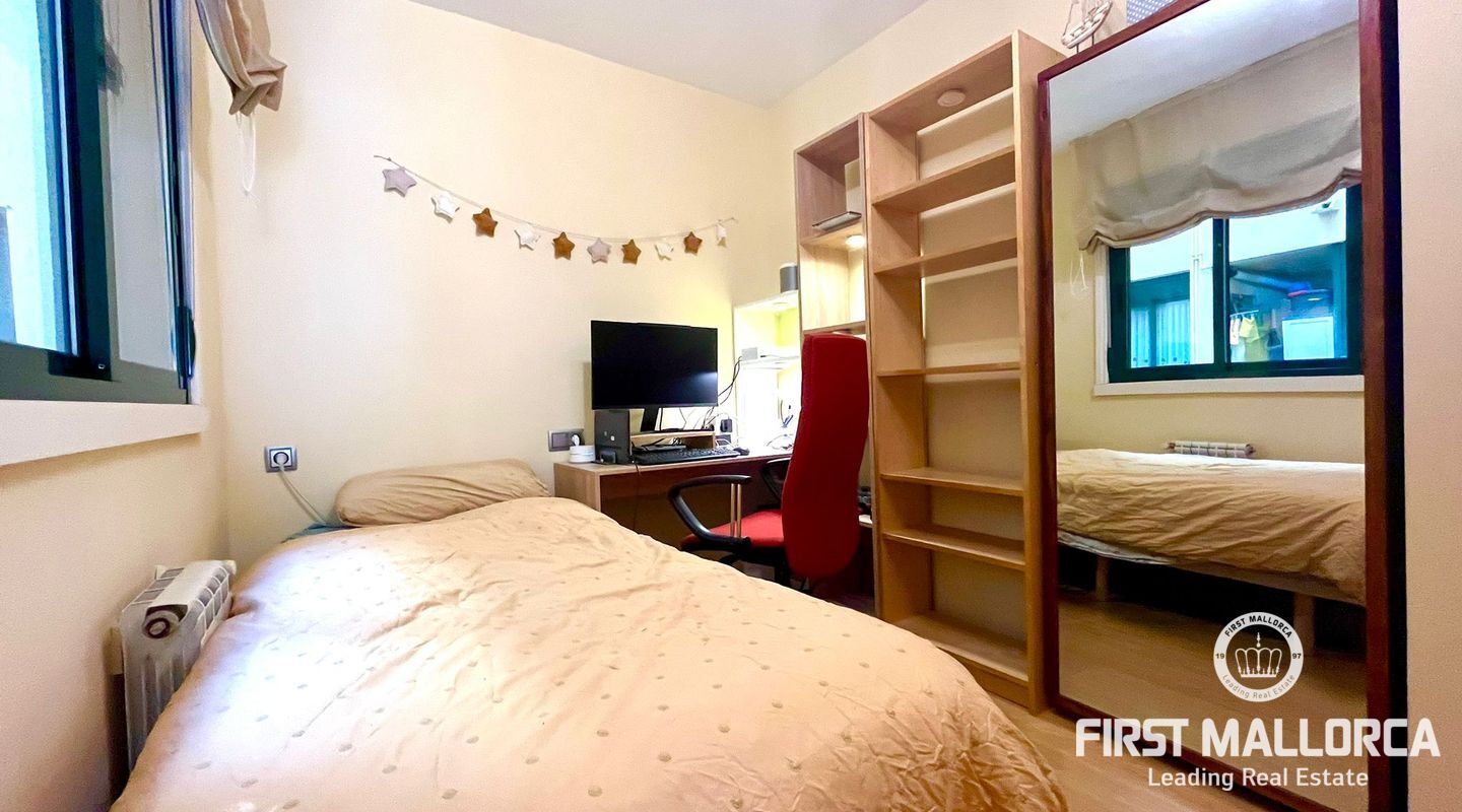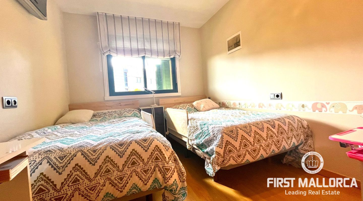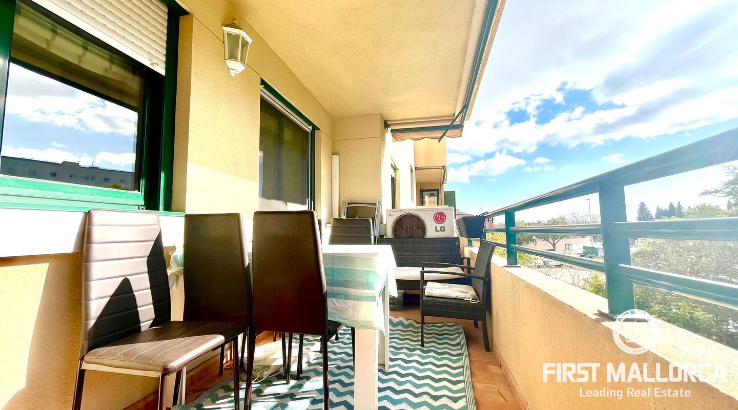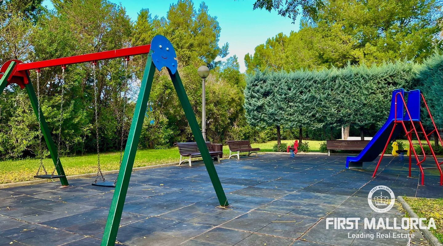 This apartment is located in a family-friendly complex near the Juaneda Miramar clinic. In a well-maintained communal area resembling a park, there's a spacious pool, a playground, and paddle court. The apartment comprises a large living-dining area, a newly renovated kitchen, four bedrooms, and two bathrooms. The principal bedroom features an en suite bathroom. From the living room, there's access to a spacious balcony with an open view and south orientation. The apartment also includes a garage space and a generous storage room