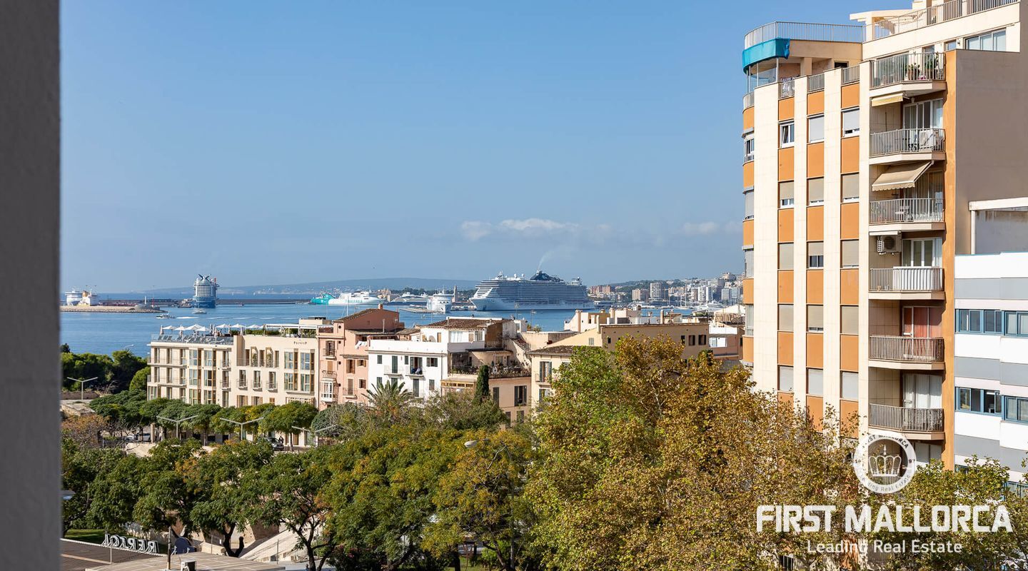 This spacious flat, completely refurbished, offers views of the sea and the old town of Palma. With a constructed area of 153 m², this property has 4 bright double bedrooms, all equipped with air conditioning. The spacious living room is integrated with a fully equipped open plan kitchen. Furthermore, the property disposes of two complete bathrooms, a guest toilet and a utility room. There is also the possibility of buying a parking space in the same building for 50,000 euros.