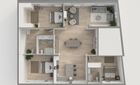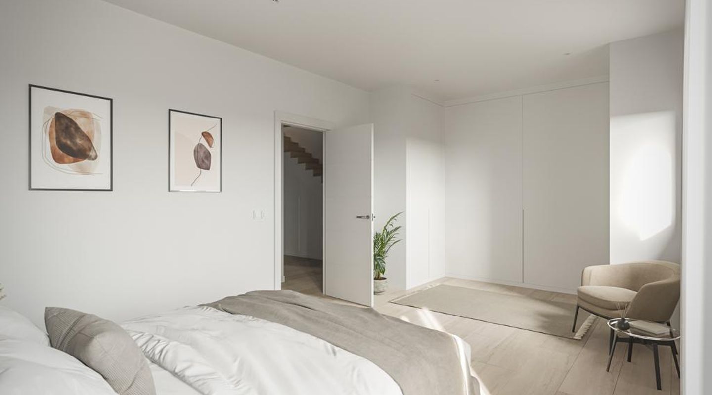 The apartment is arranged over two floors. On the first floor, there are all the bedrooms as well as a spacious living and dining area. From this level, there is access to a small terrace.