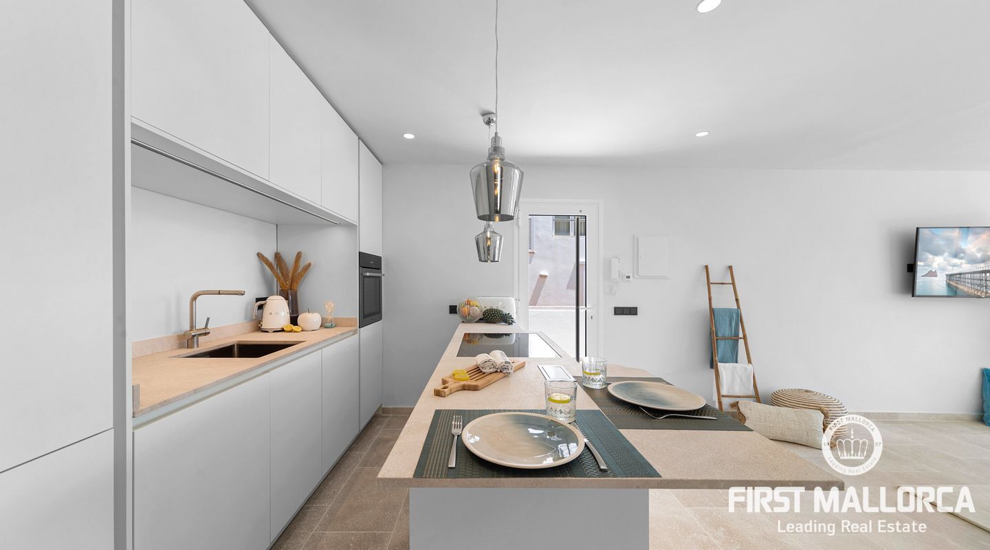 Both bedrooms have their own en-suite bathrooms, the kitchen has been designed individually and to a high standard by the company Leicht and the spacious terraces invite you to linger and sunbathe. The qualities are on the level of a luxury villa and the views over the entire port of Puerto de Andratx are fascinating at any time of the day, you can see the hustle and bustle of incoming and outgoing boats and the light show in the evening is just as spectacular.