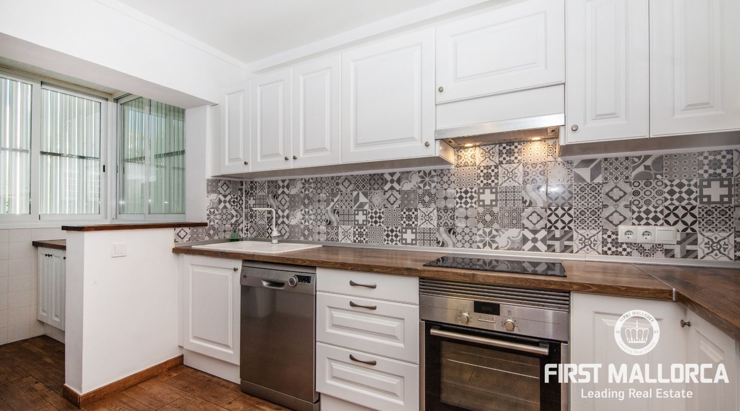 An ideally located apartment in good condition with a private parking space just steps from the water´s edge and all amenities in Puerto Portals and nearby vicinities. The community has pretty landscaped gardens, a lift and a gated security entrance.