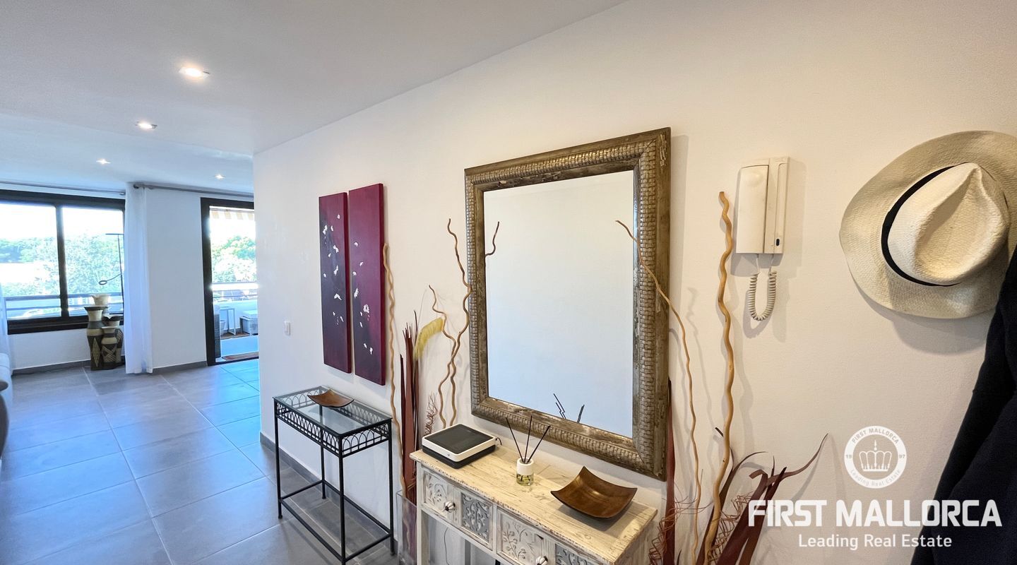 This completely renovated and generously sized apartment is situated in a complex with a communal pool and sun terrace in a central location in Santa Ponca. The apartment features two spacious bedrooms, two modern bathrooms, and an open living area that seamlessly connects to the modern kitchen and provides access to a charming balcony, inviting you to enjoy the view.