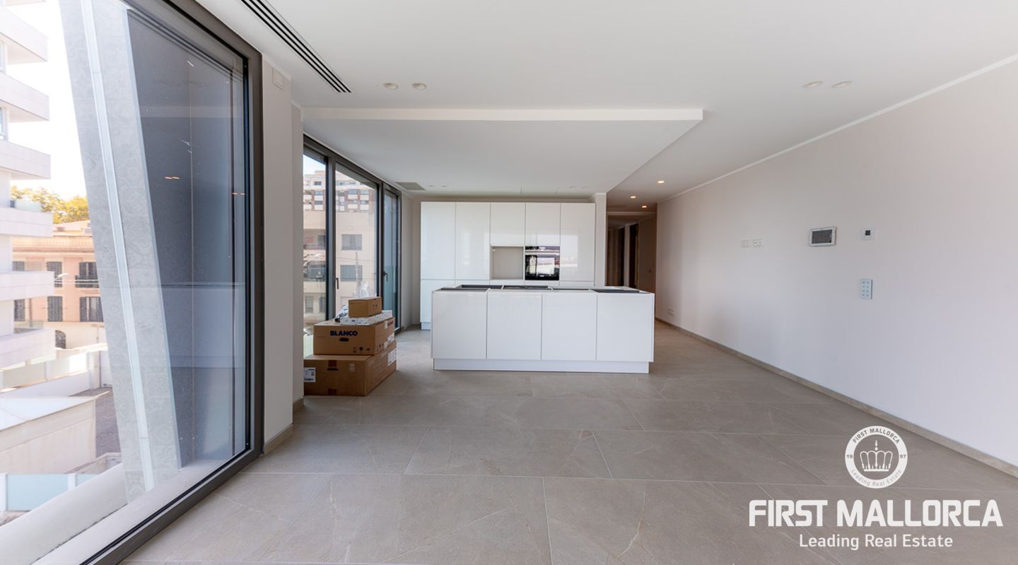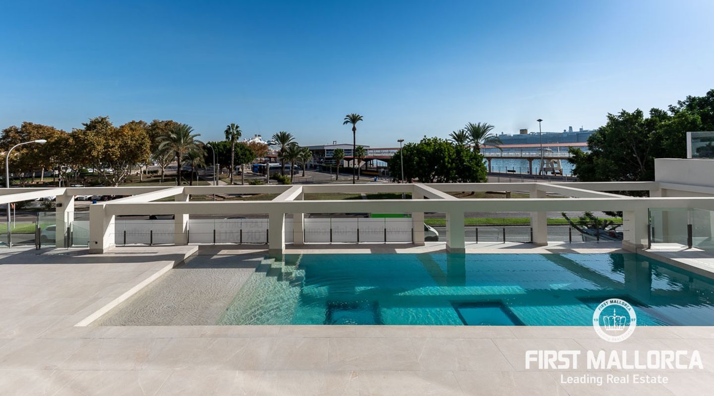 Right next to the prestigious new "Club de Mar", an experienced German property developer has completed 15 exclusive flats with fantastic views of the harbour of Palma. The modern flats offer a constructed area of 78 m² to 212 m², one to four bedrooms, and the construction and finishes are high-end in the new-build segment. The luxurious properties are equipped with air conditioning, underfloor heating and home automation and are located in a luxury residence with lift, underground parking, garden and pool, just a few minutes from the old town and the cathedral in Palma. Whether you are looking for a beautiful ground floor flat or a spectacular penthouse - nothing is left to be desired here. Please do not hesitate to contact us at any time for further information or a viewing.