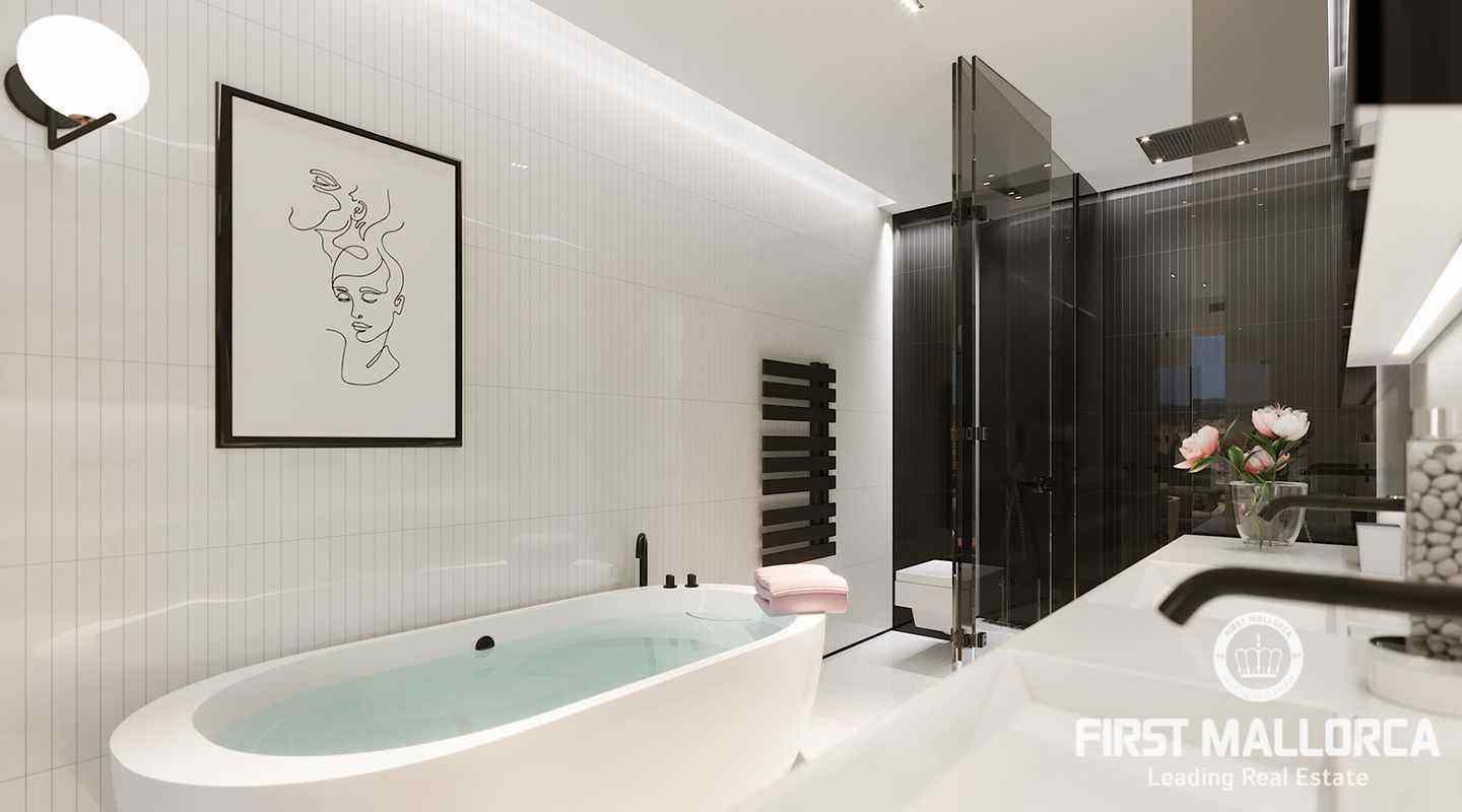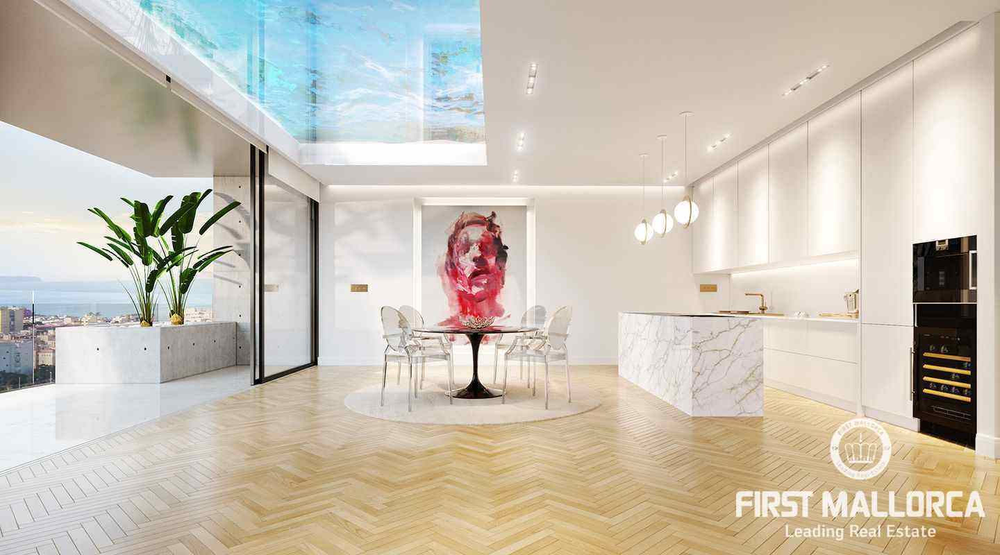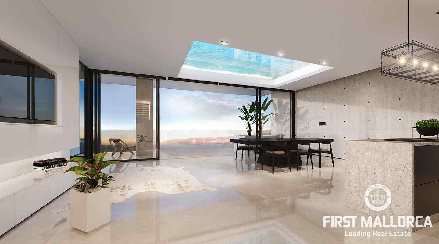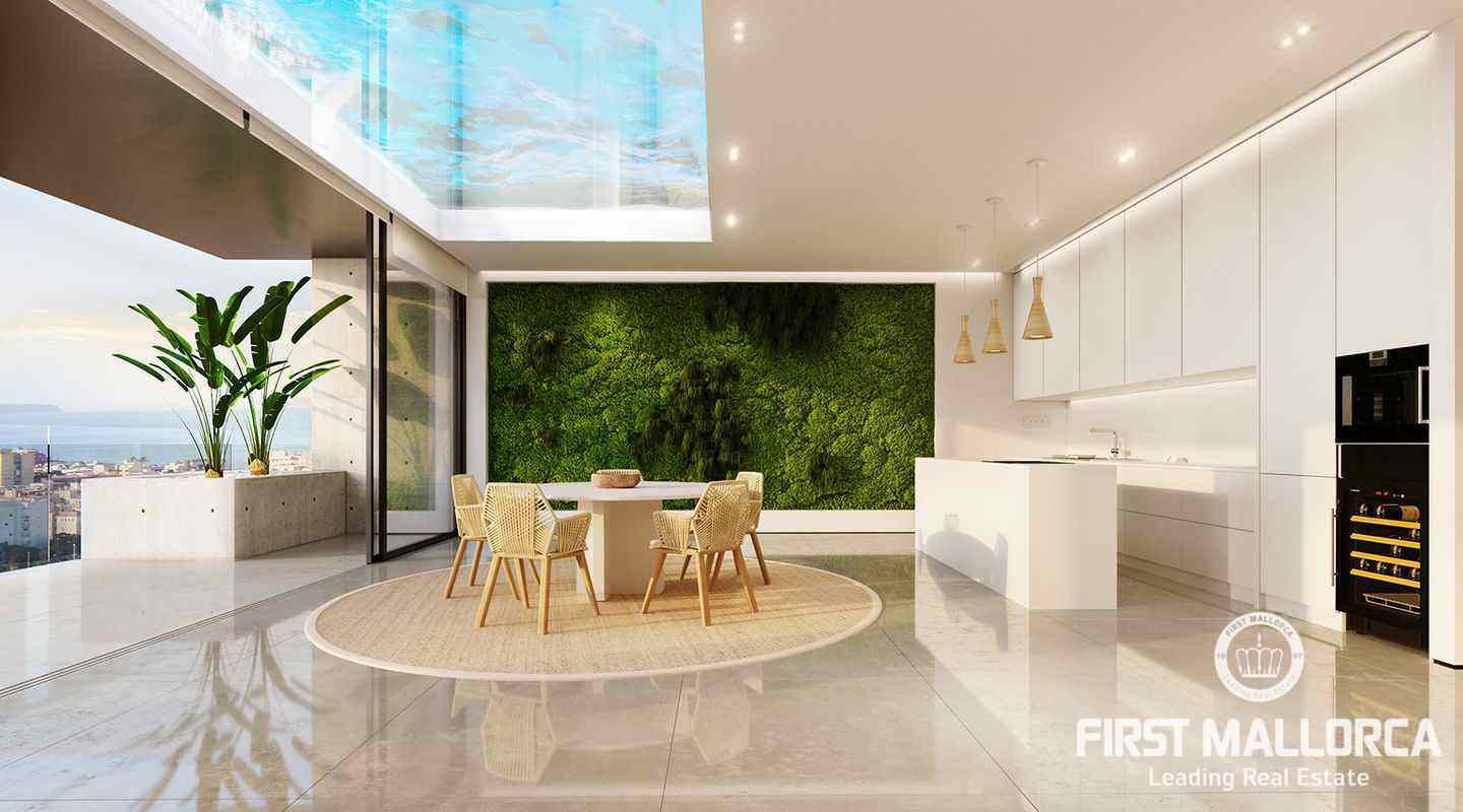 Particularly noteworthy and hardly comparable to other projects in Palma are the architecture and design of this development. The entire building technology is aimed at ecological sustainability. Floor-to-ceiling glass fronts offer spectacular views and a lot of natural light. Electric panoramic windows can be lowered horizontally and thus combine perfectly the exterior area with the interior.