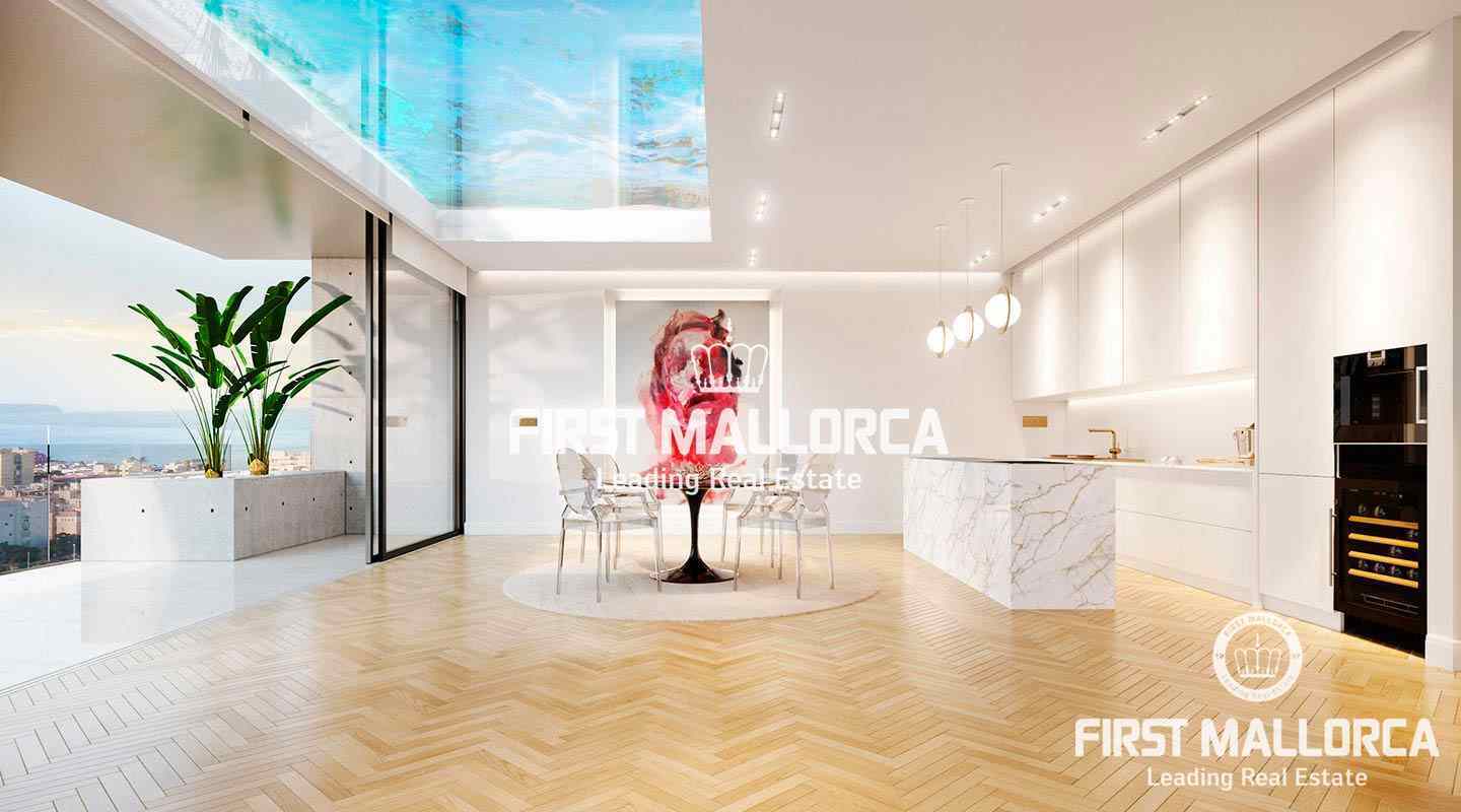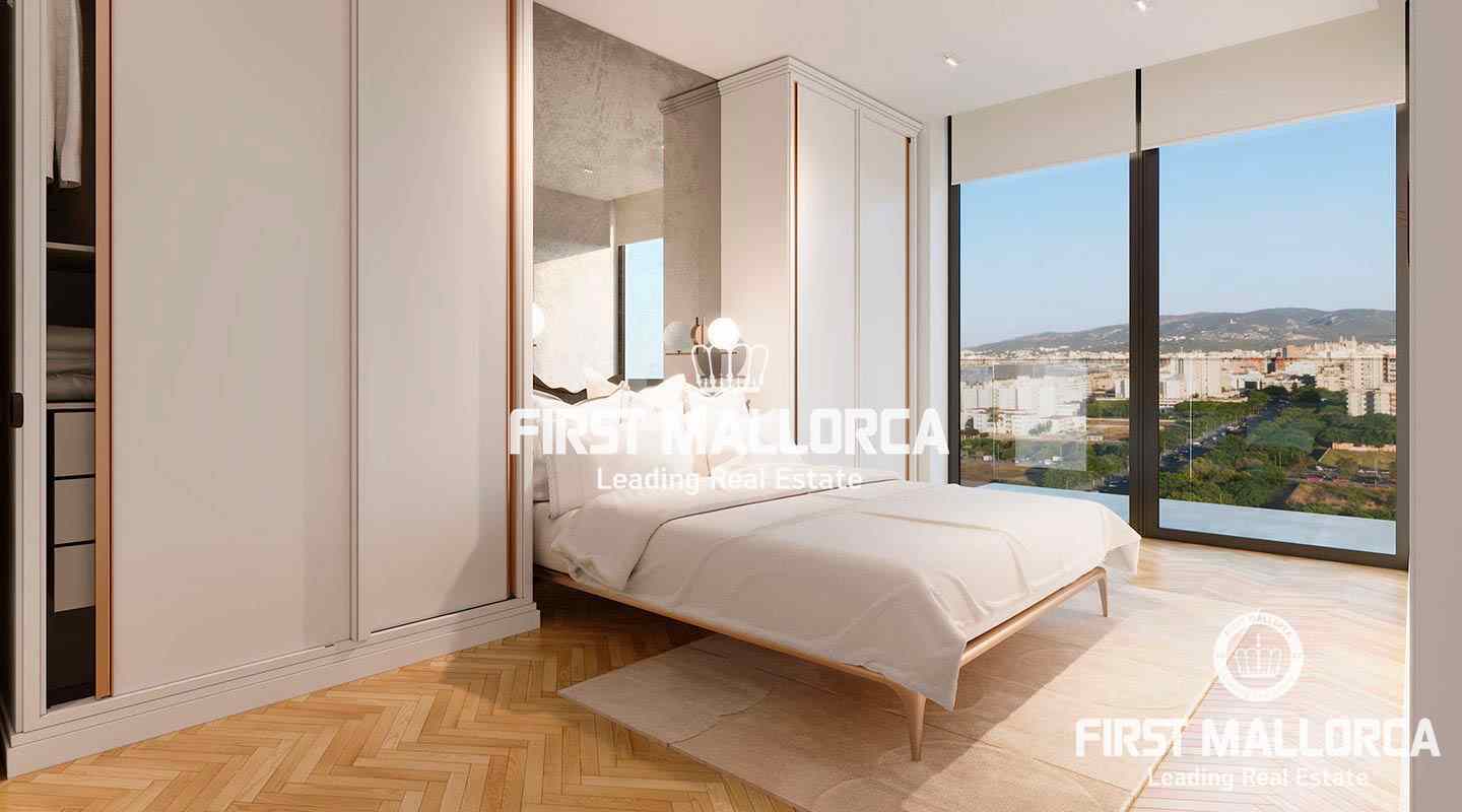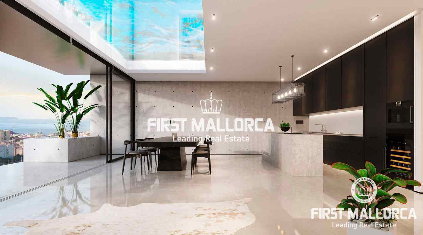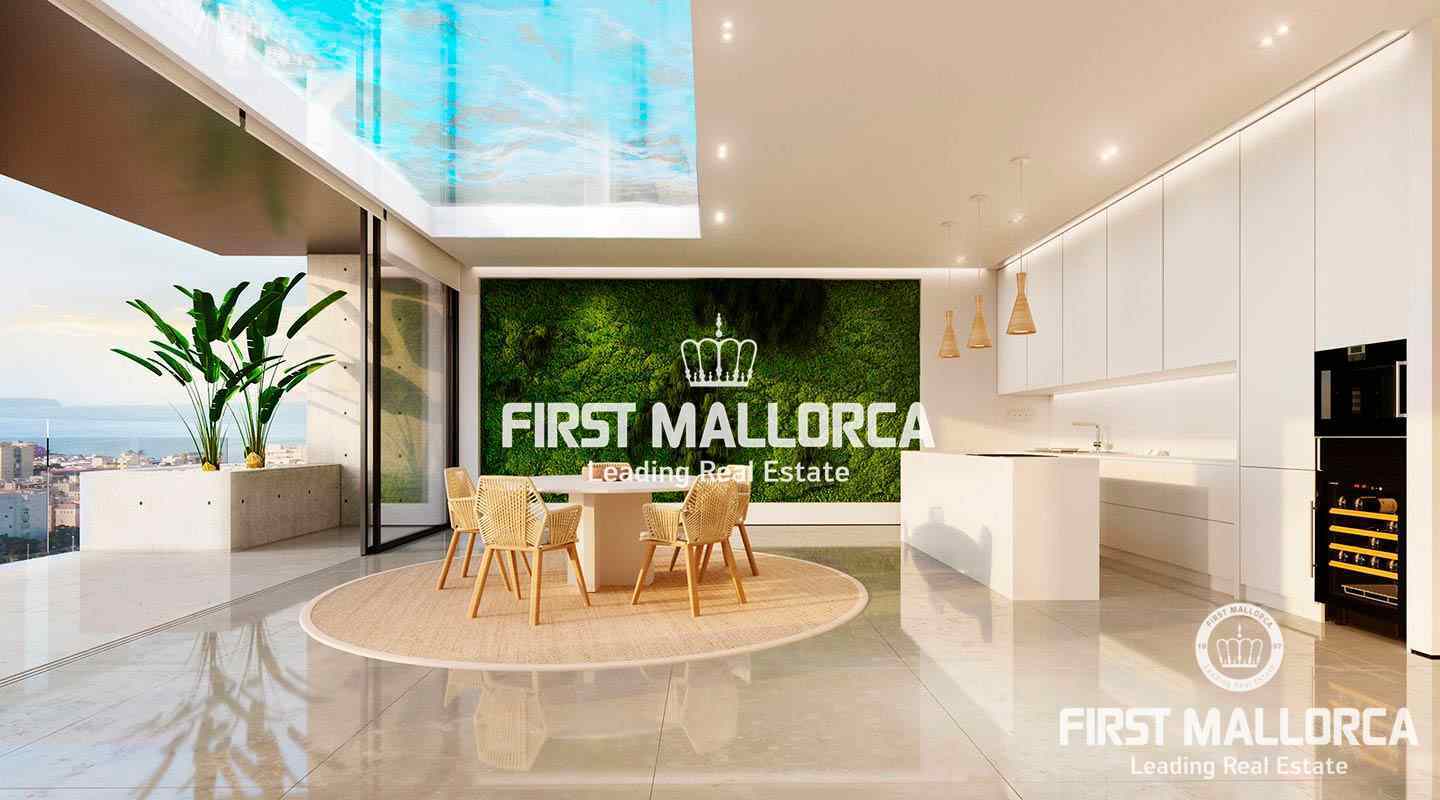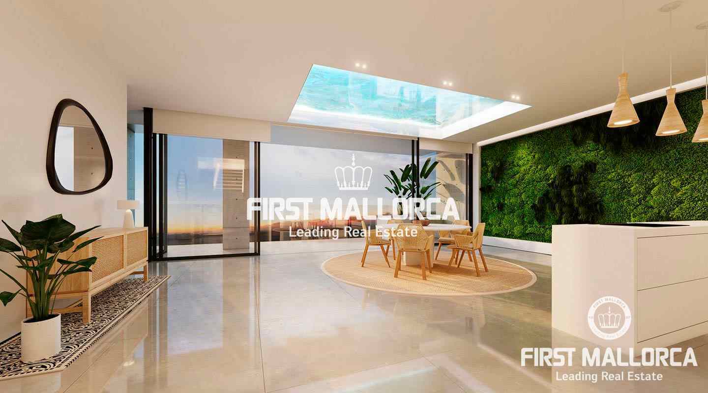 Particularly noteworthy and hardly comparable to other projects in Palma are the architecture and design of this development. The entire building technology is aimed at ecological sustainability. Floor-to-ceiling glass fronts offer spectacular views and a lot of natural light. Electric panoramic windows can be lowered horizontally and thus combine perfectly the exterior area with the interior.