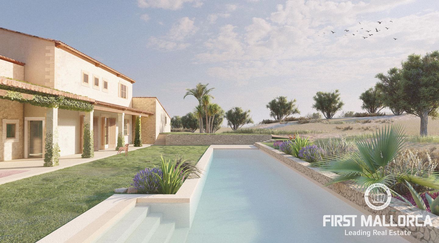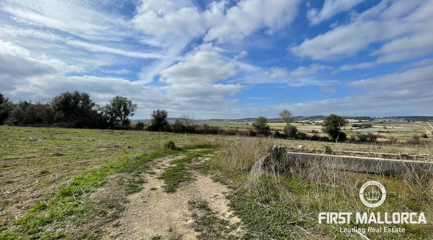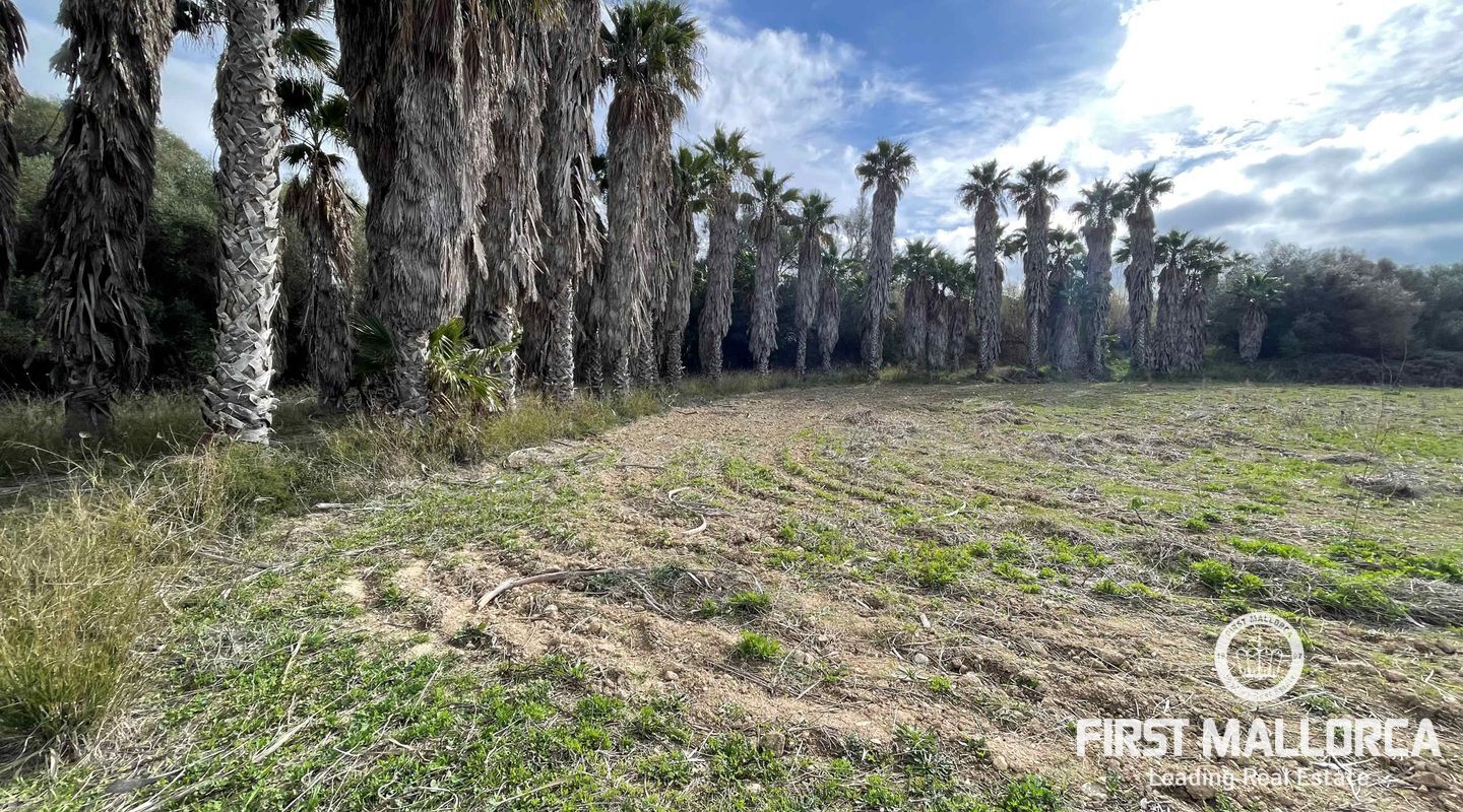 This plot with a building licence is conveniently located just 10/15 minutes from the beaches of Muro and Can Picafort and offers a serene retreat amidst Mallorca's natural beauty. Nestled in nature, it offers complete privacy and stunning landscape views. With its topography featuring three distinct planes and lush woodland, it provides captivating scenes with the Pla de Mallorca and the Tramuntana mountain range all around. Recently obtained, the property has a building license for a 400 m2 house. The plan includes an entrance hall, two spacious living rooms, a dining room, five bedrooms (three en suite), four bathrooms, a toilet, kitchen, and laundry room. Outdoor amenities feature a swimming pool, al fresco dining area, and service hut, making it a unique opportunity, especially since the current maximum buildable area stands at 300m2. The property is also equipped with a legalized vein well, a safareig (pool), and a rainwater well/deposit. Additionally, it features solar panels and a charming, fully renovated agricultural building spanning approximately 70 m2. Adorned with orange, fig, carob, wild olive, and almond trees, the land also boasts a striking palm tree forest lining the access road.